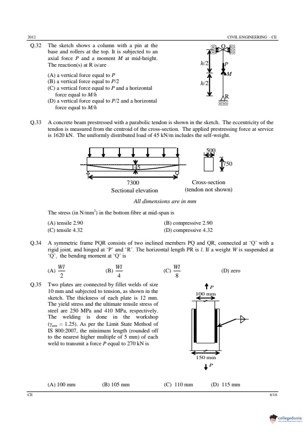 | GATE 2012 CE Question Paper | GATE 2012 CE Answer Key |