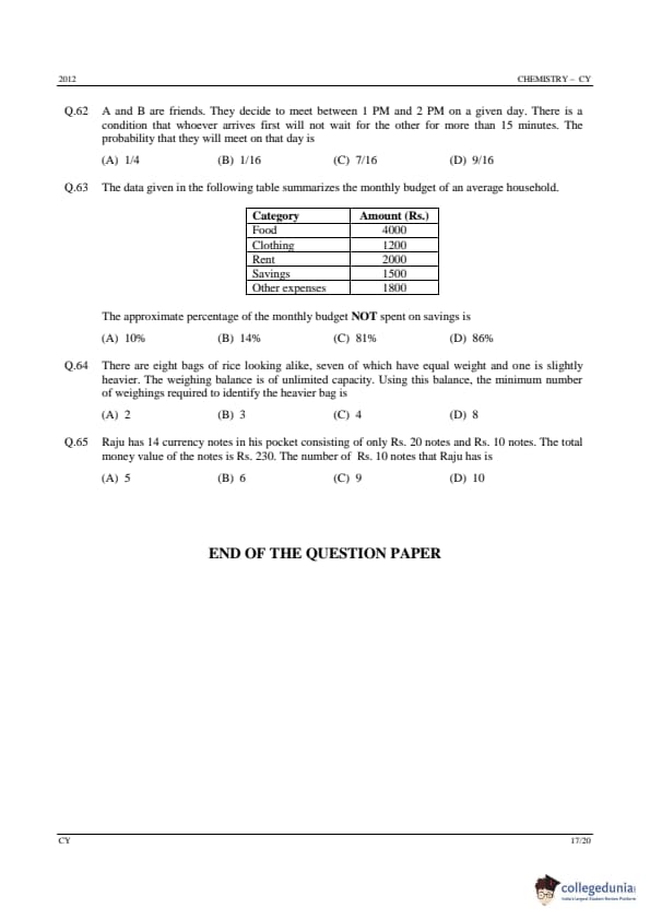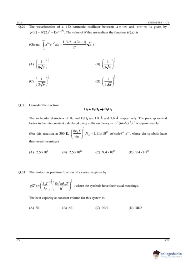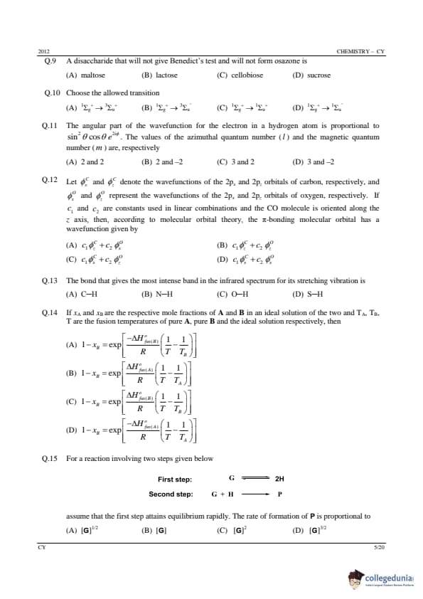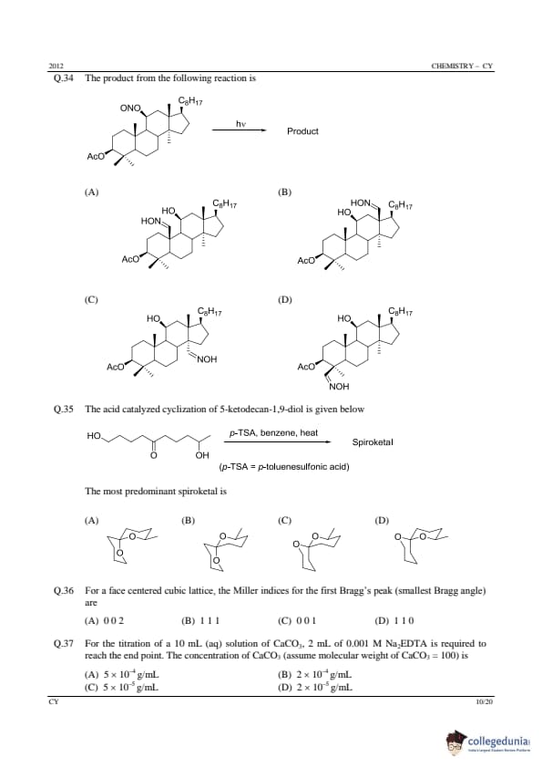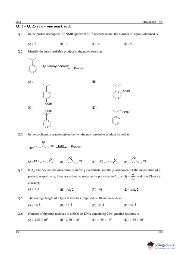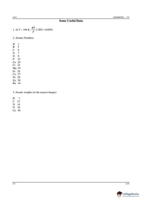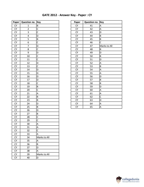 | GATE 2012 CY Question Paper | GATE 2012 CY Answer Key |
