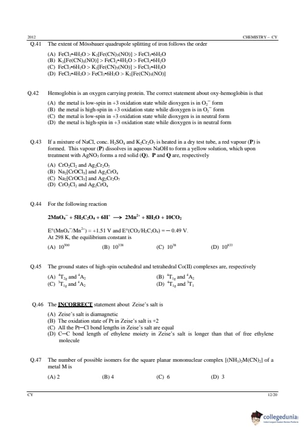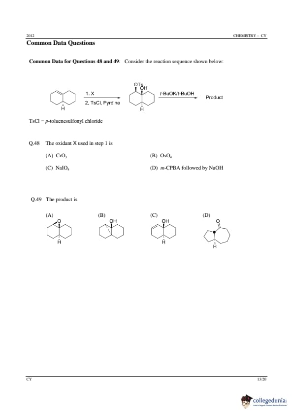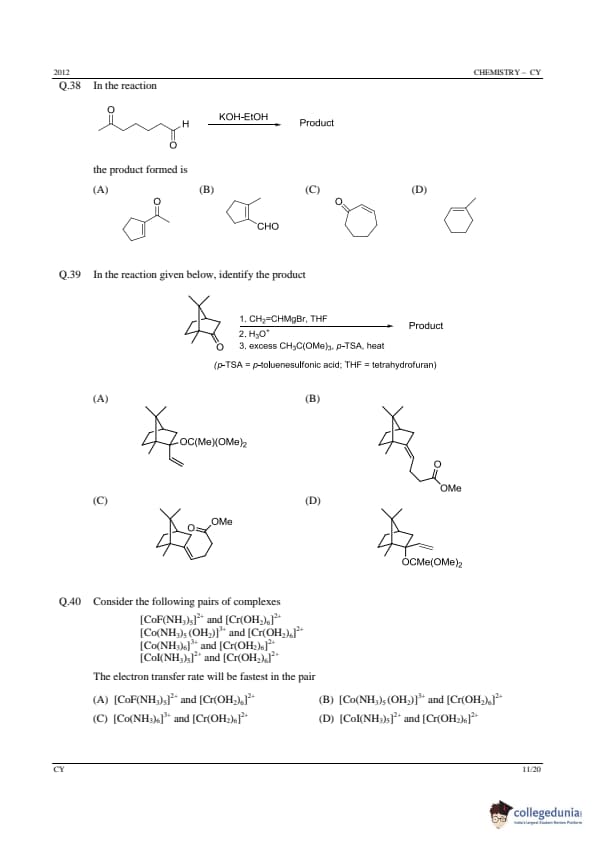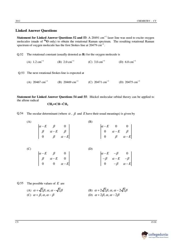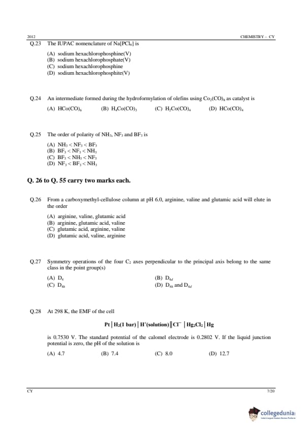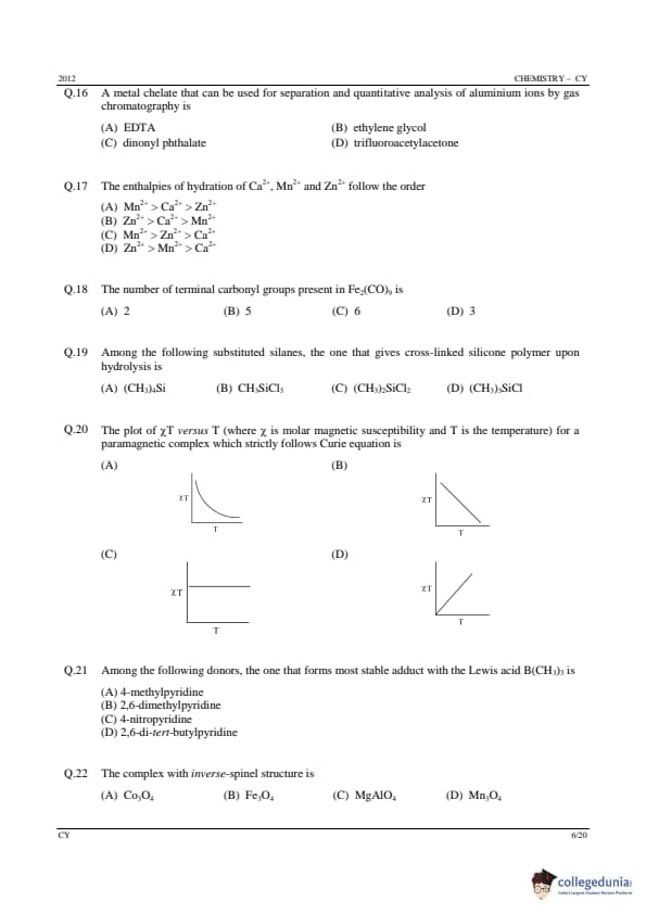 GATE 2012 Chemistry (CY) Question Paper with Answer Key PDFs (Offline) (February 12 – Forenoon Session)