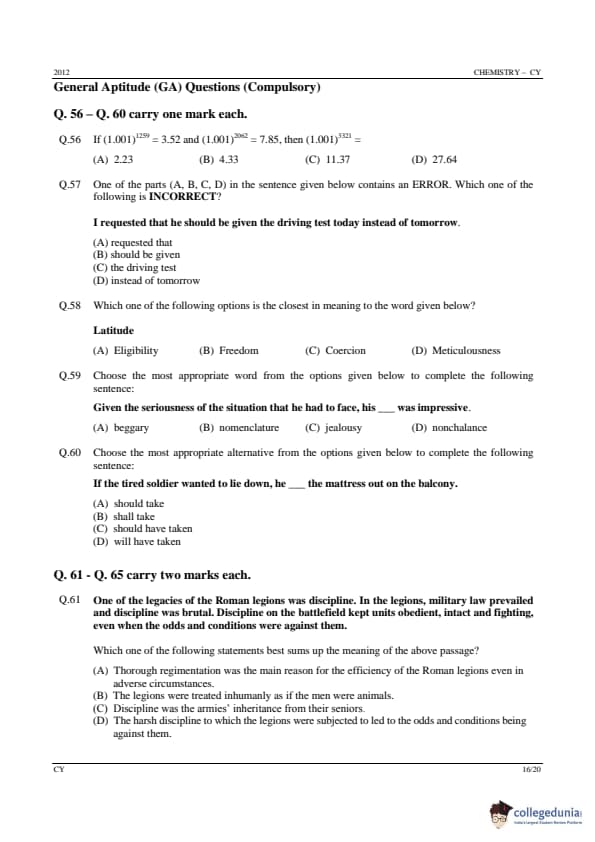 GATE 2012 CY Question Paper Analysis