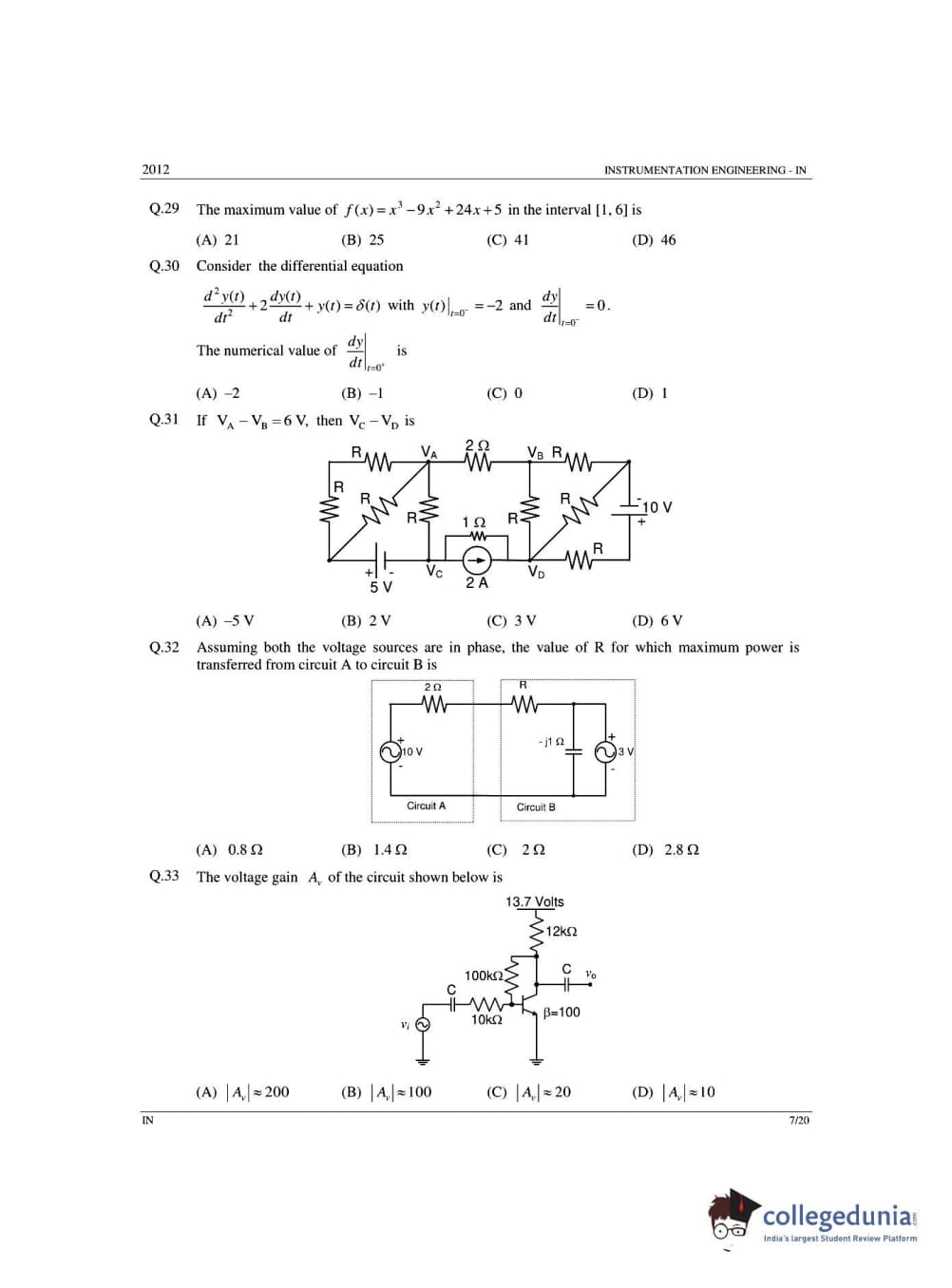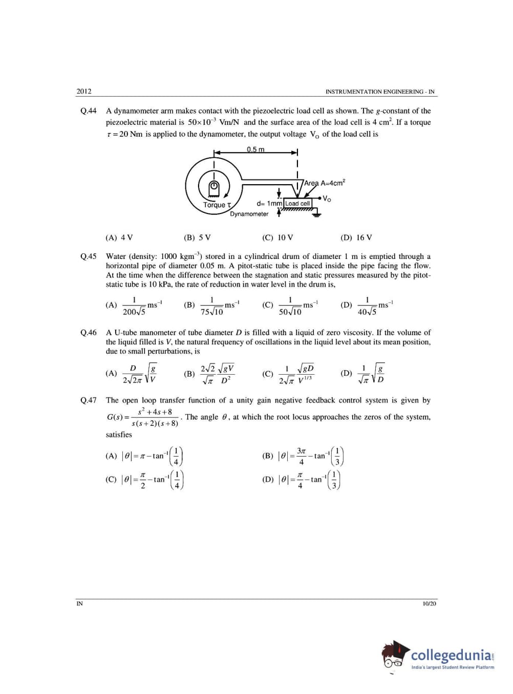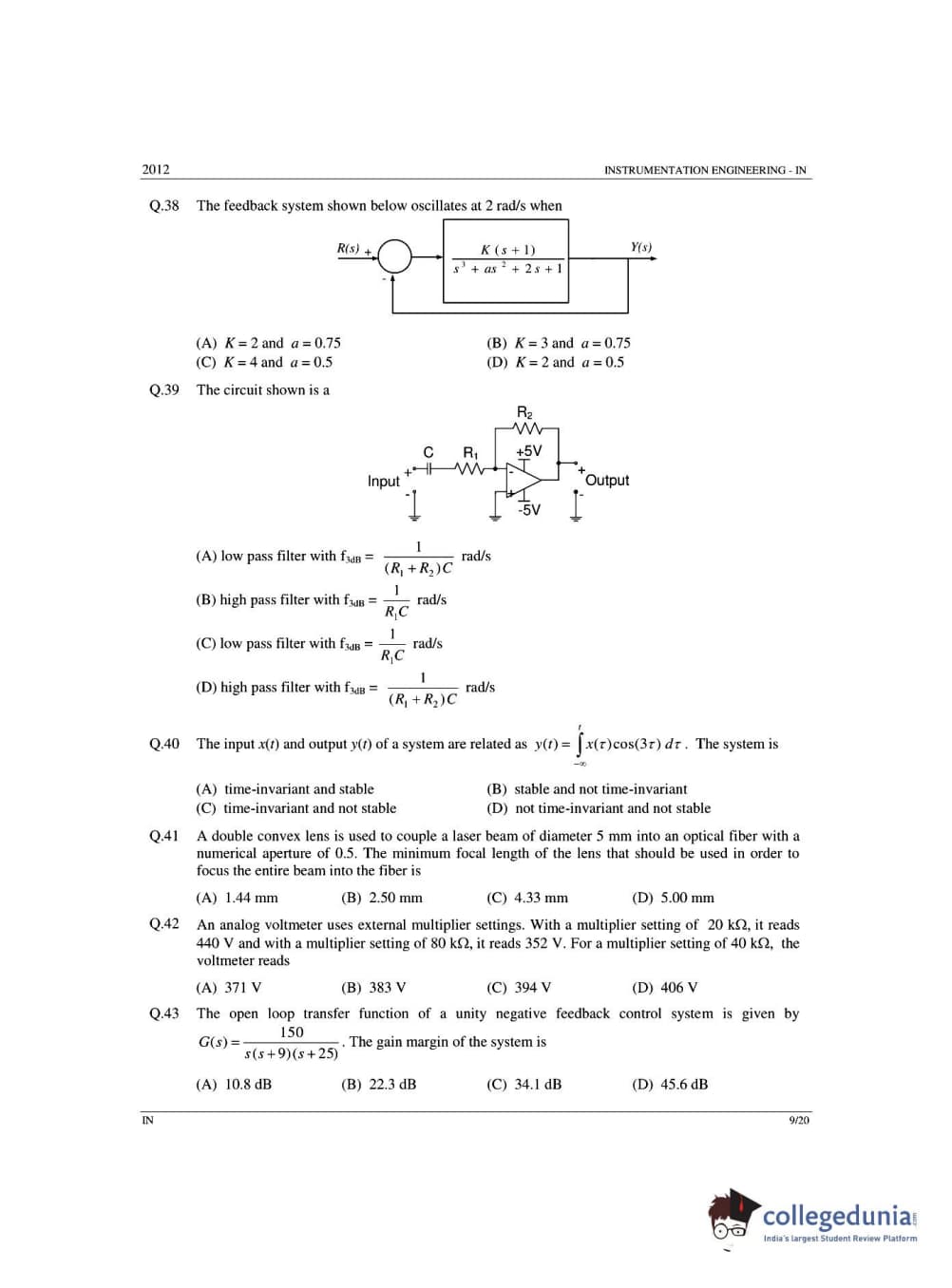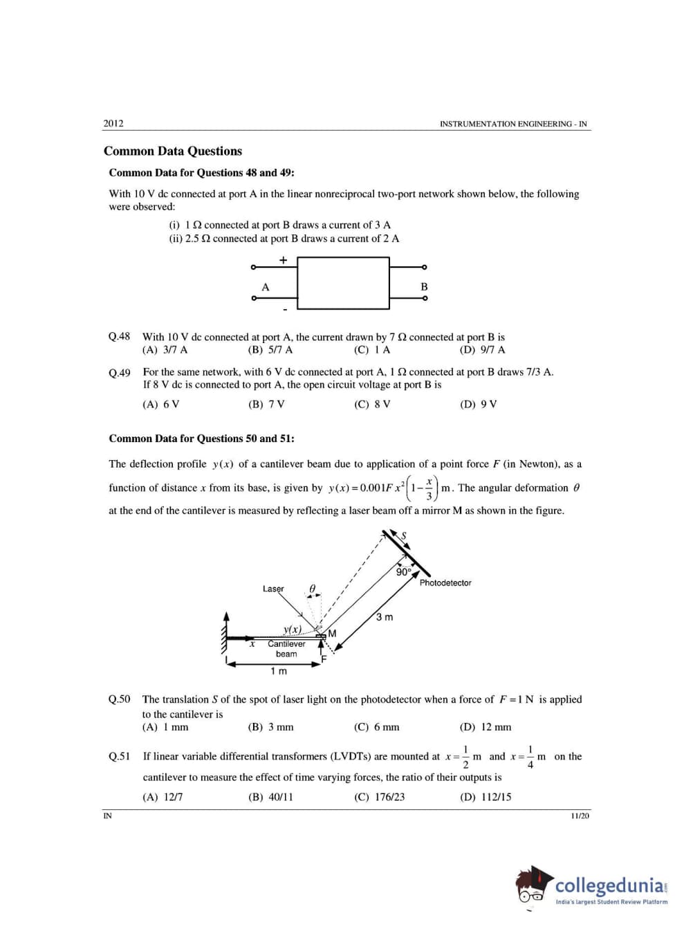 GATE 2012 Instrumentation Engineering (IN) - Offline Question Paper with Answer Key PDFs -Afternoon Session