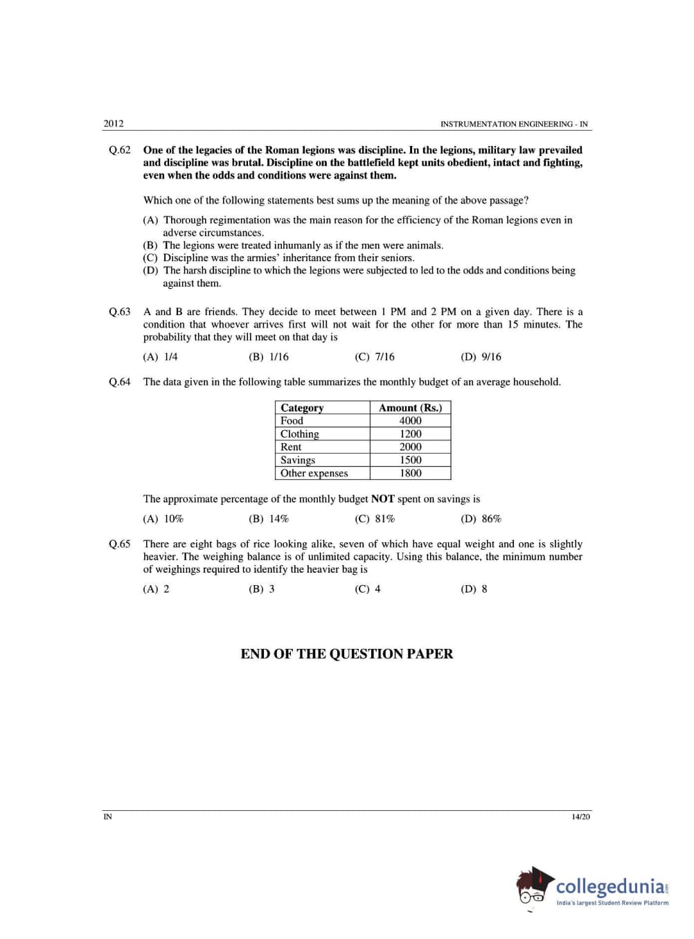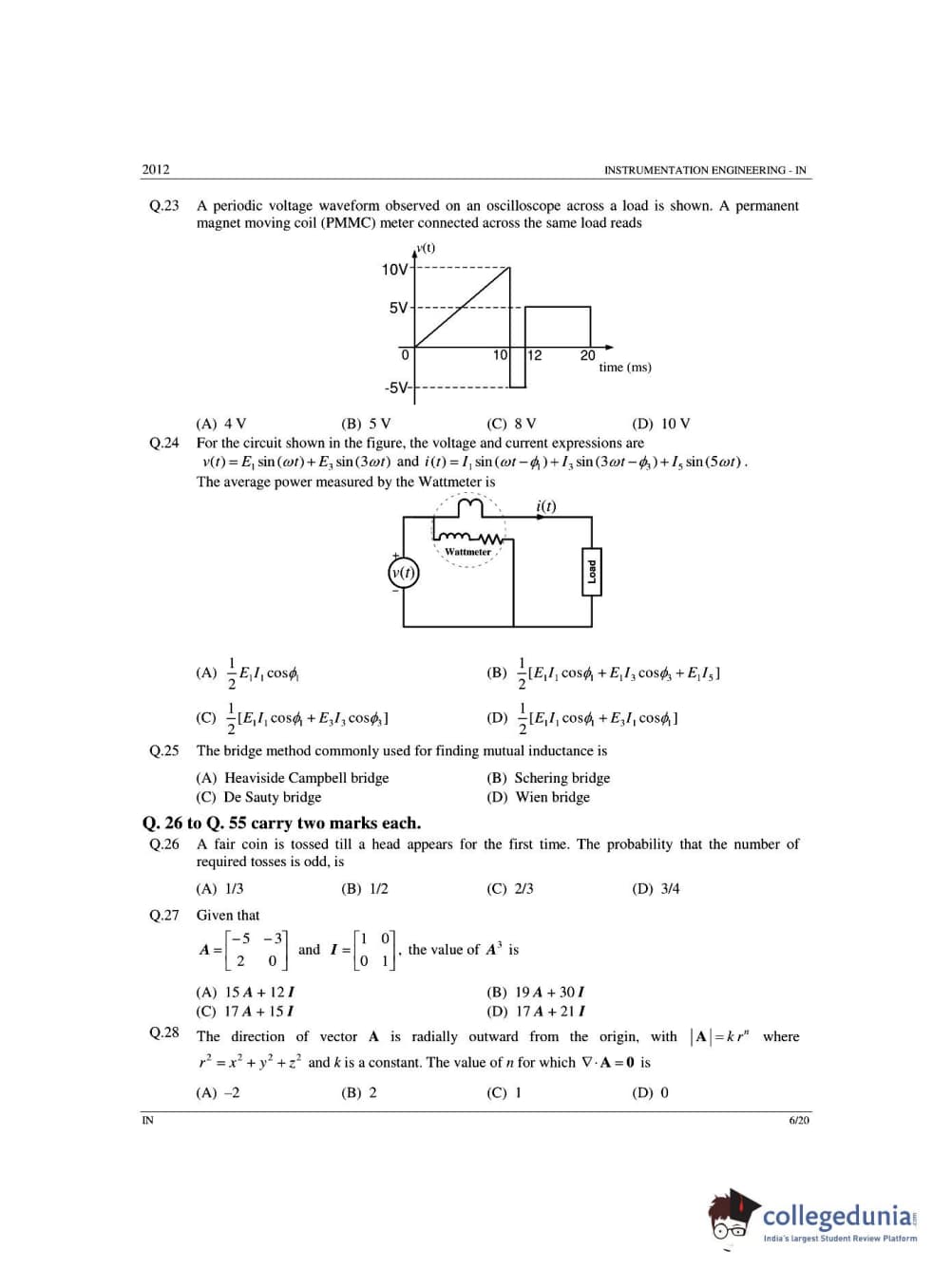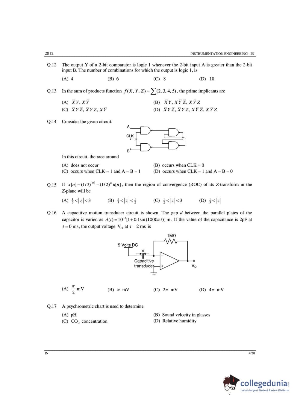 | GATE 2012 Instrumentation Engineering (IN) - Offline Question Paper PDF | GATE 2012 Instrumentation Engineering (IN) - Offline Answer Key PDF |