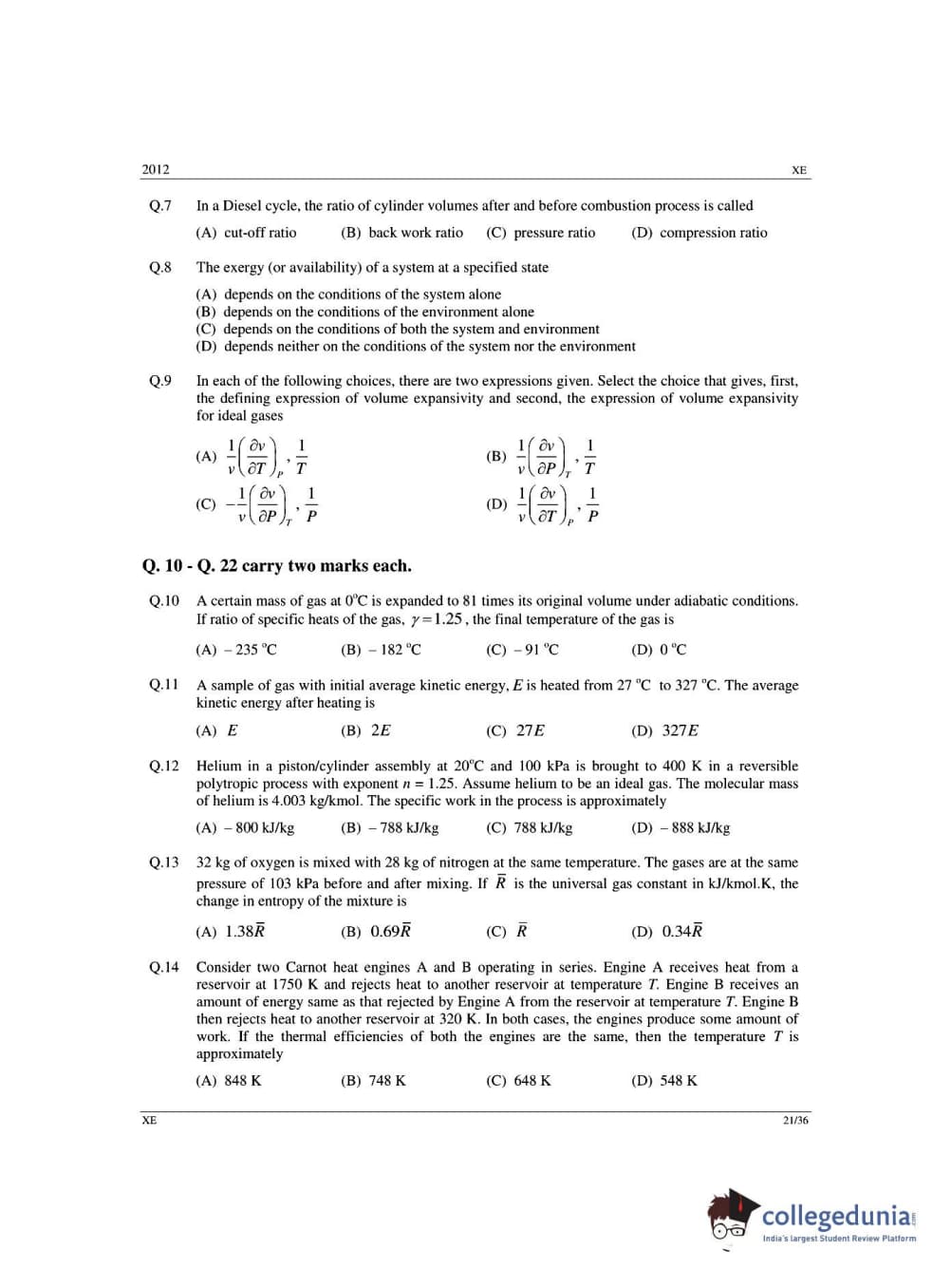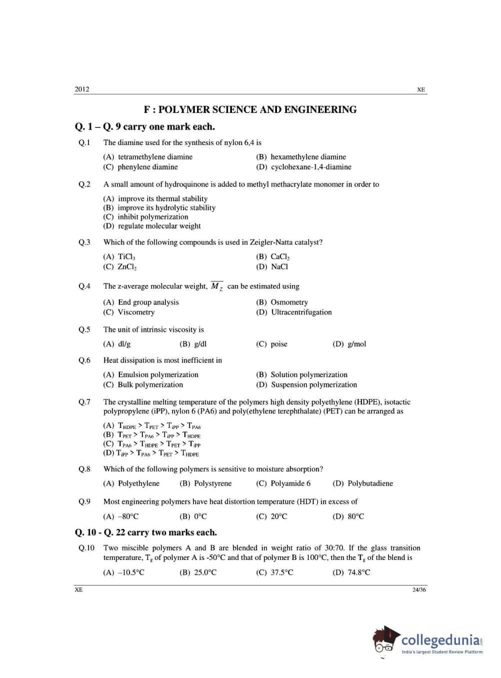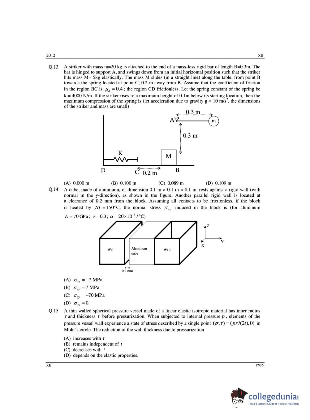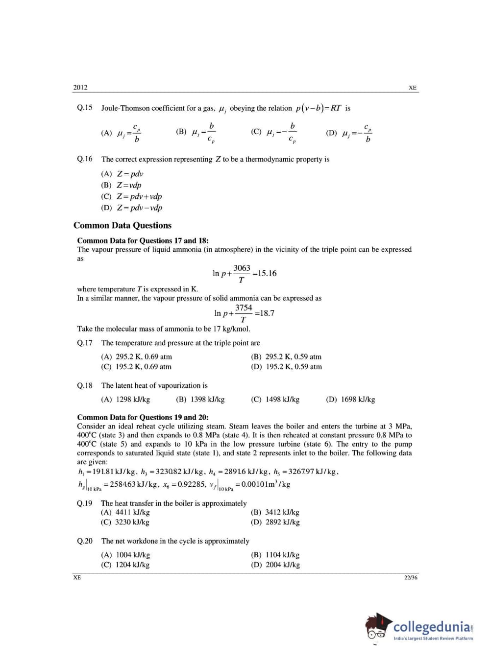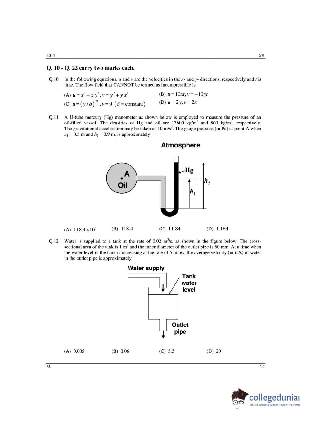 GATE 2012 Engineering Sciences (XE) Question Paper with Answer Key PDFs are available for download. GATE 2012 was conducted by the Indian Institute of Technology in Delhi. GATE 2012 XE Paper had a total of 65 questions conducted for a total of 100 marks. GATE 2012 XE Paper consisted of 55 question from core discipline subject- Engineering Sciences and 10 questions from General Aptitude.