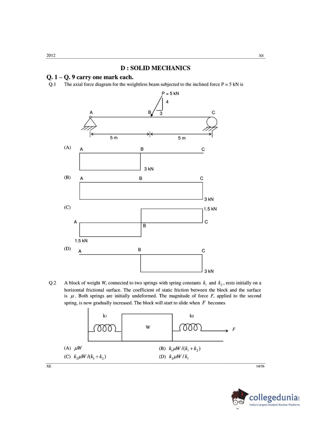 GATE 2012 Engineering Sciences (XE) Question Paper Analysis