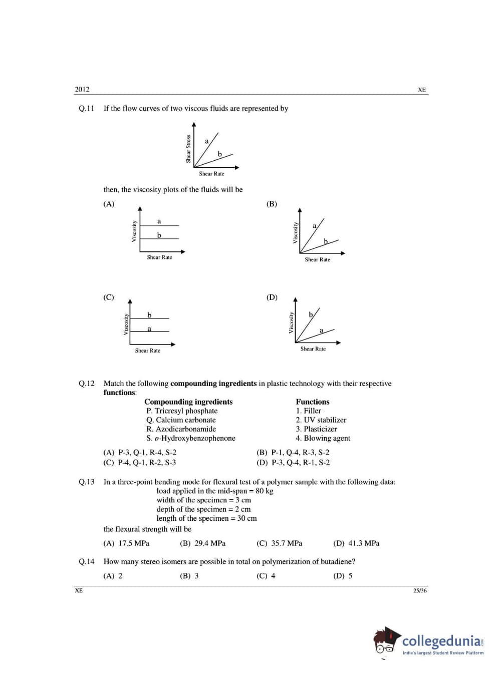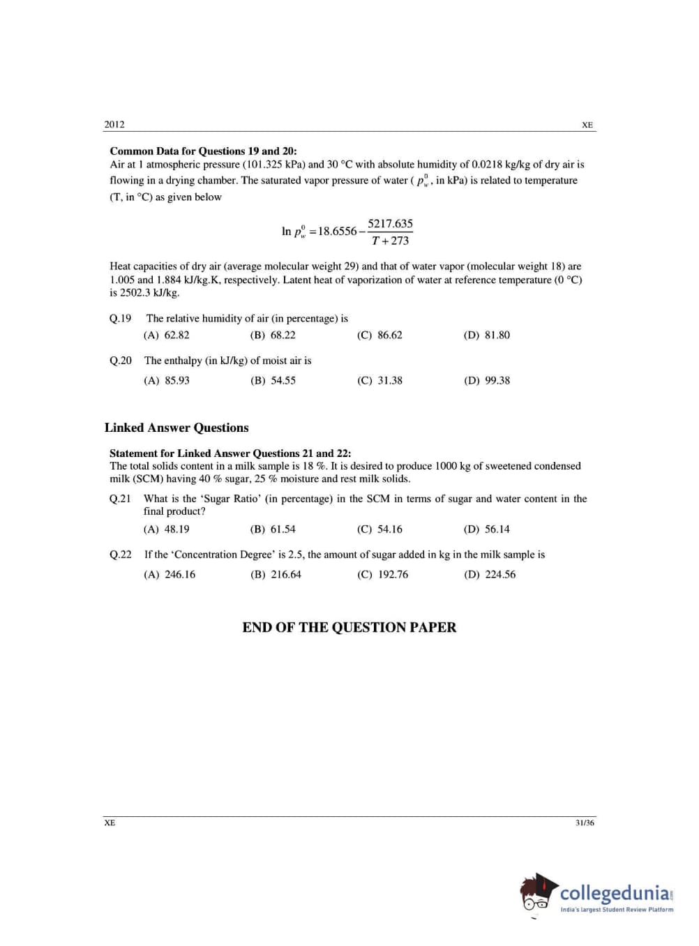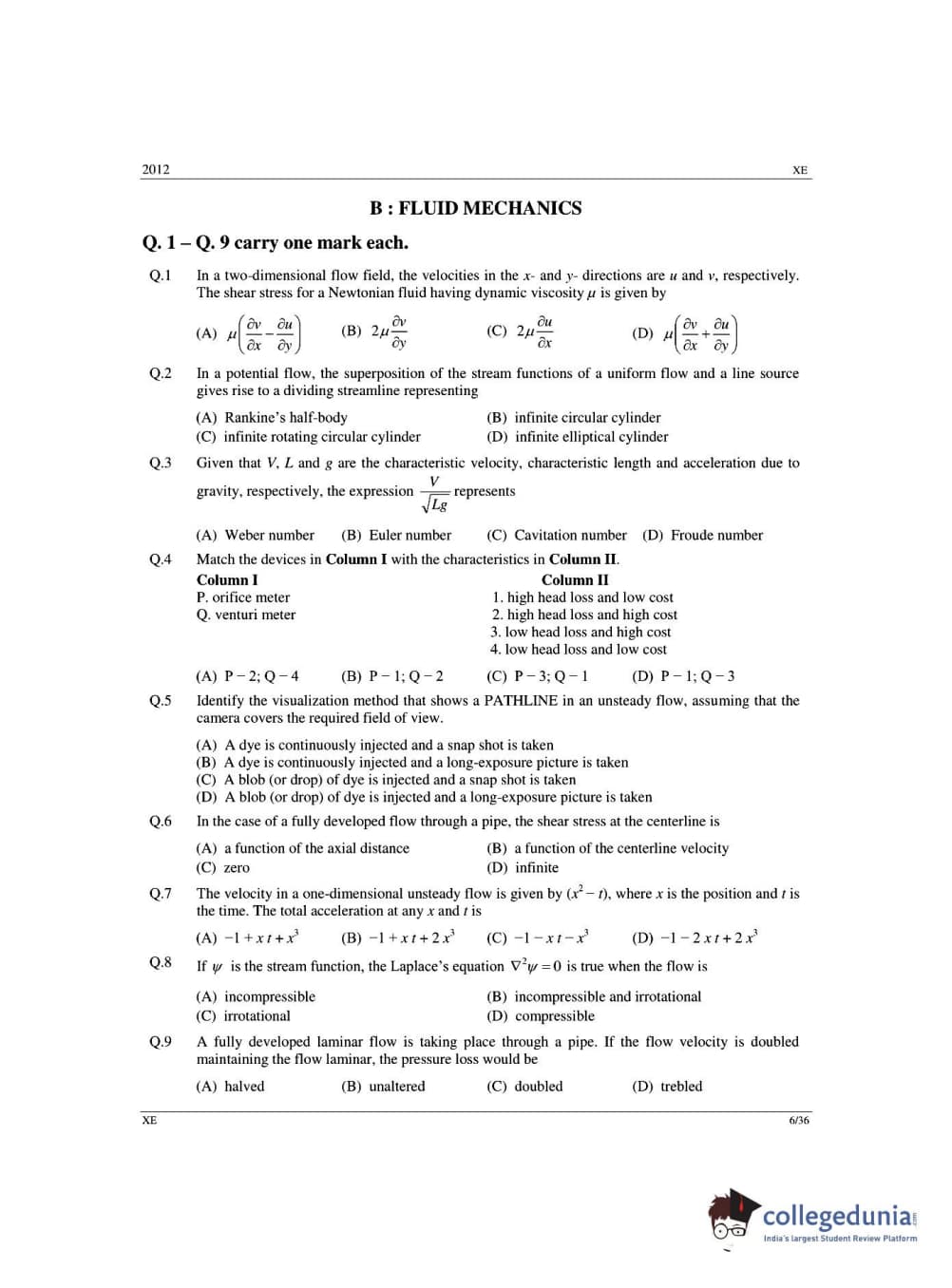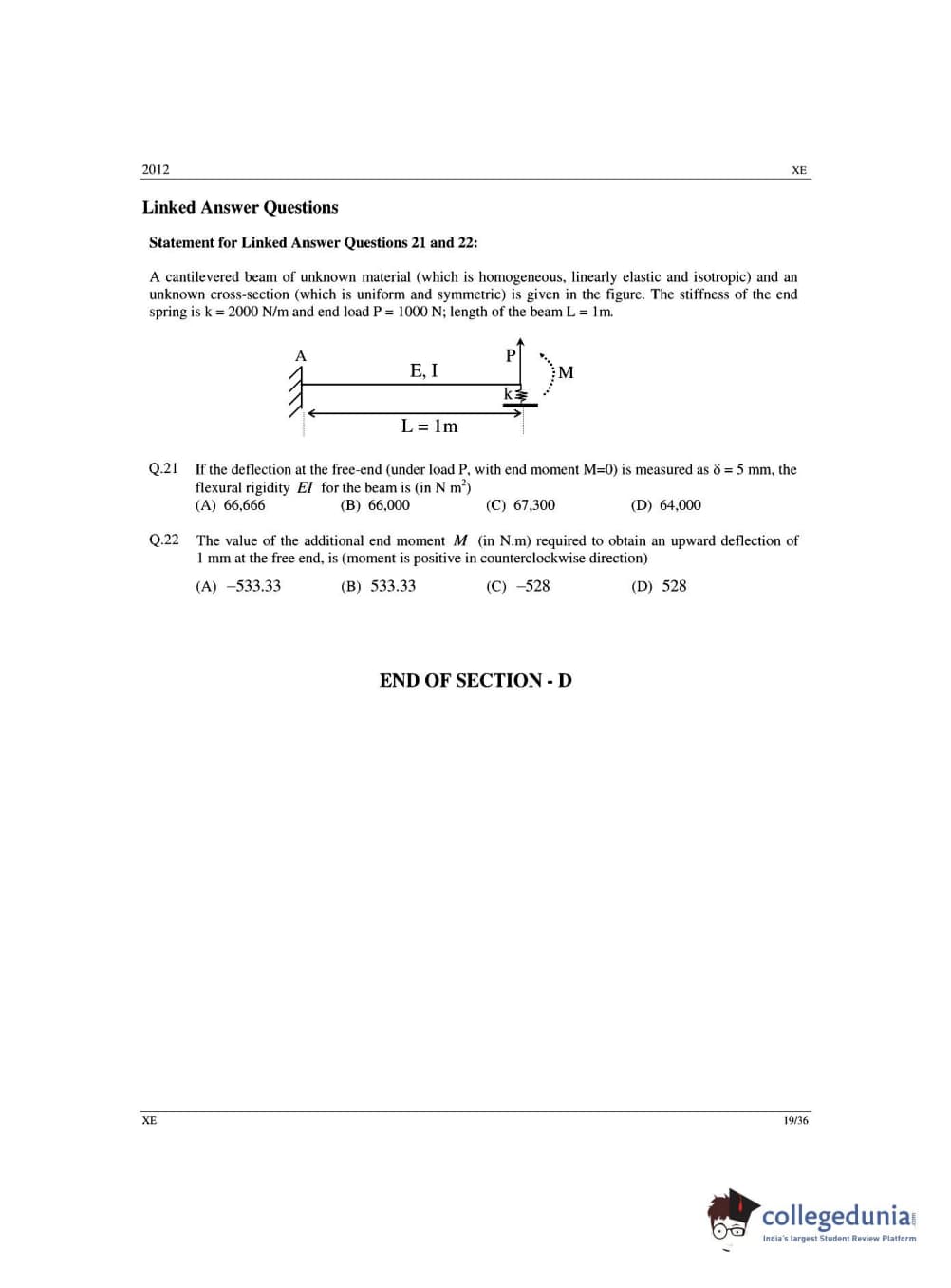 GATE 2012 Engineering Sciences (XE) Question Papers with Answer Key PDFs (Offline ) (February 12-Afternoon Session)