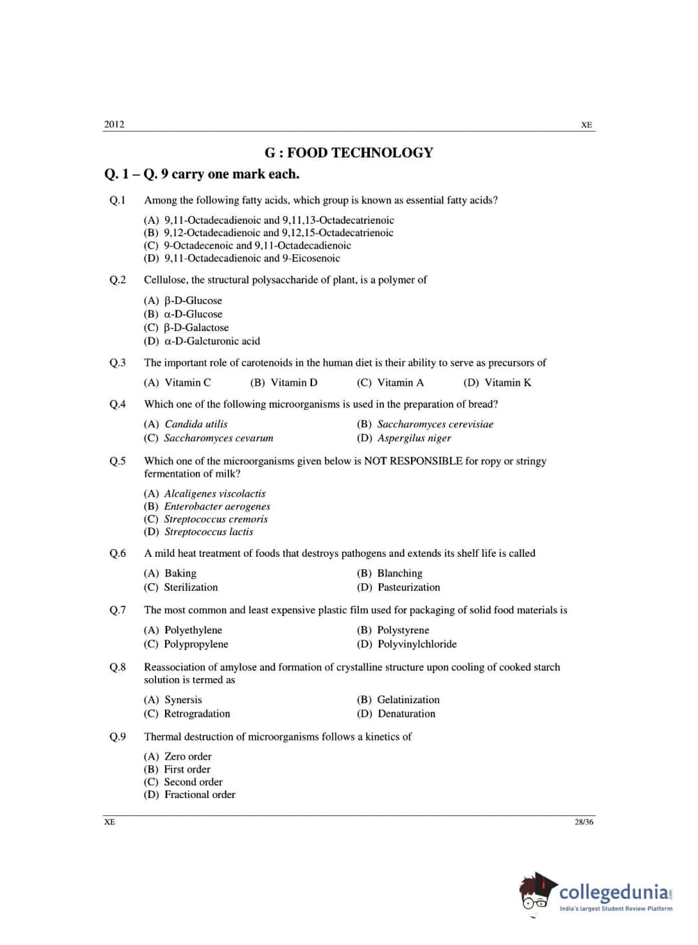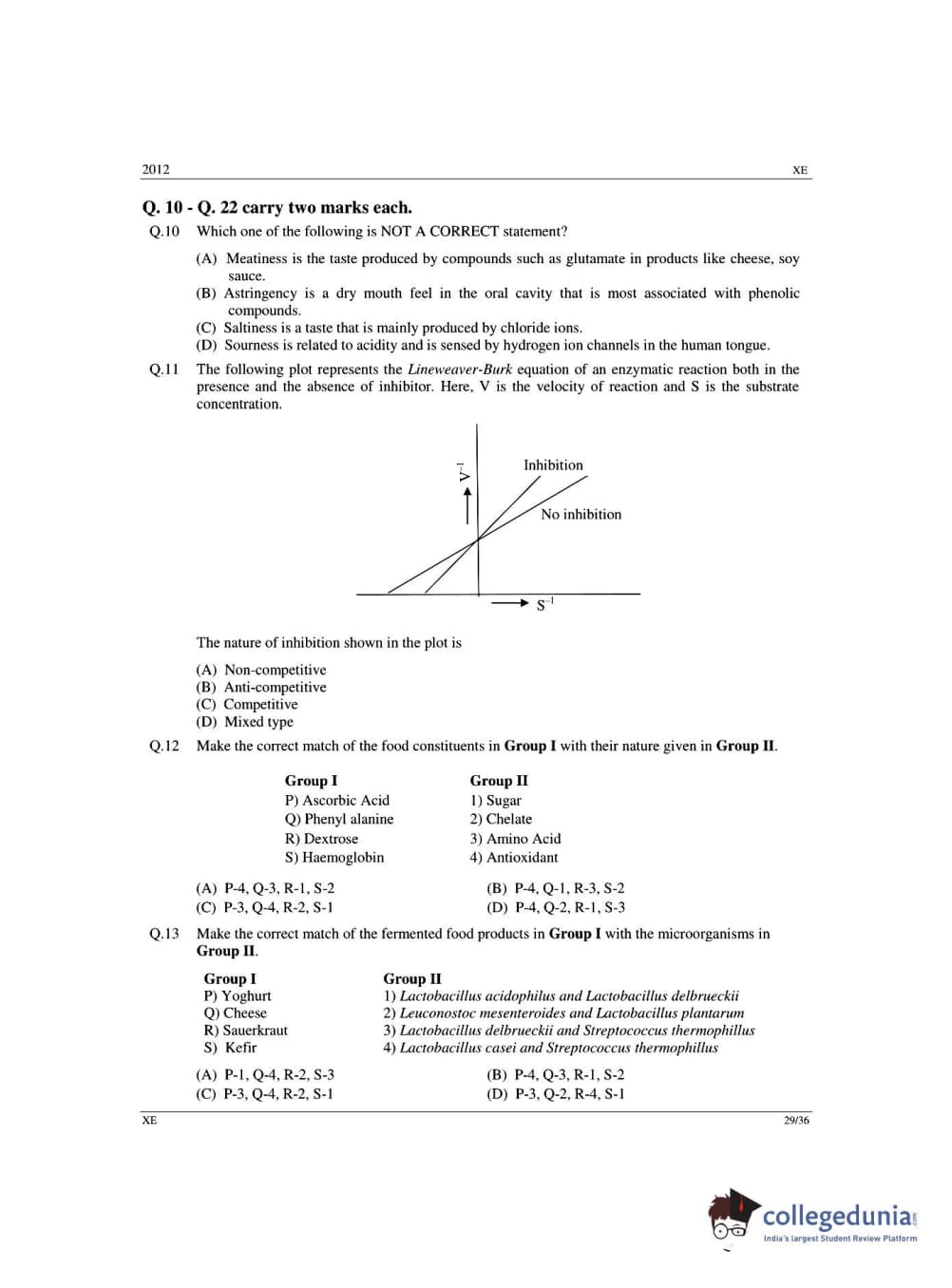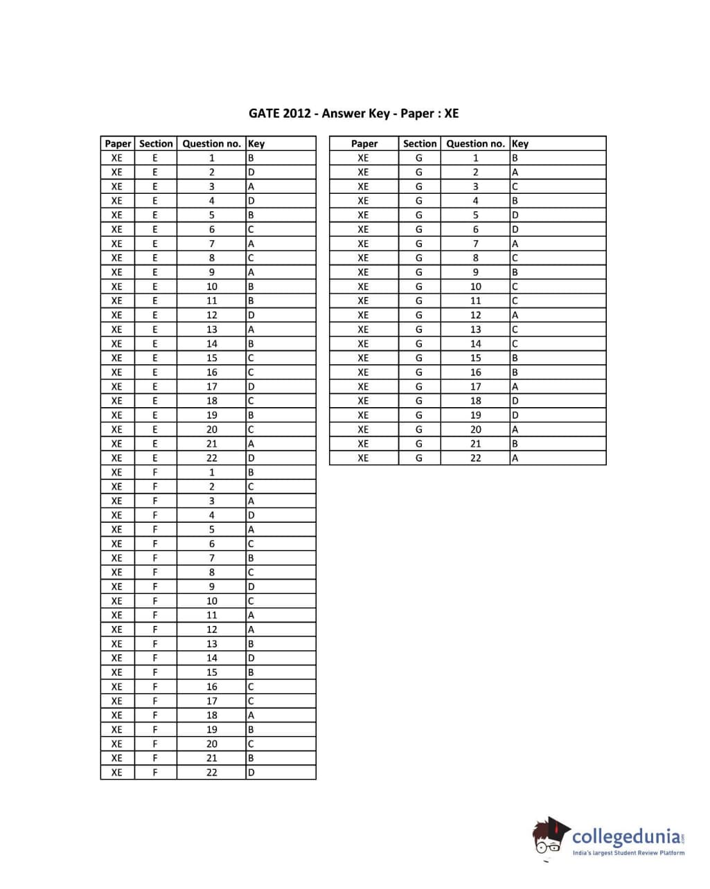 | GATE 2012 Engineering Sciences (XE) Question Paper | GATE 2012 Engineering Sciences (XE) Answer Key |