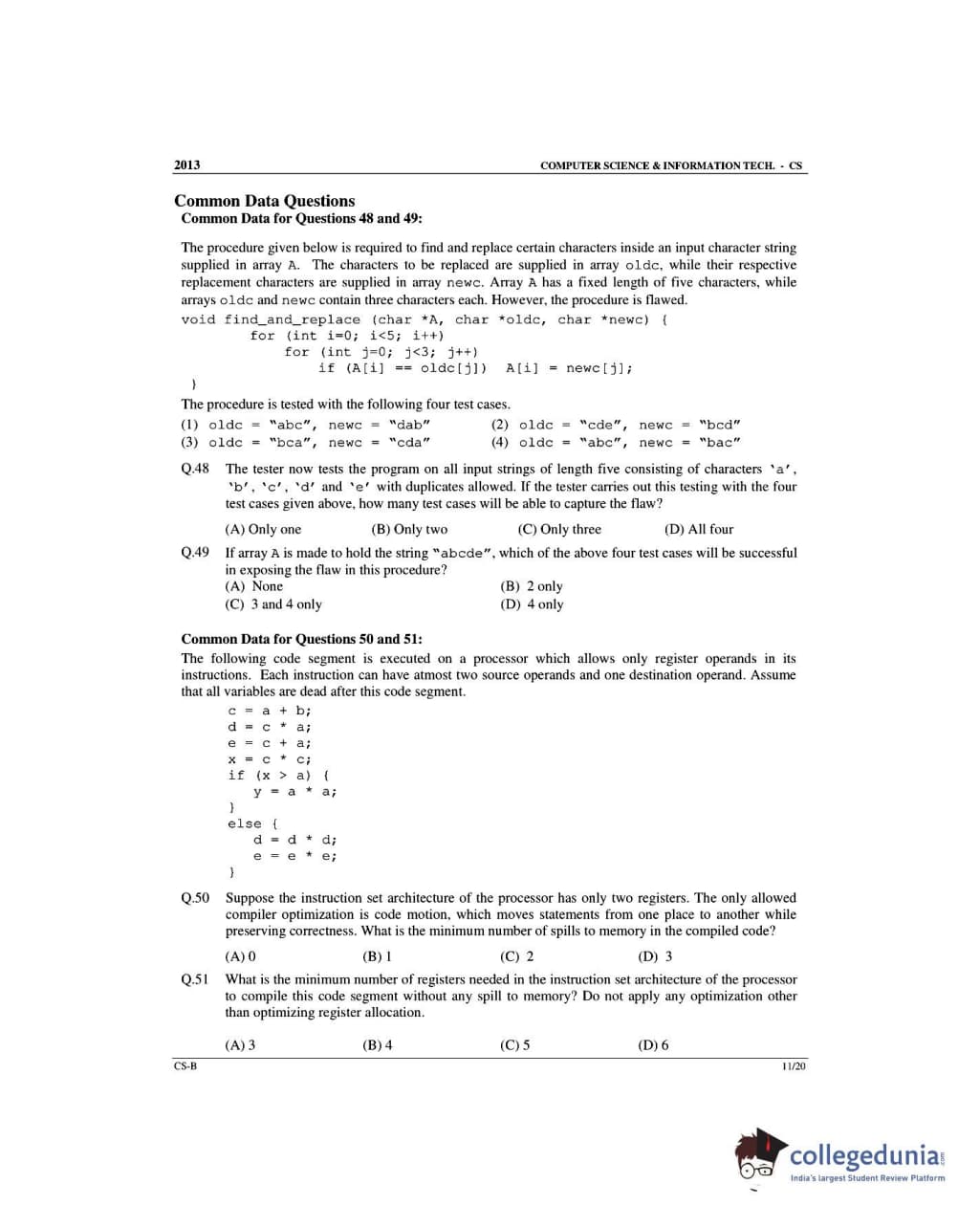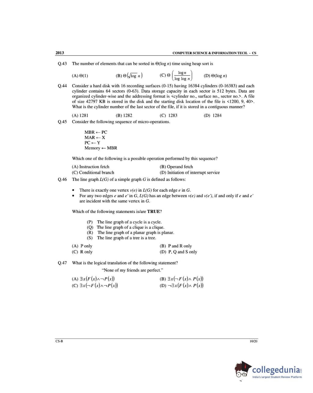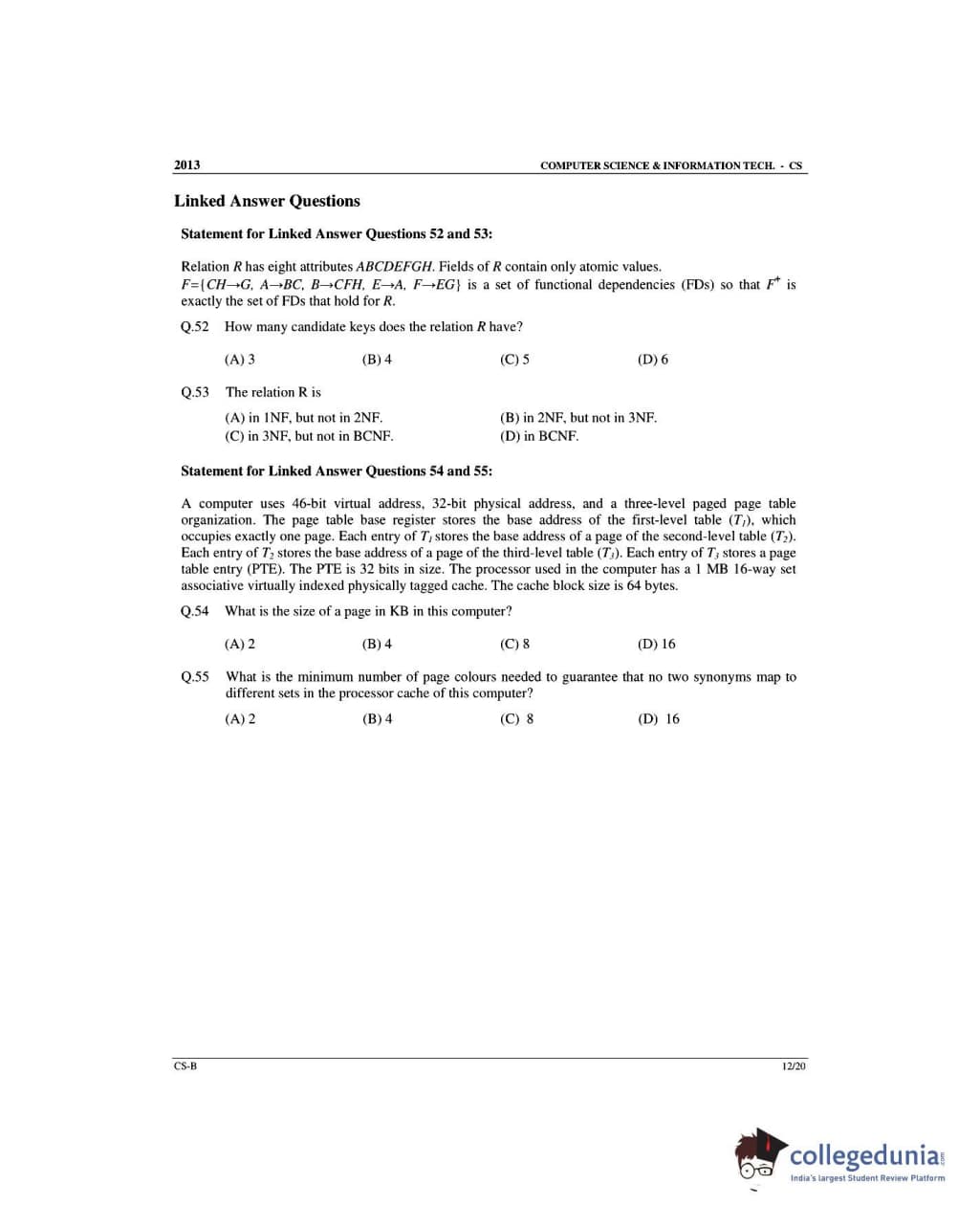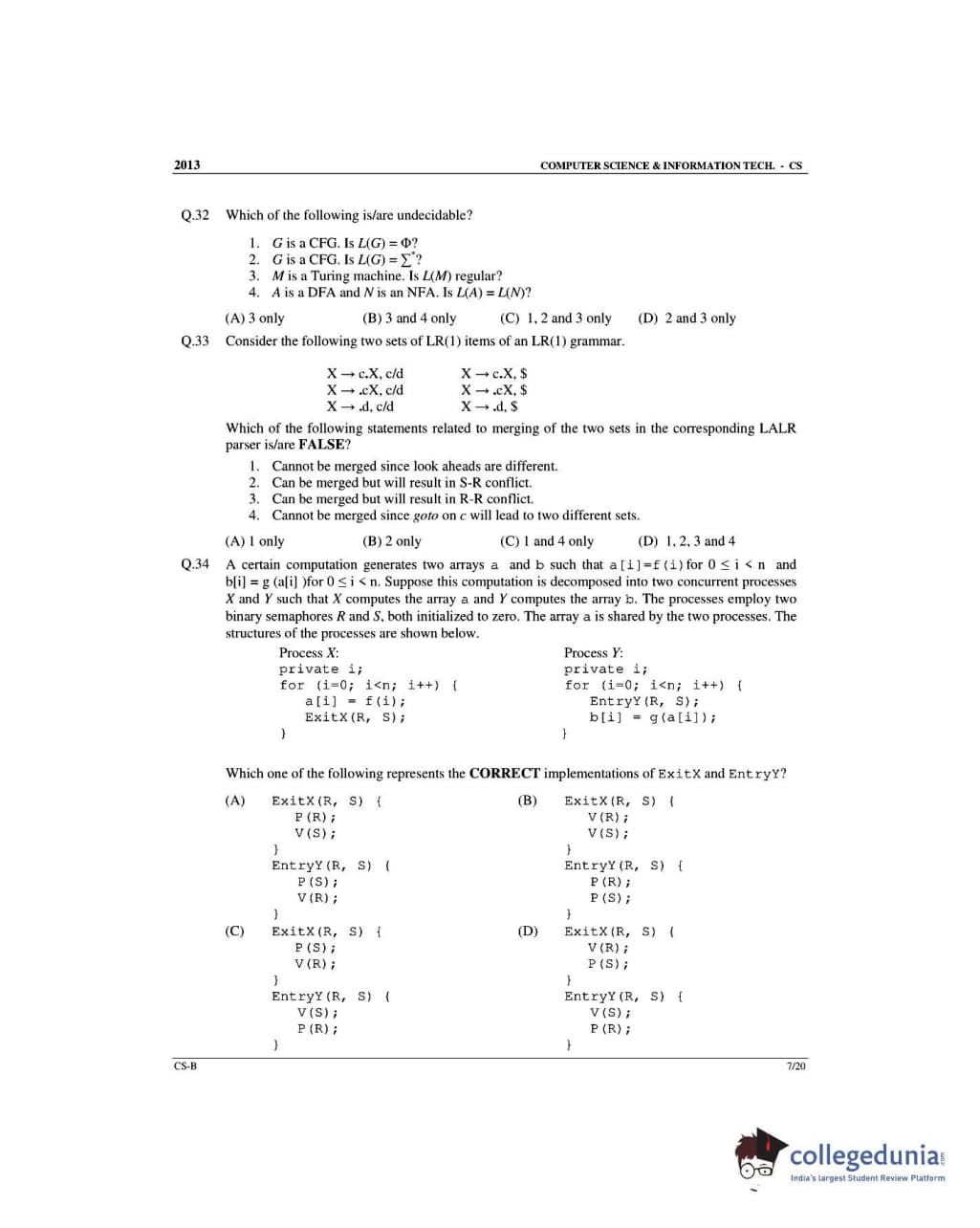 GATE 2013 Computer Science and Information Technology (CS) Slot 2 Question Paper with Answer Key PDFs (February 10)