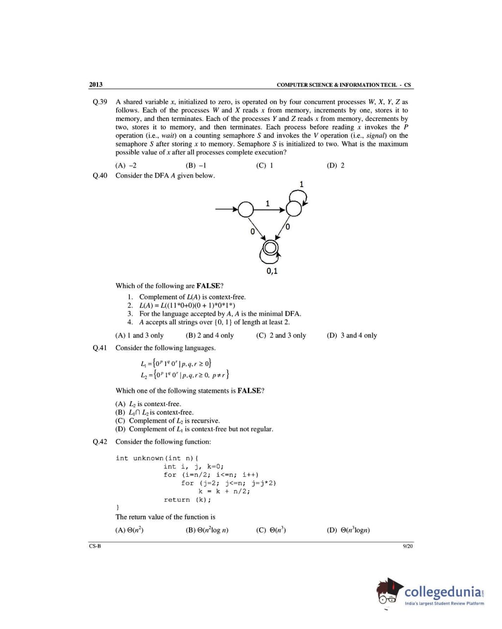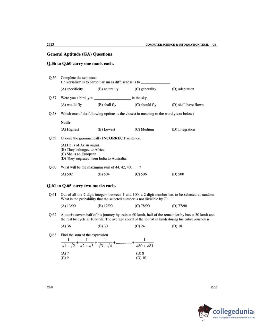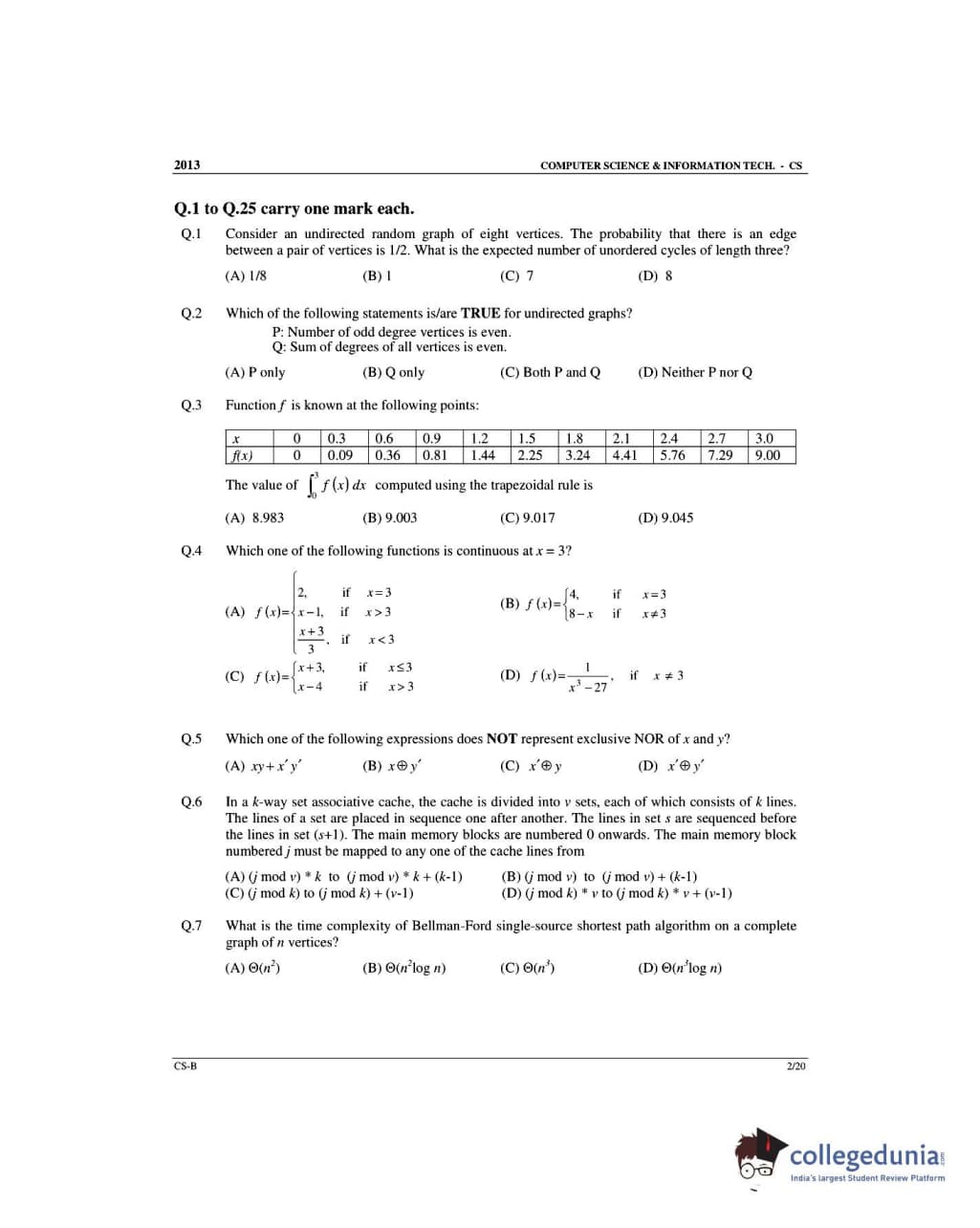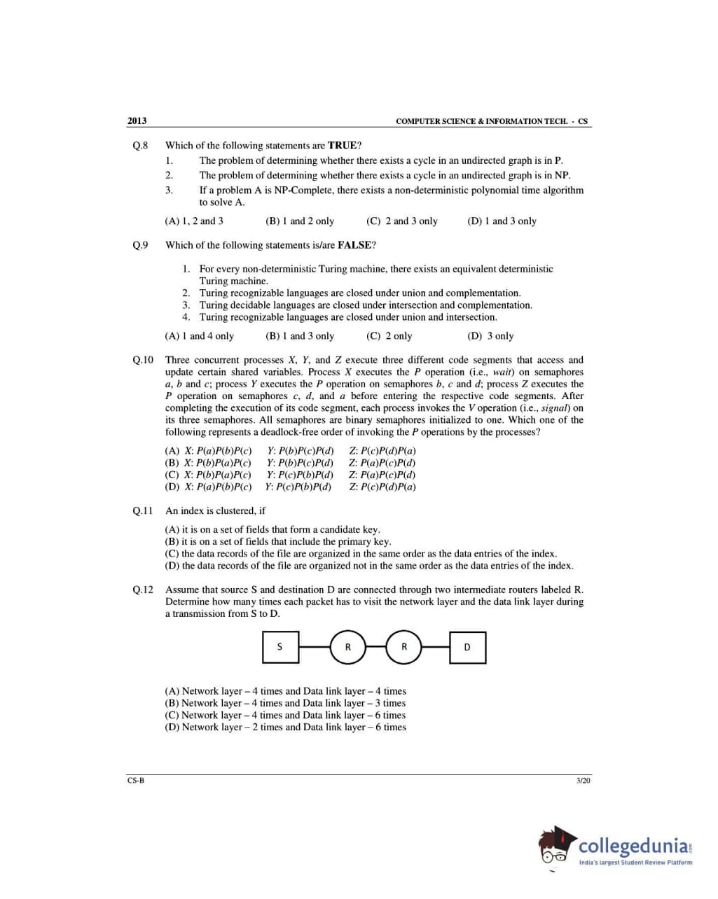 GATE 2013 Computer Science and Information Technology (CS) Slot 2 Question Paper with Answer Key PDFs (February 10)