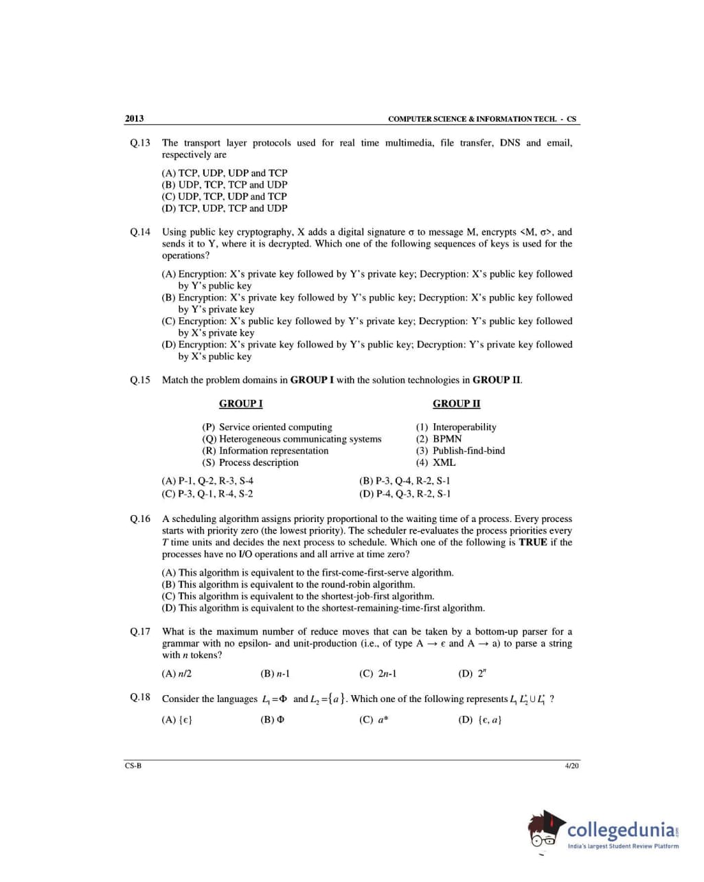 | GATE 2013 Computer Science and Information Technology (CS) Question Paper | GATE 2013 Computer Science and Information Technology (CS) Answer Key |
