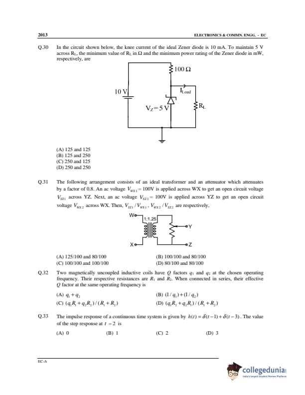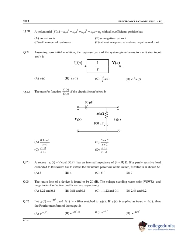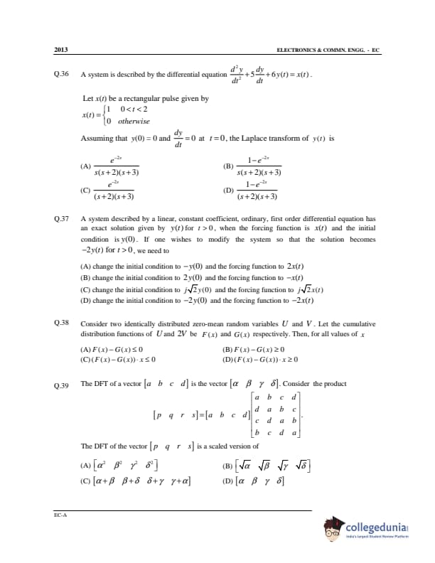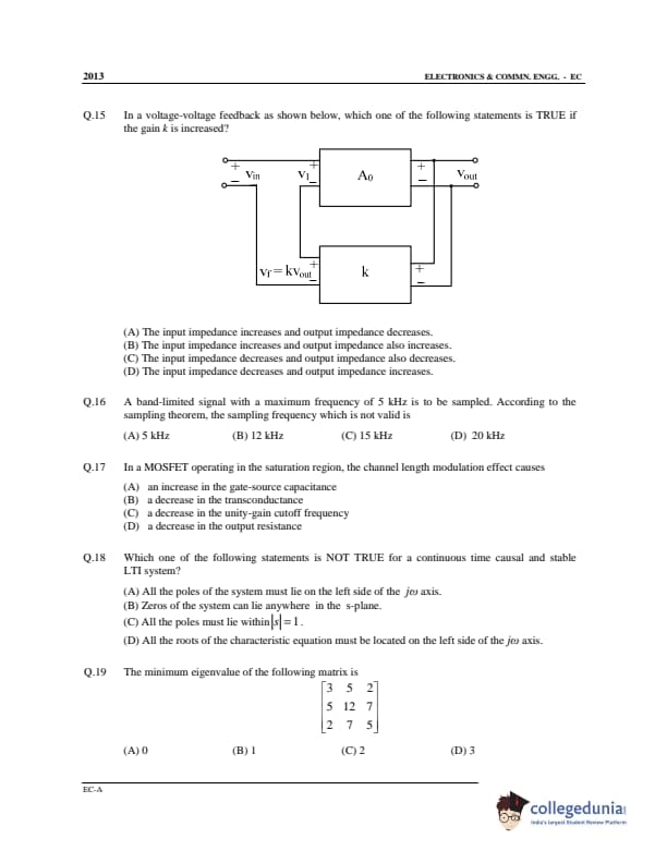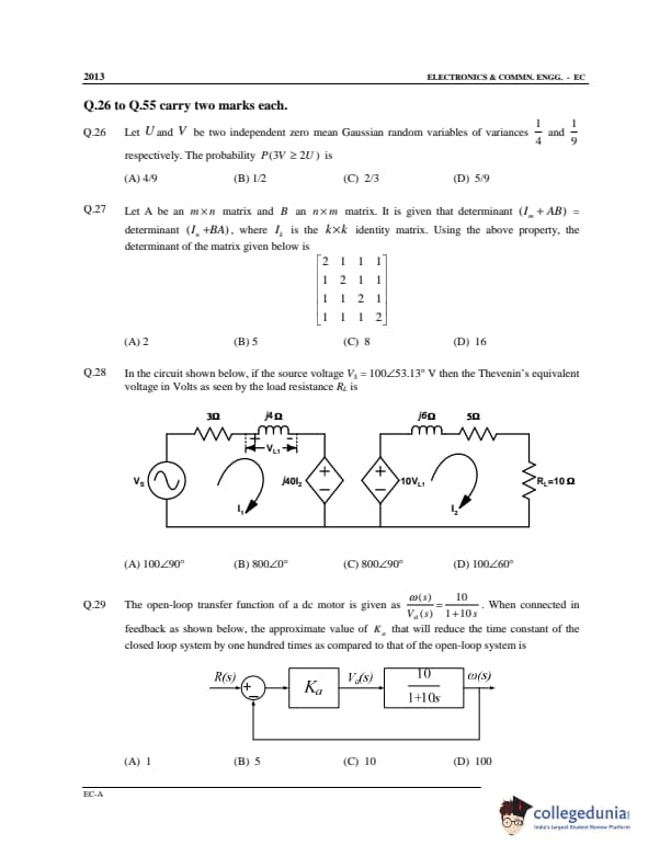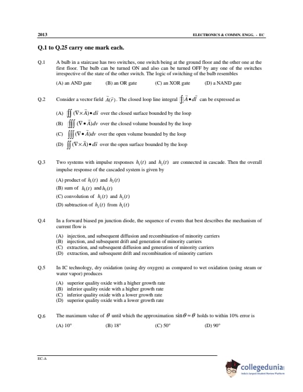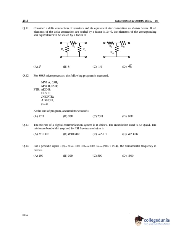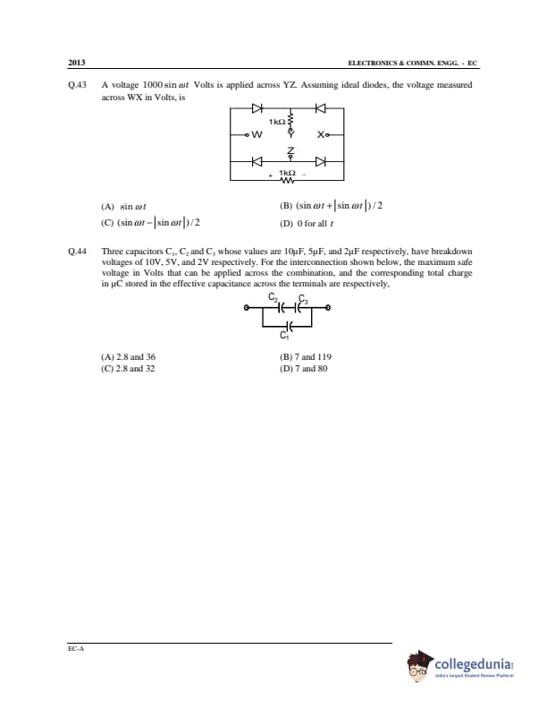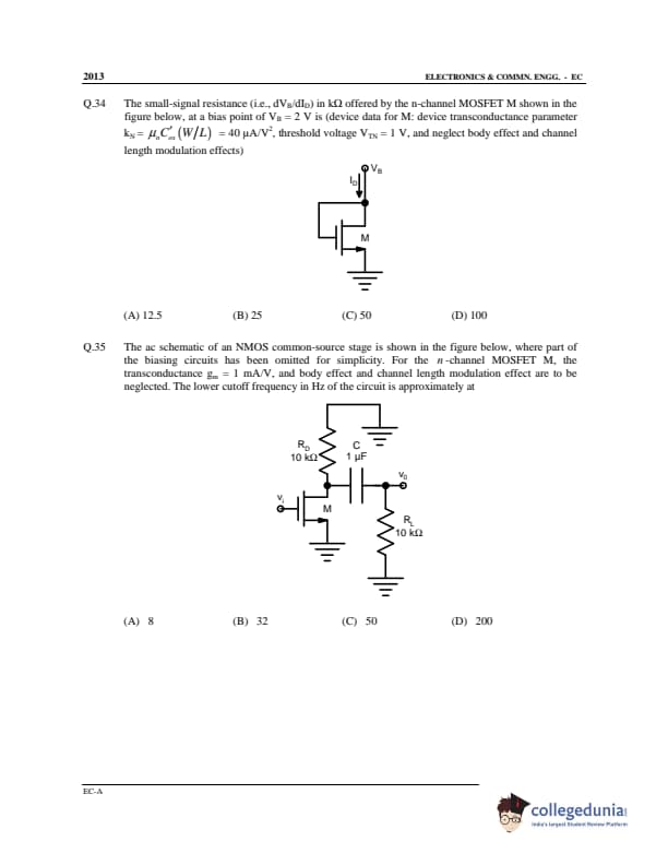 GATE 2013 Electronics and Communication Engineering (EC) Offline Question Paper with Answer Key PDF Slot 1- Afternoon Session