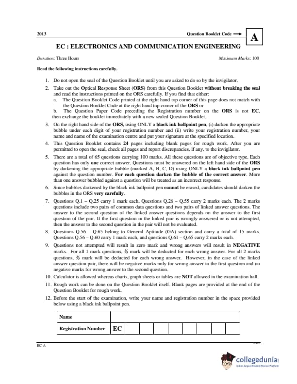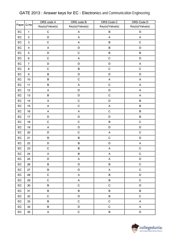 | GATE 2013 Electronics and Communication Engineering (EC) Question Paper PDF | GATE 2013 Electronics and Communication Engineering (EC) Answer Key PDF |