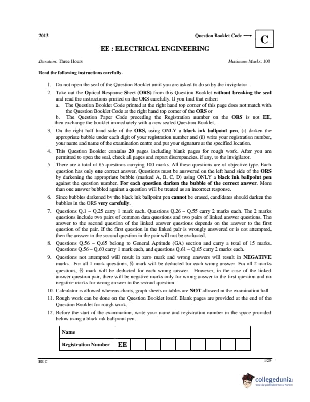| GATE 2013 Electrical Engineering (EE) Question Paper |