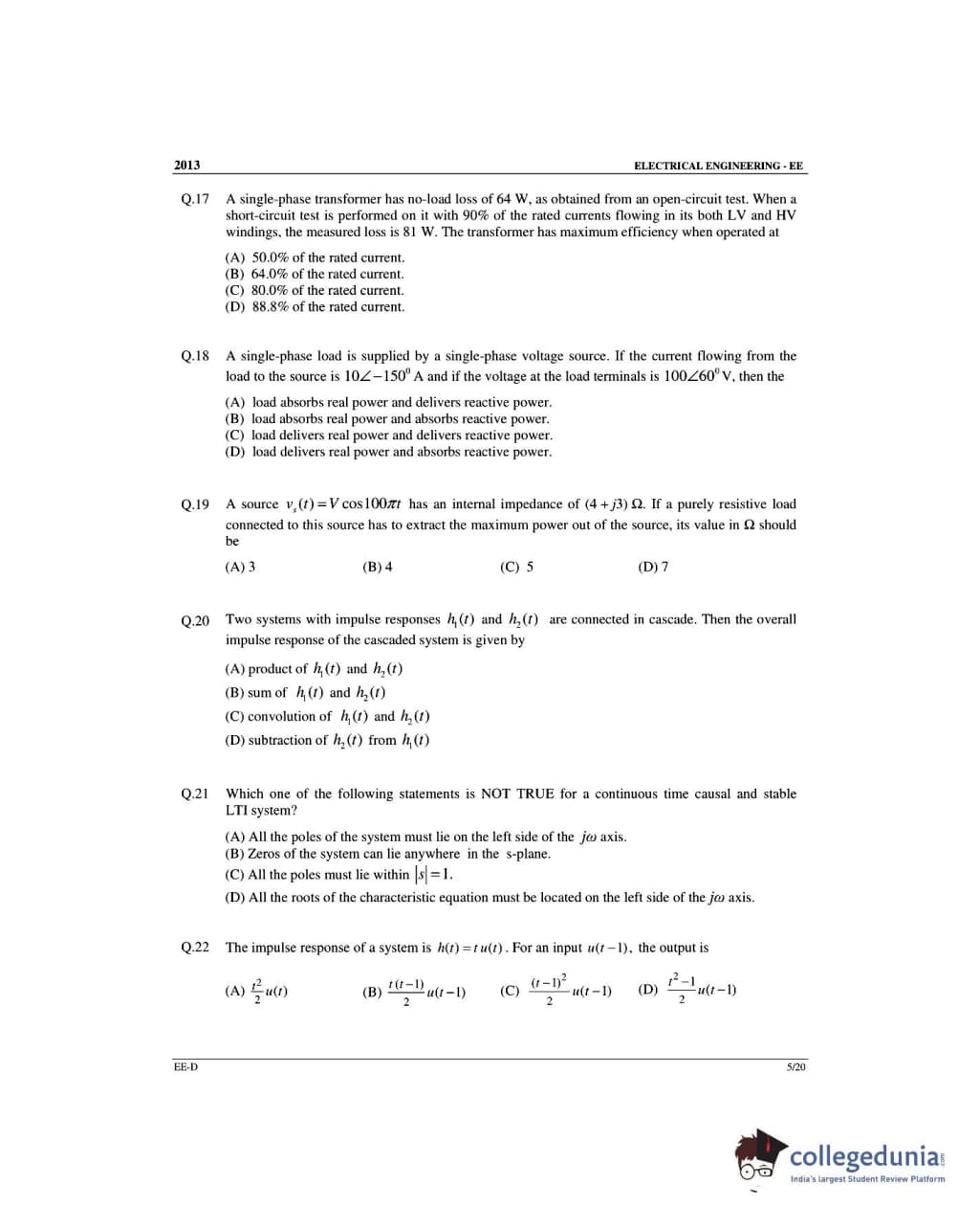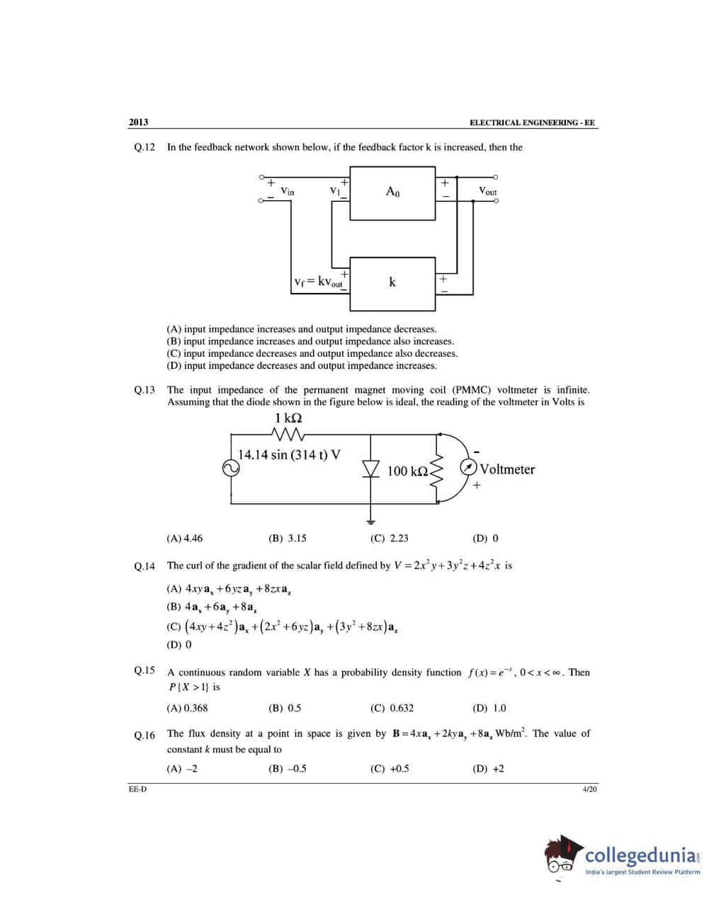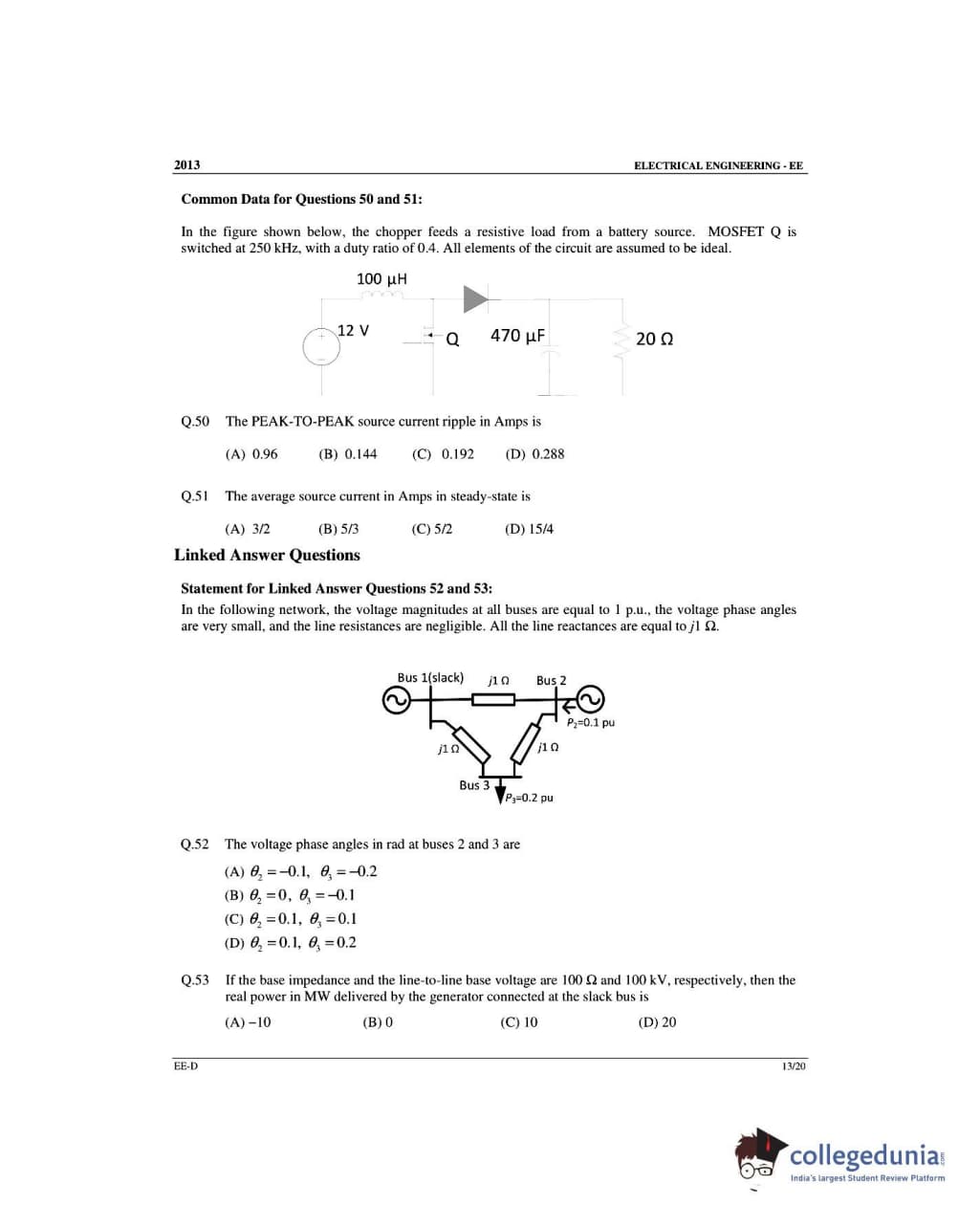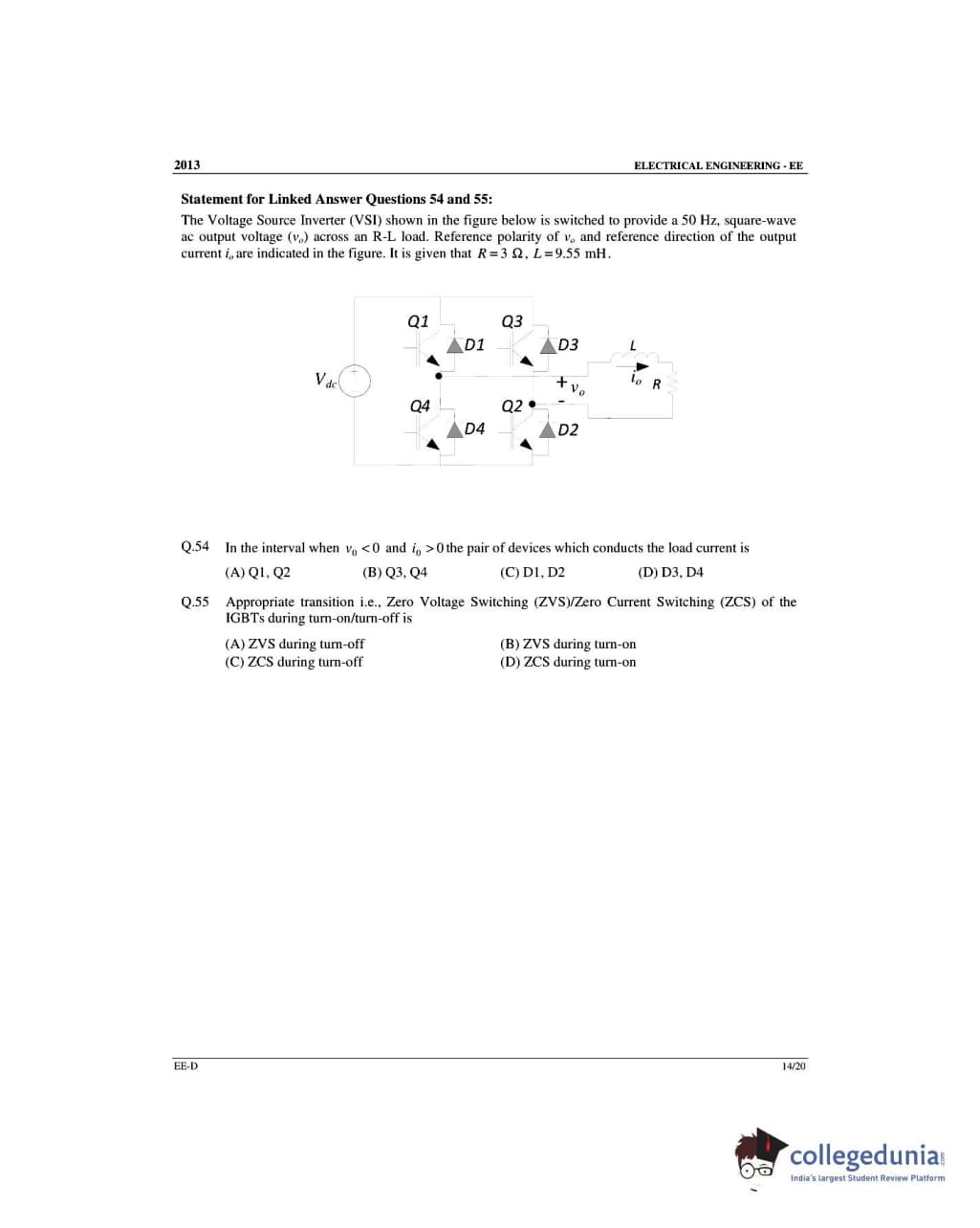 GATE 2013 Electrical Engineering (EE) Slot 4 - Offline Question Paper with Answer Key PDFs -Afternoon Session