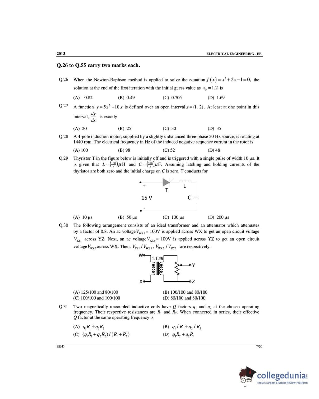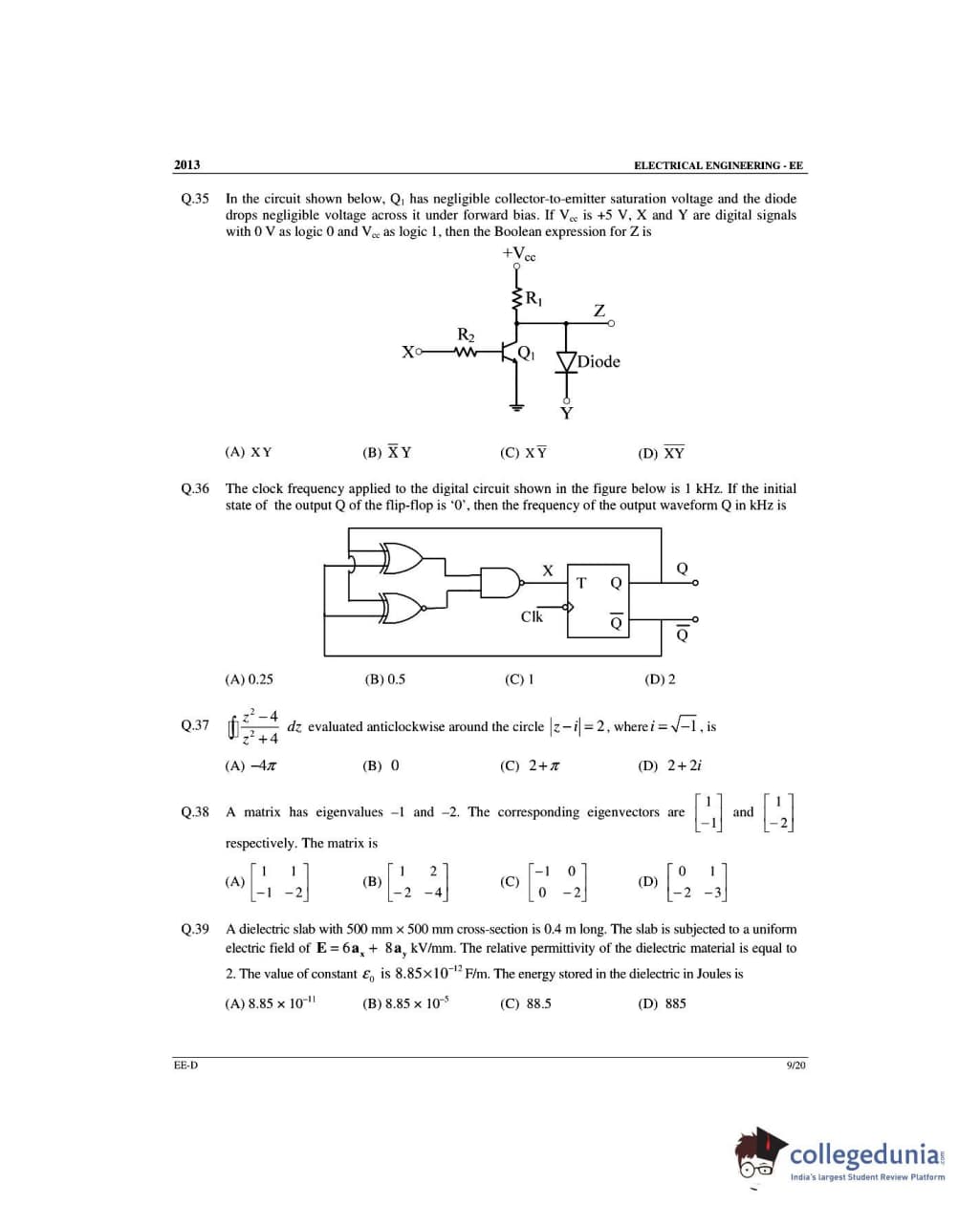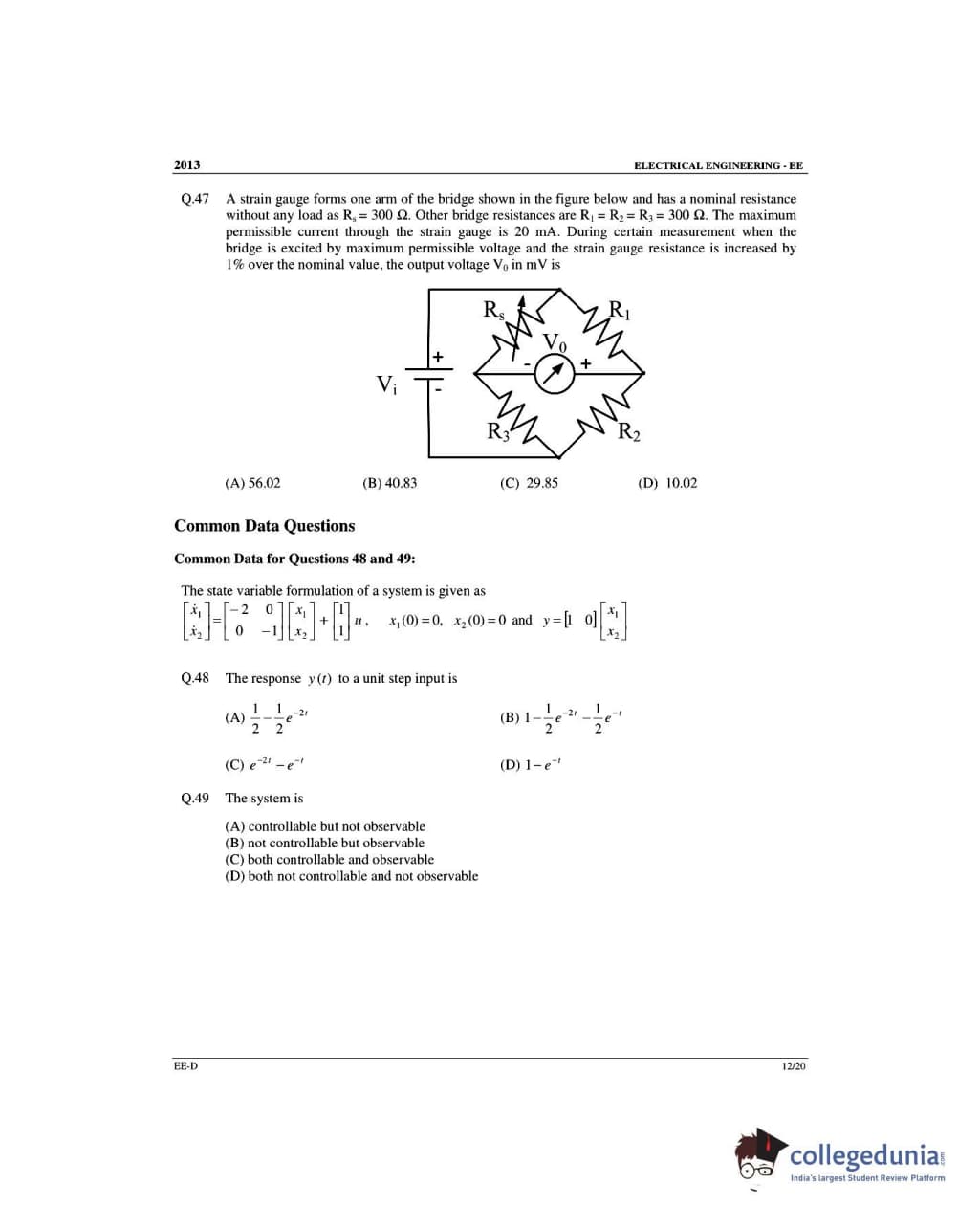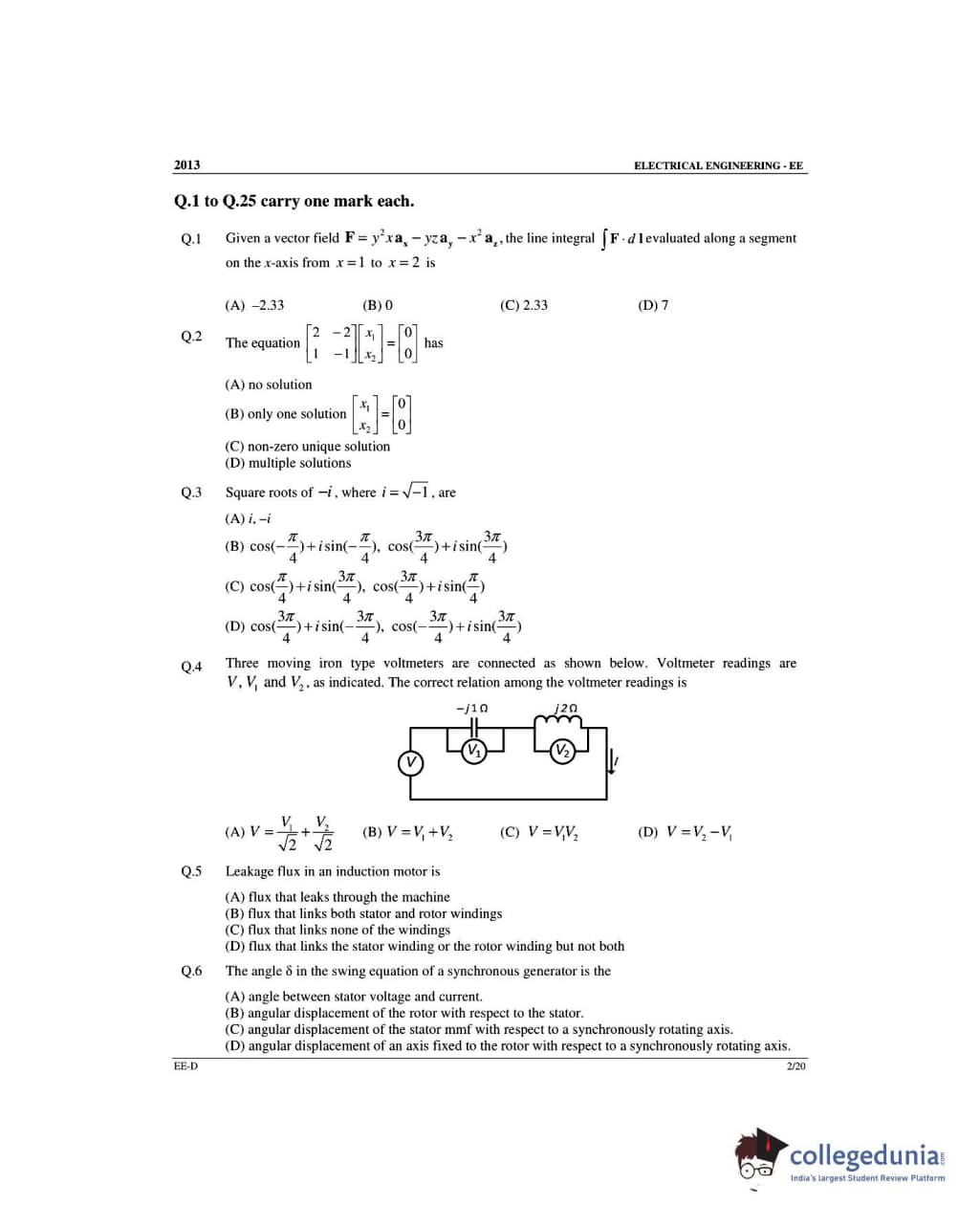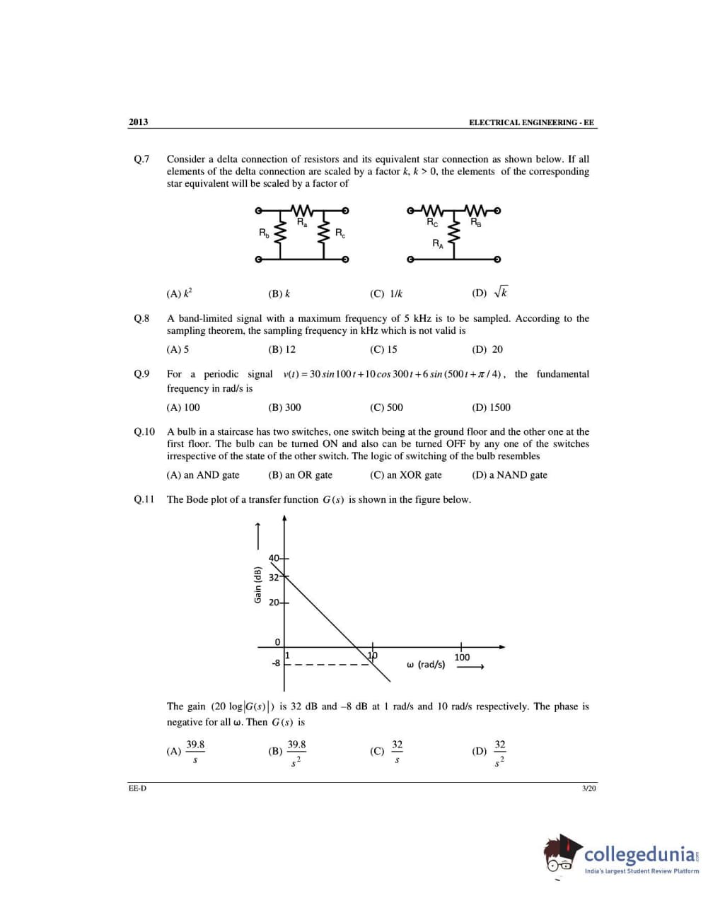 GATE 2013 Electrical Engineering (EE) Slot 4 - Offline Question Paper with Answer Key PDFs -Afternoon Session