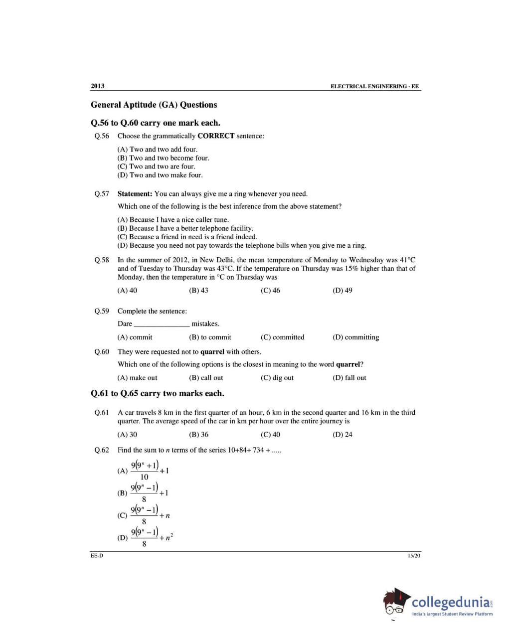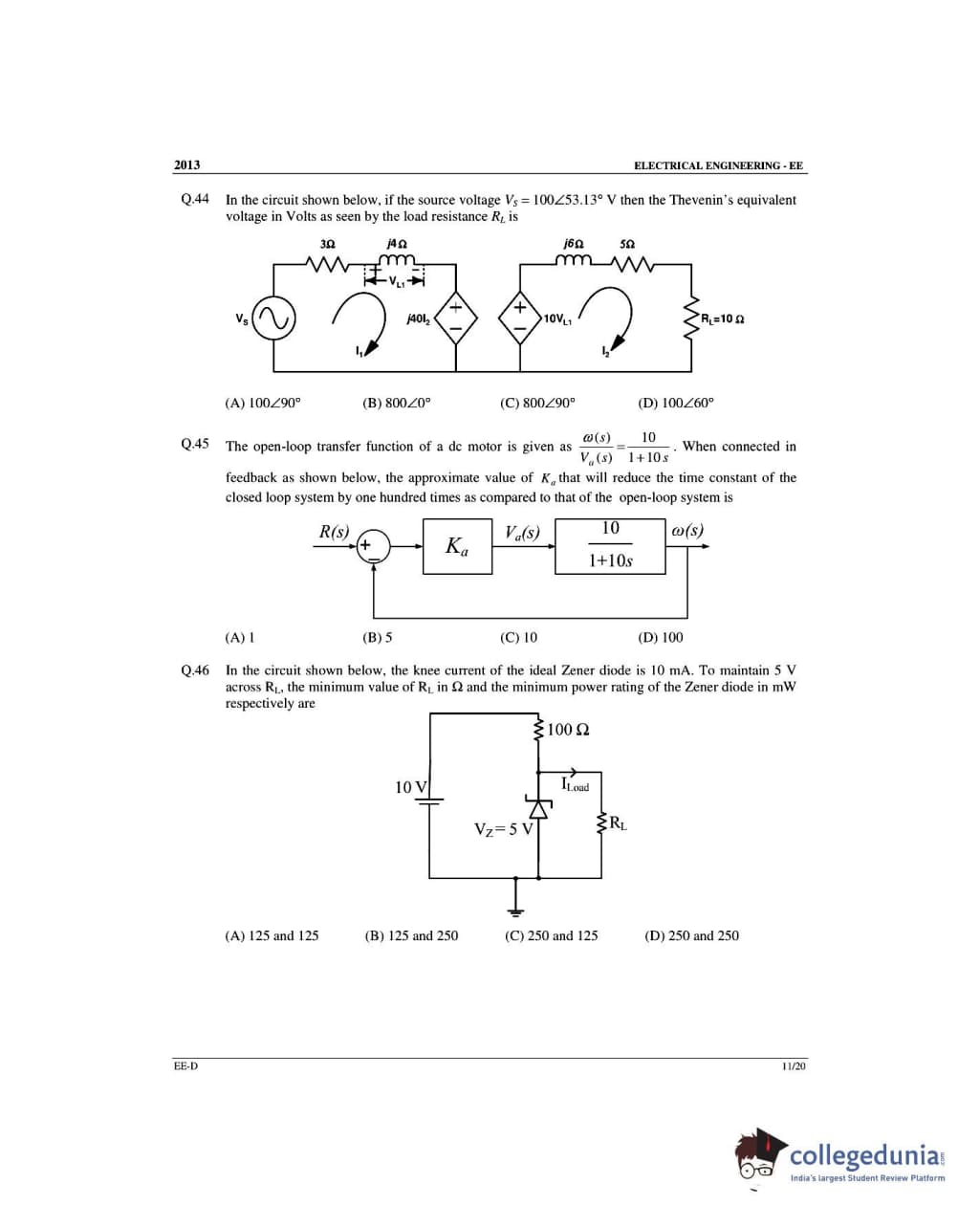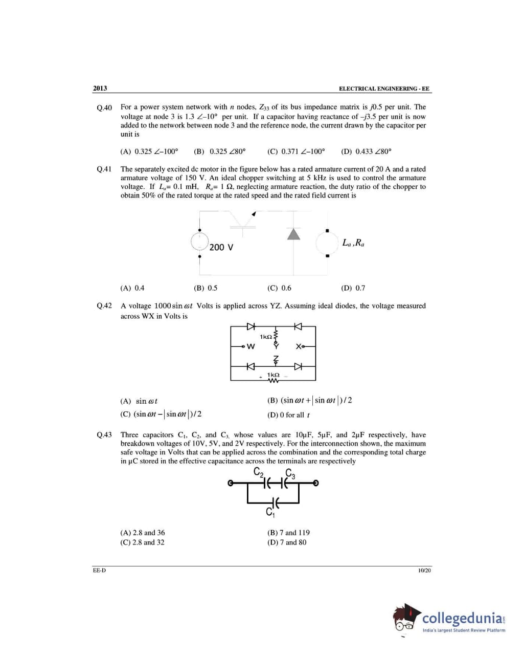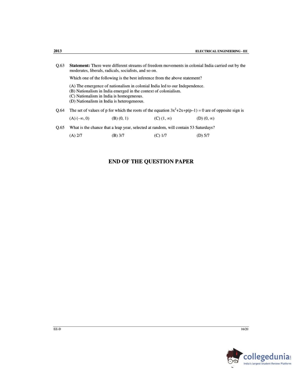 GATE 2013 Electrical Engineering (EE) Slot 4 - Offline Question Paper with Answer Key PDFs -Afternoon Session