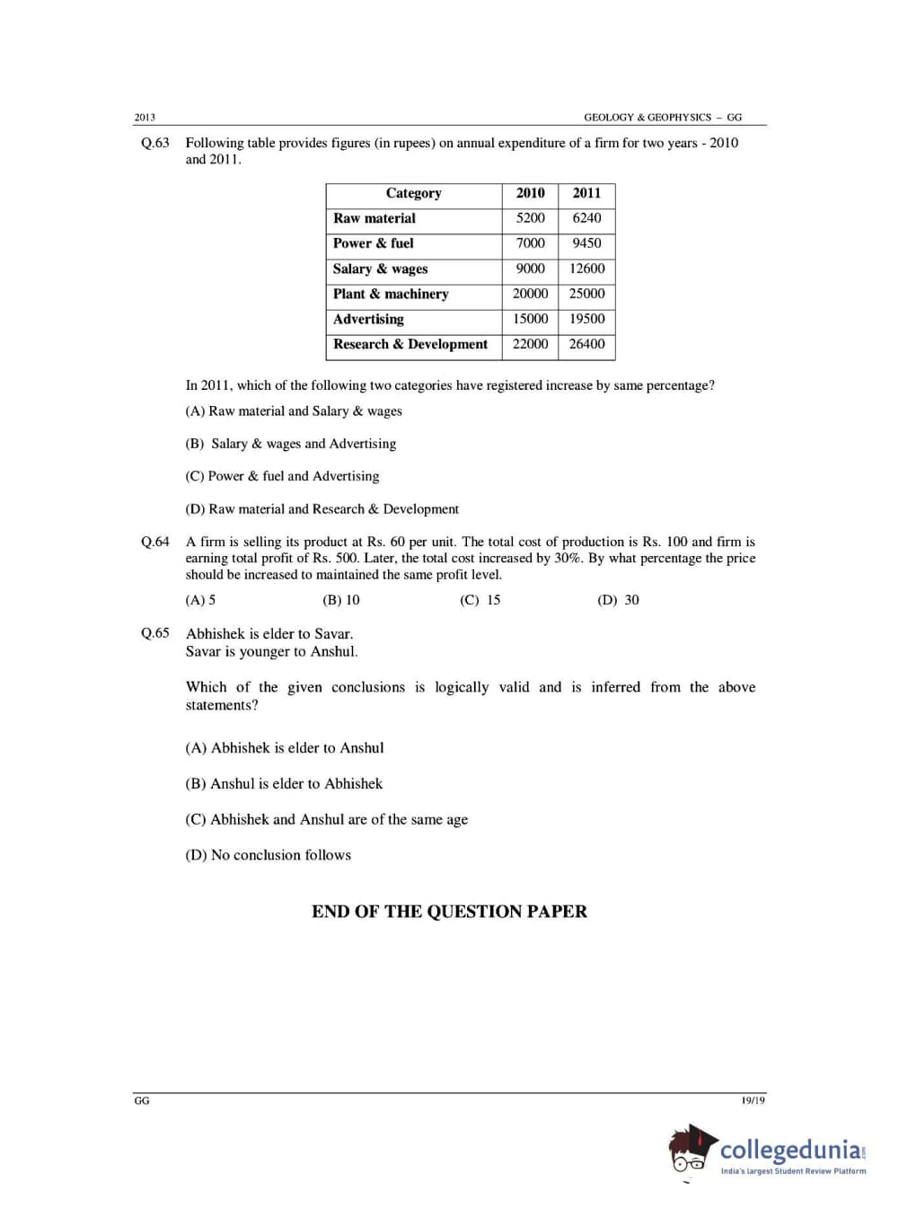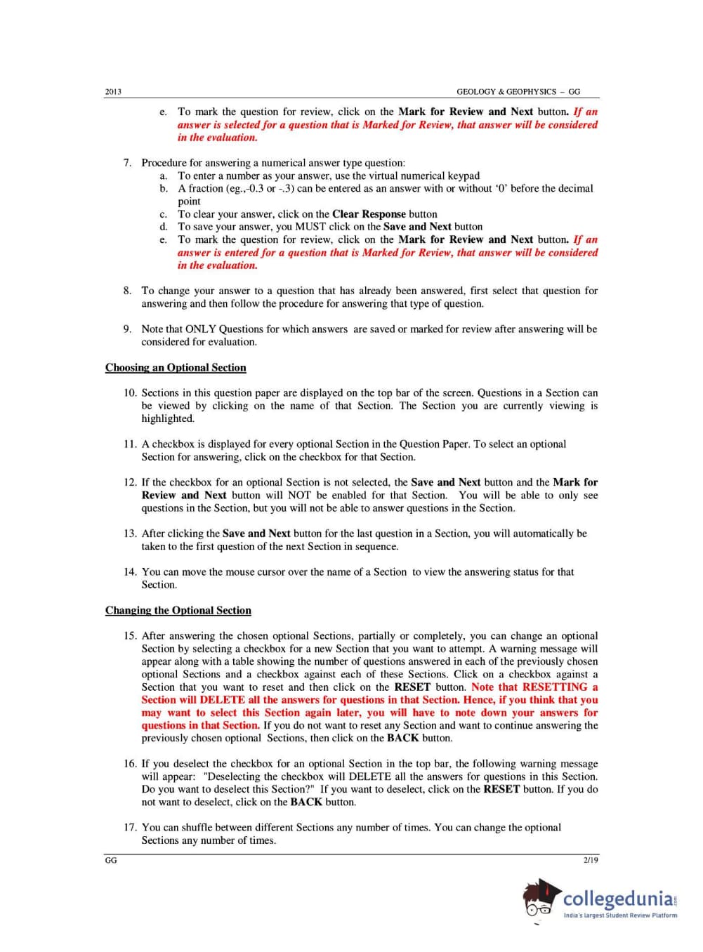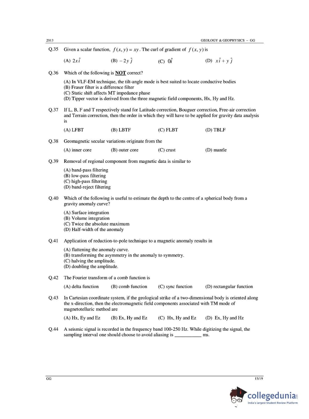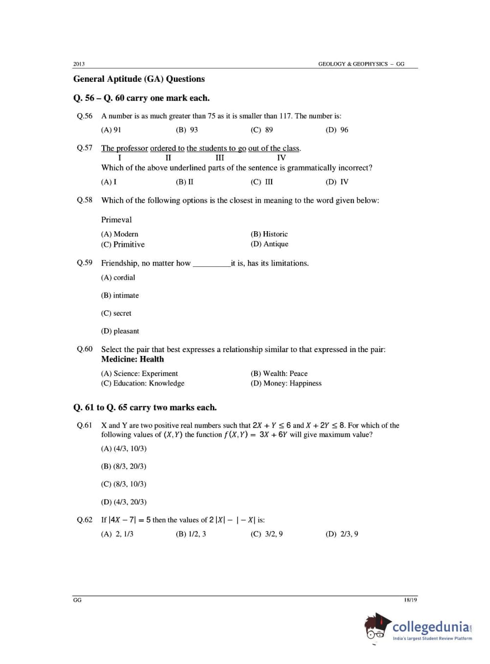 GATE 2013 Geology and Geophysics (GG) - Online Question Paper with Answer Key pdf is available for download. The exam was conducted by Indian Institute of Technology Bombay on Jan-20 in the Forenoon Session. The question paper comprised a total of 65 questions from General Aptitude and Geology and Geophysics (GG) - Online topics.