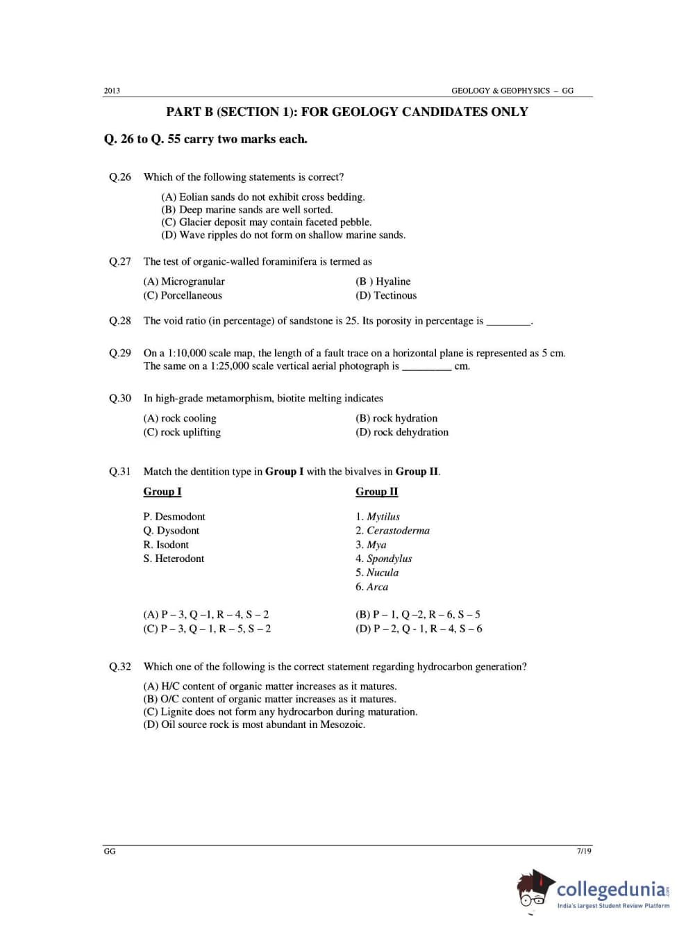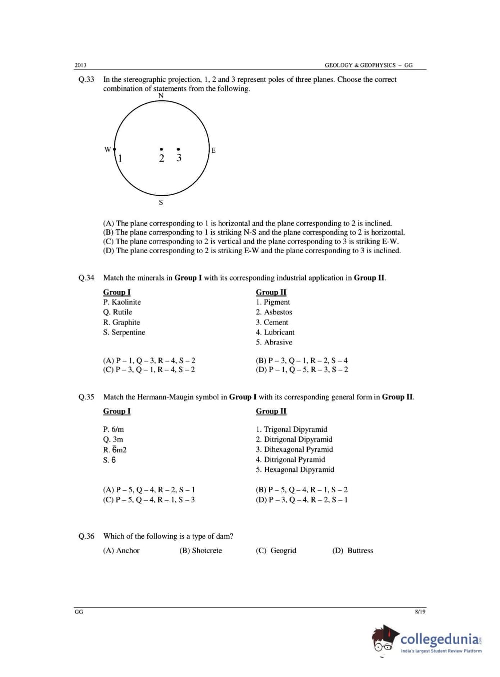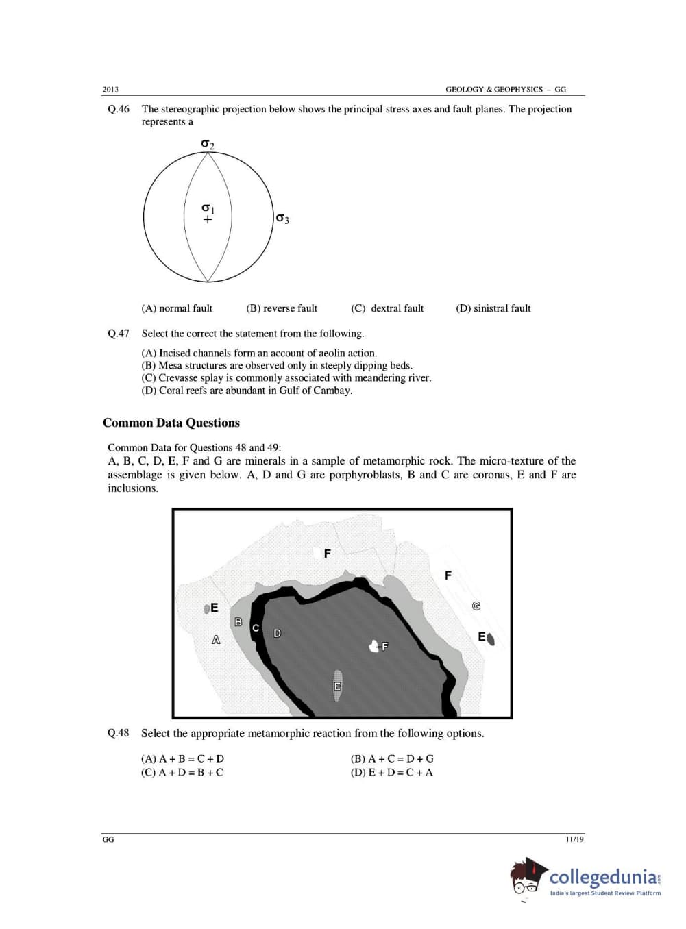 GATE 2013 Geology and Geophysics (GG) - Online Question Paper with Answer Key PDFs -Forenoon Session