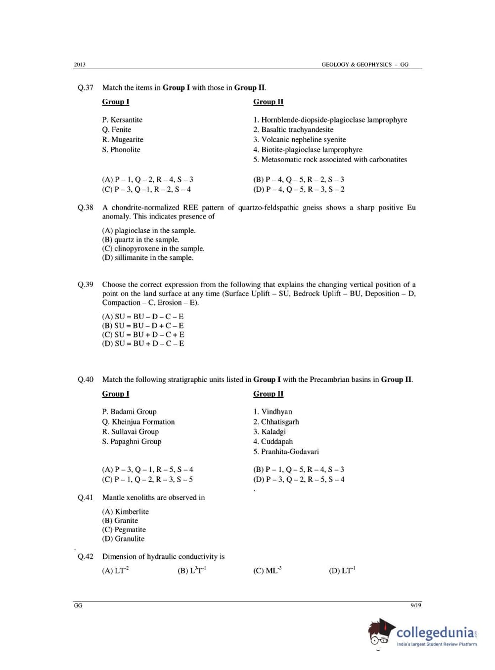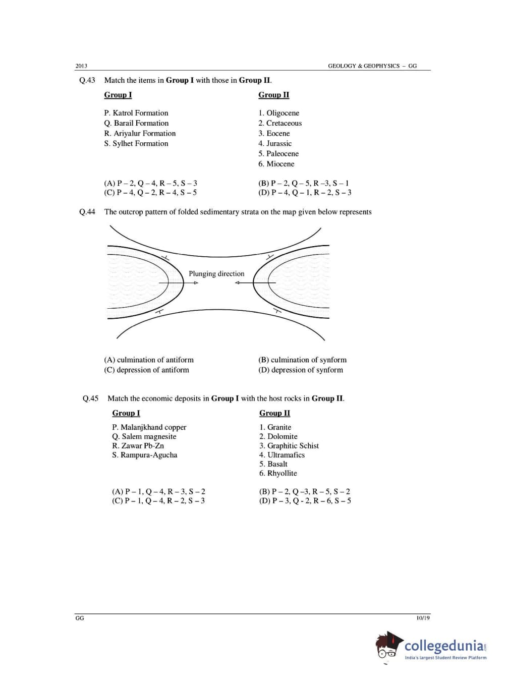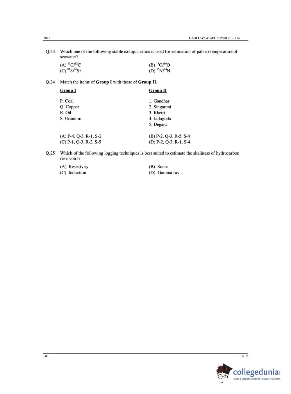 GATE 2013 Geology and Geophysics (GG) - Online Question Paper with Answer Key PDFs -Forenoon Session