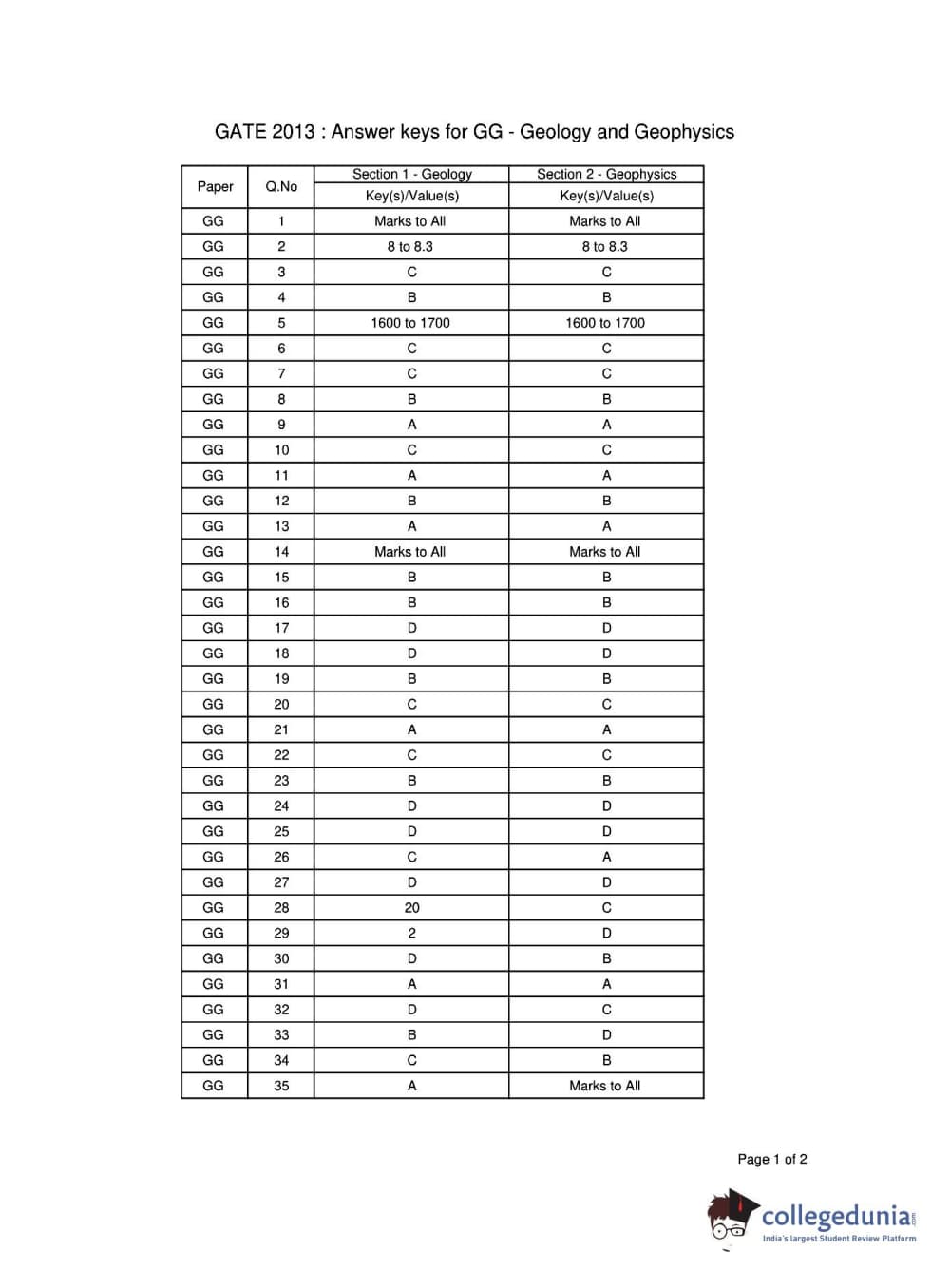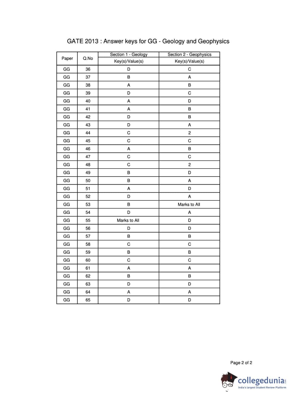 | GATE 2013 Geology and Geophysics (GG) - Online Question Paper PDF | GATE 2013 Geology and Geophysics (GG) - Online Answer Key PDF |