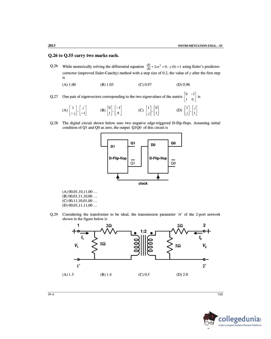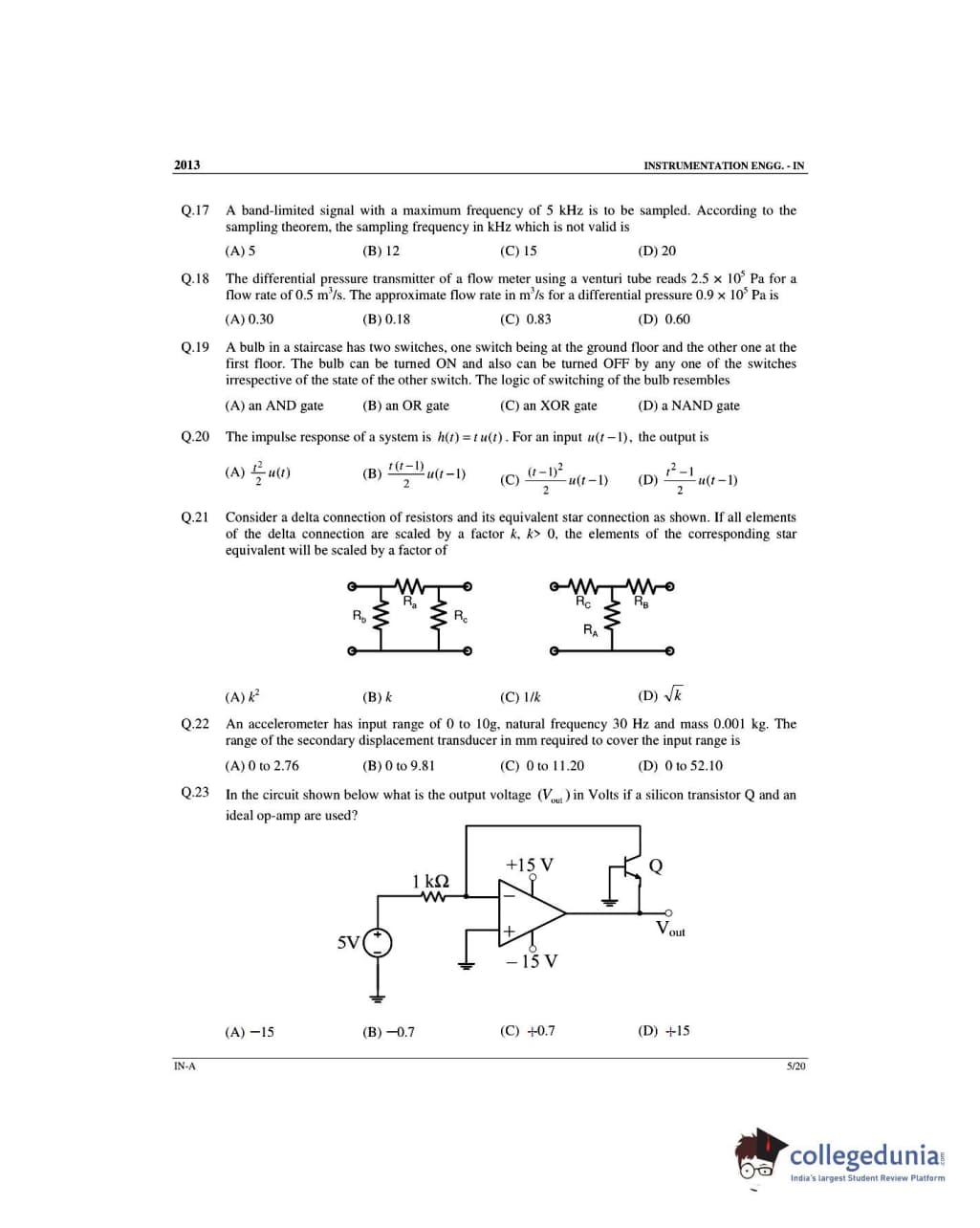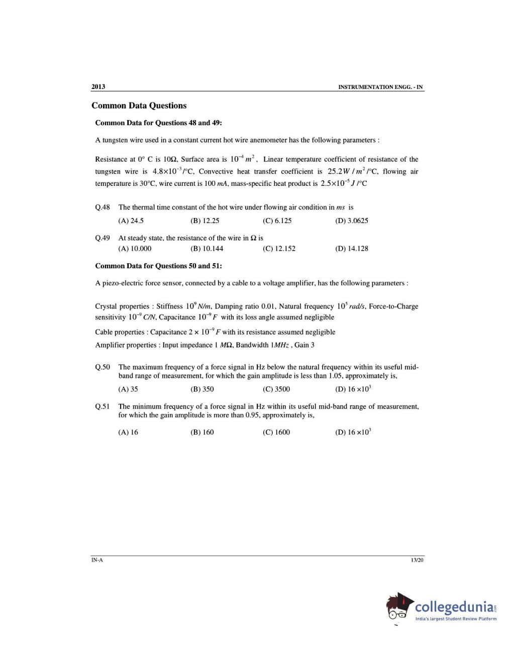 GATE 2013 Instrumentation Engineering (IN) - Offline Slot 1 Question Paper with Answer Key PDFs -Afternoon Session