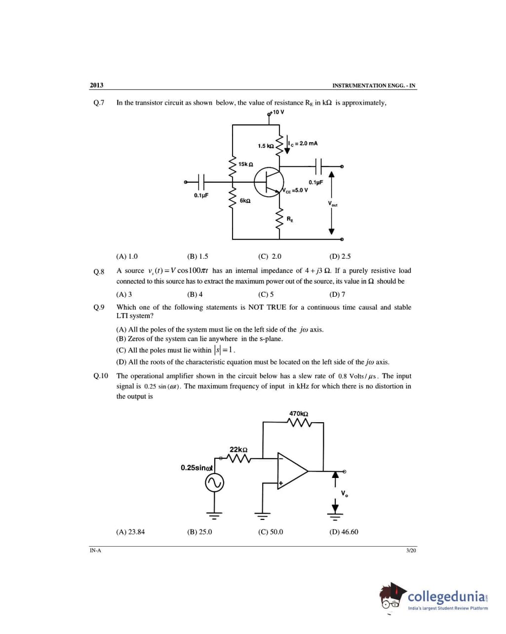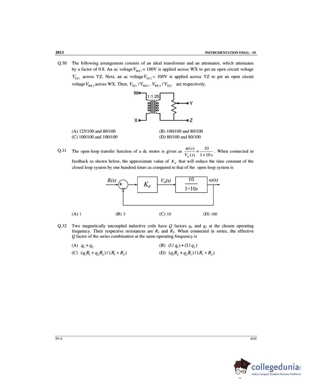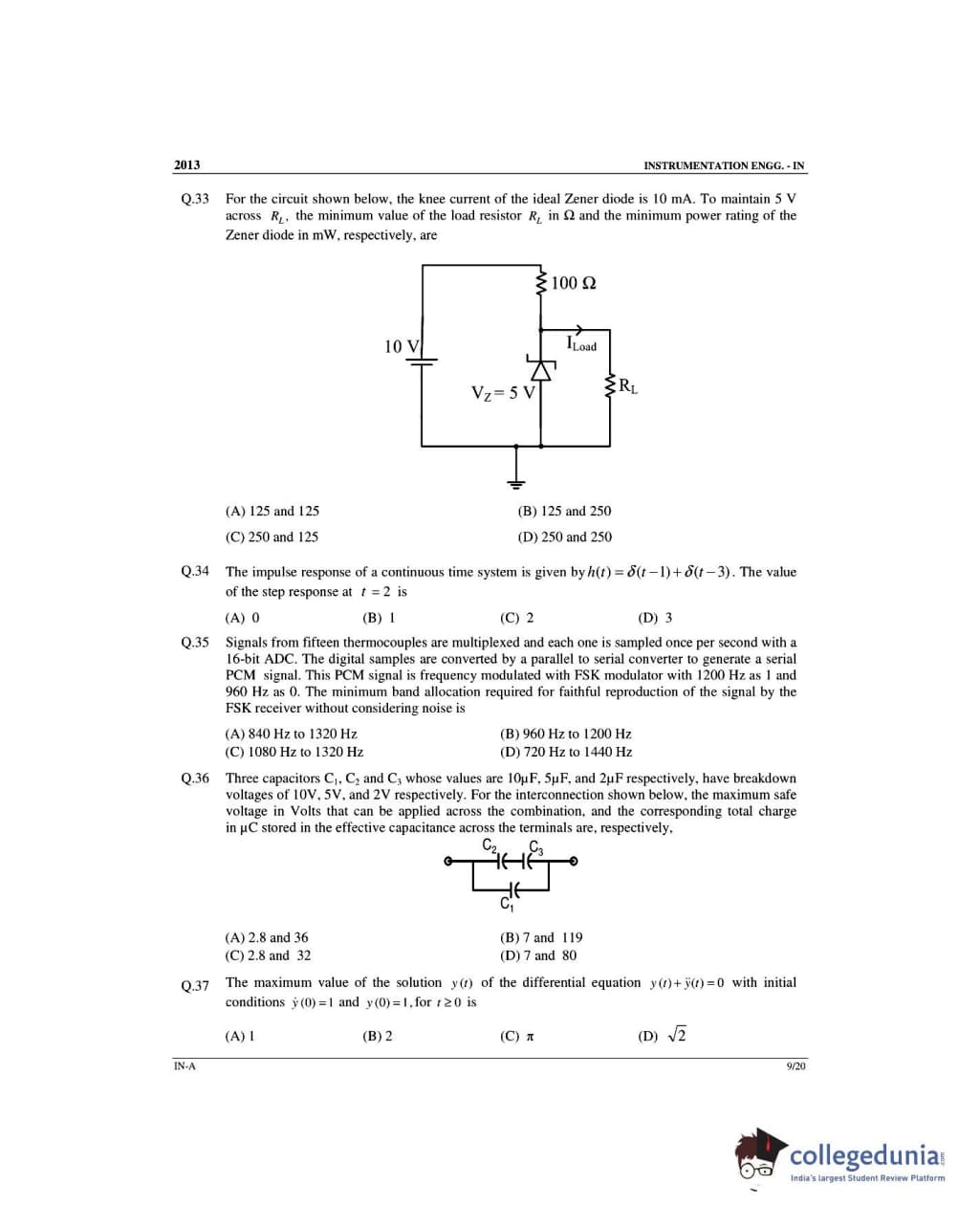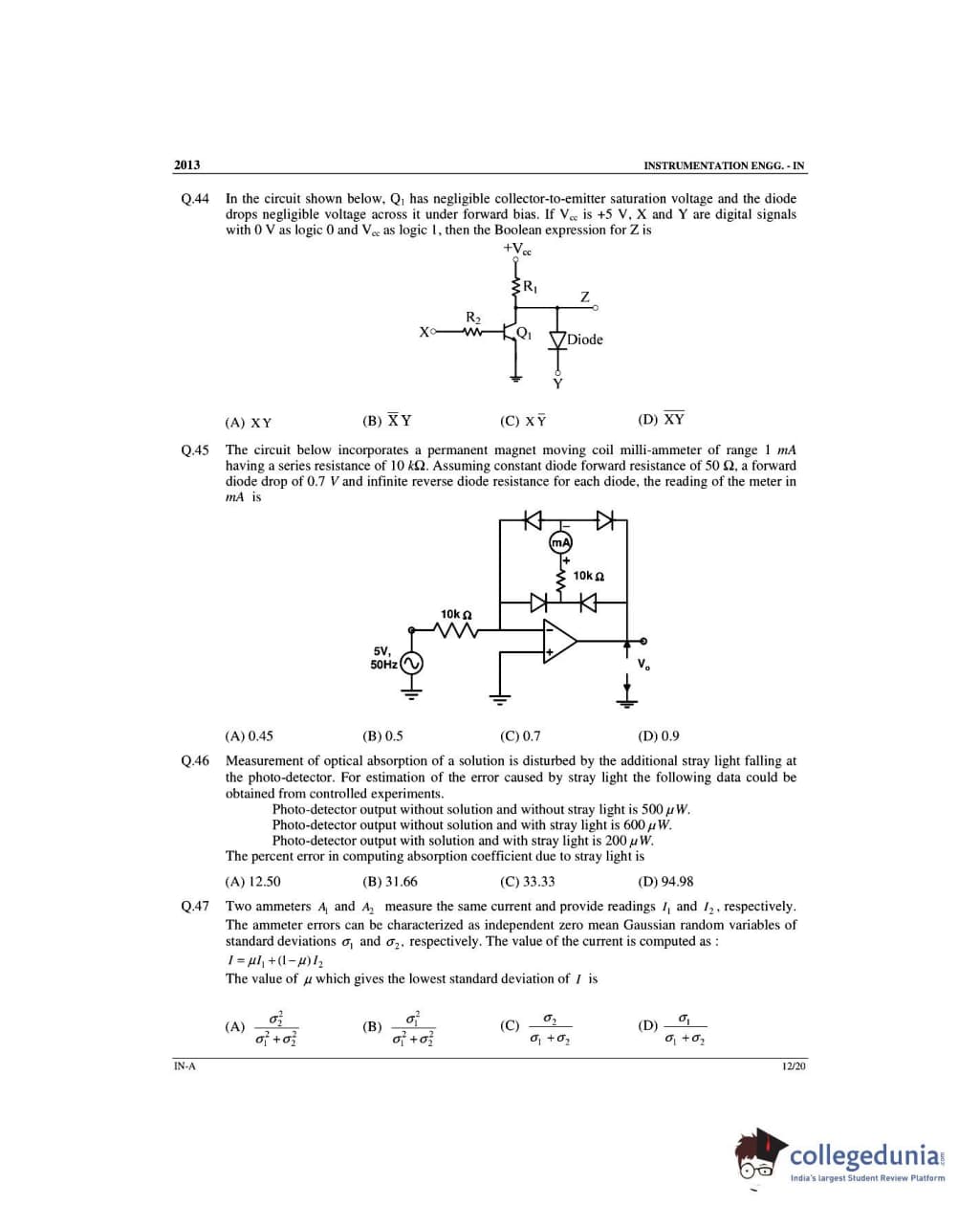 GATE 2013 Instrumentation Engineering (IN) - Offline Slot 1 Question Paper with Answer Key PDFs -Afternoon Session