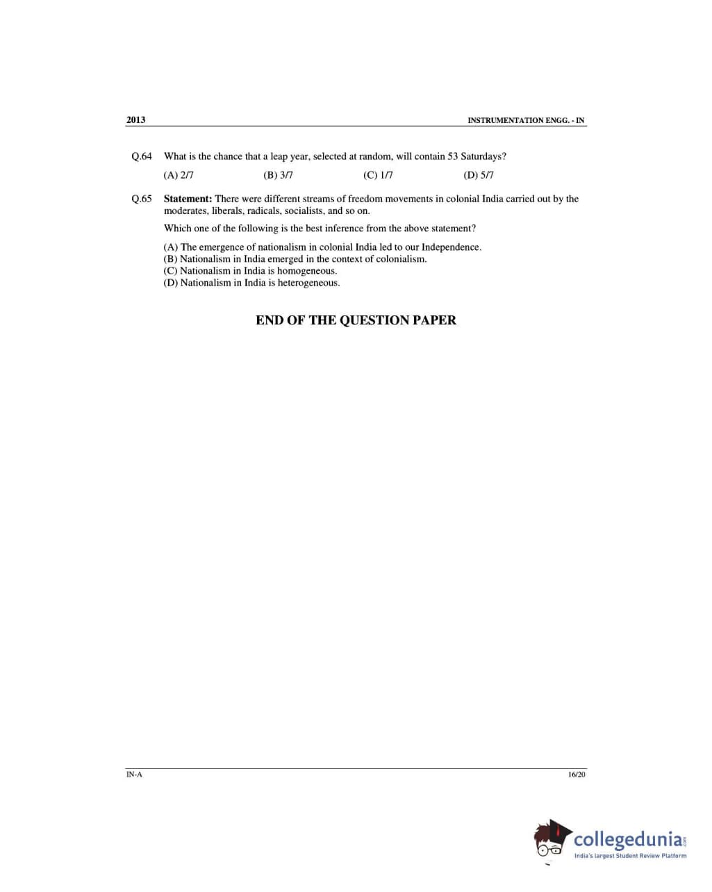| GATE 2013 Instrumentation Engineering (IN) - Offline Question Paper PDF | GATE 2013 Instrumentation Engineering (IN) - Offline Answer Key PDF |