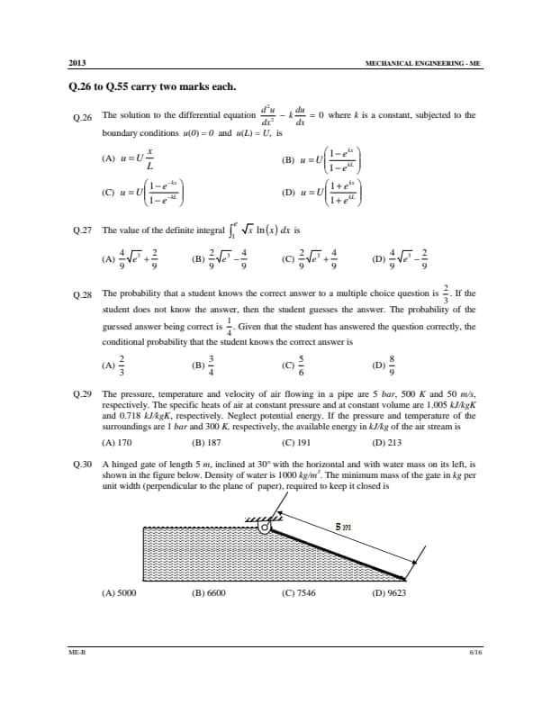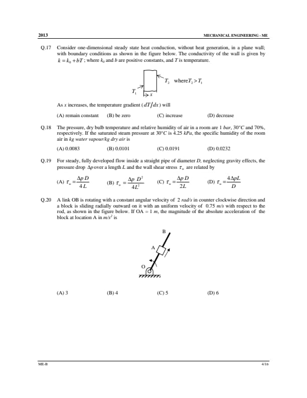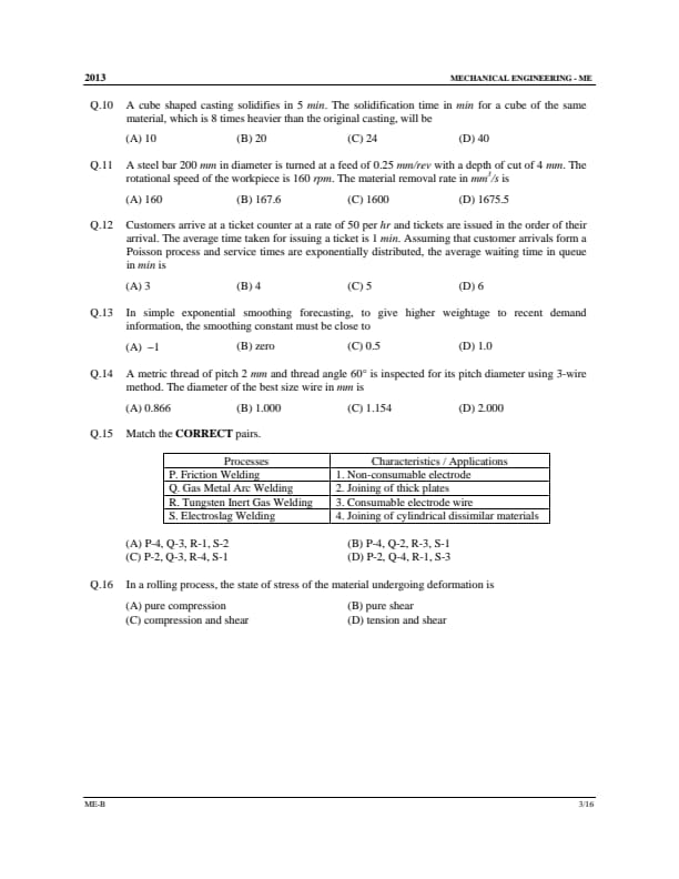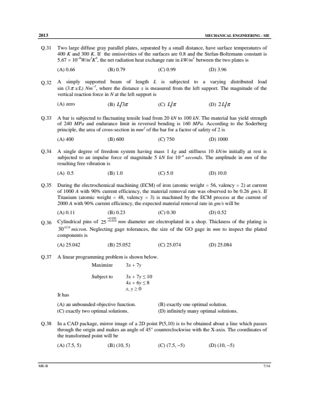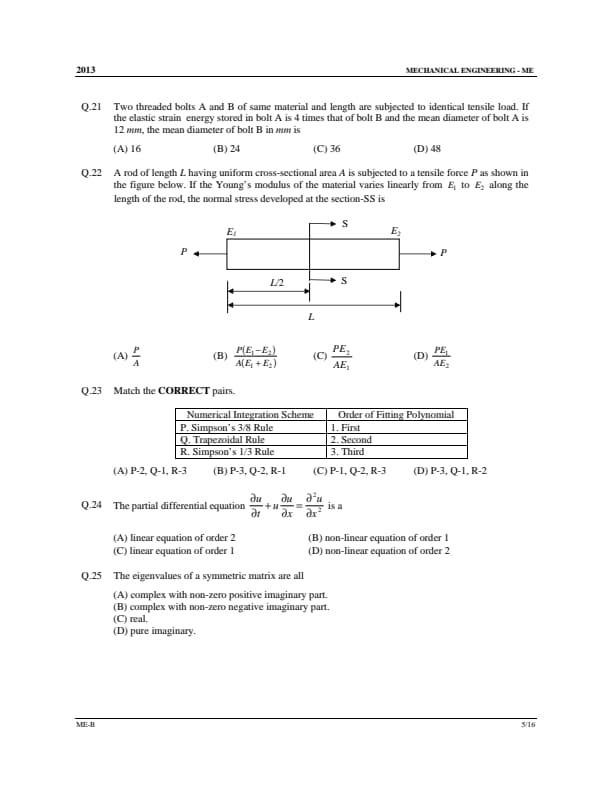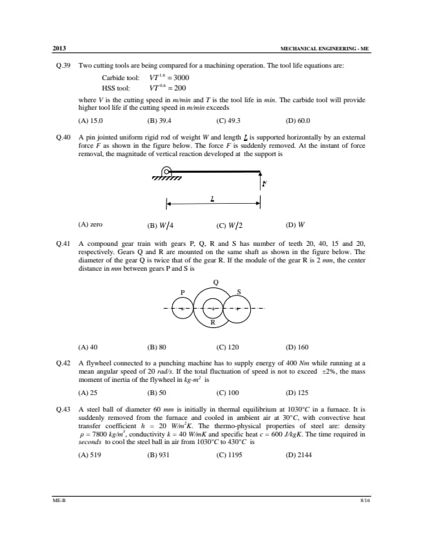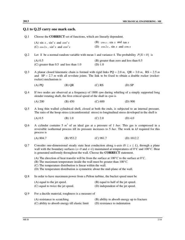 GATE 2013 ME Question Paper with Answer Key PDFs Set B - February 10 (Forenoon Session)