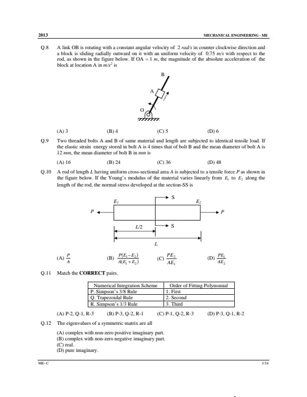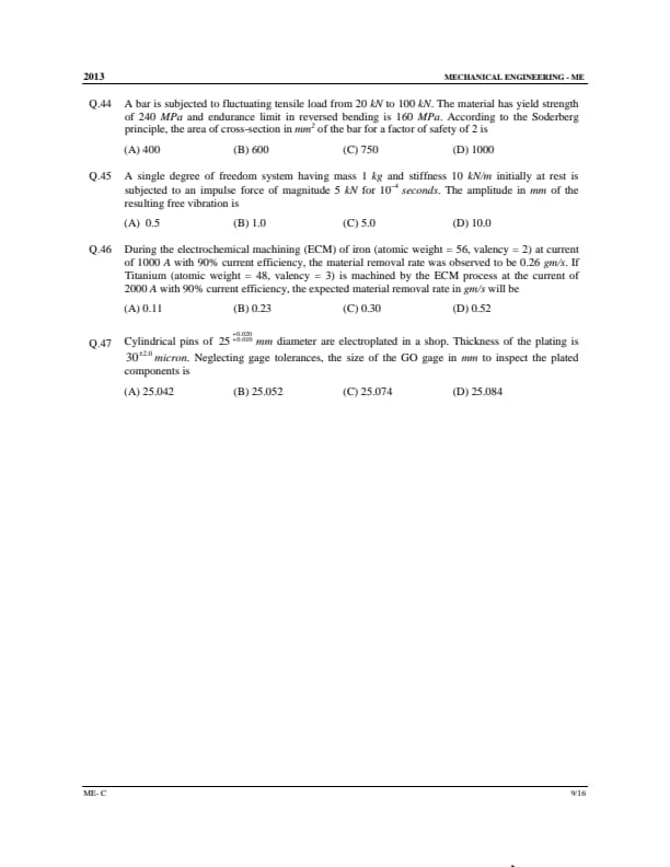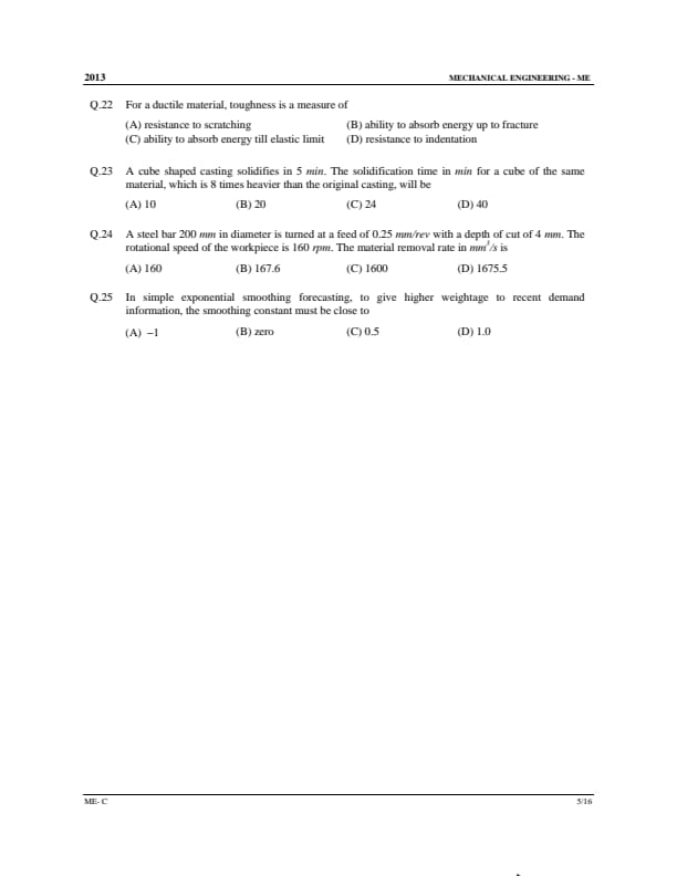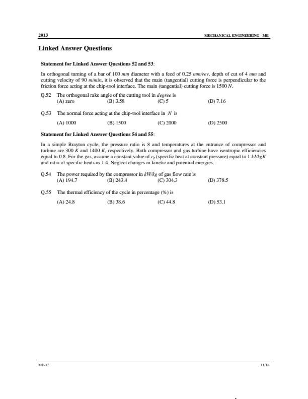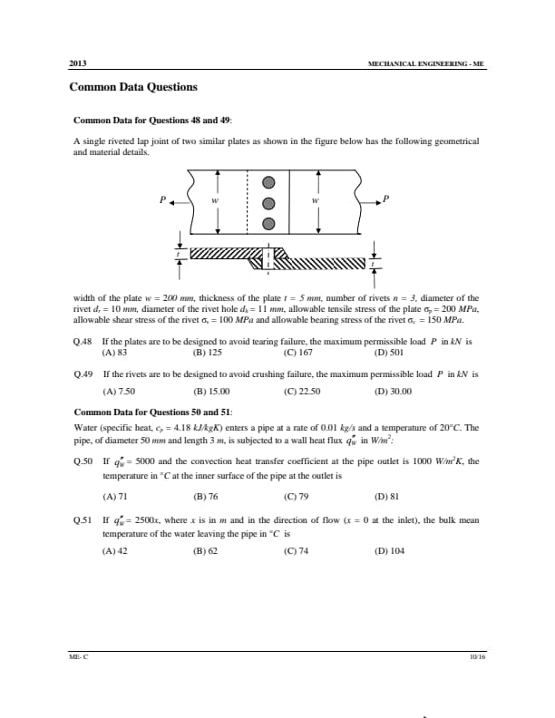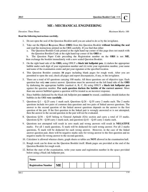 GATE 2013 ME Question Paper with Answer Key PDFs Set C - February 10 (Forenoon Session)