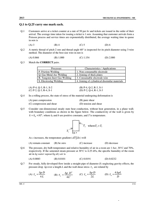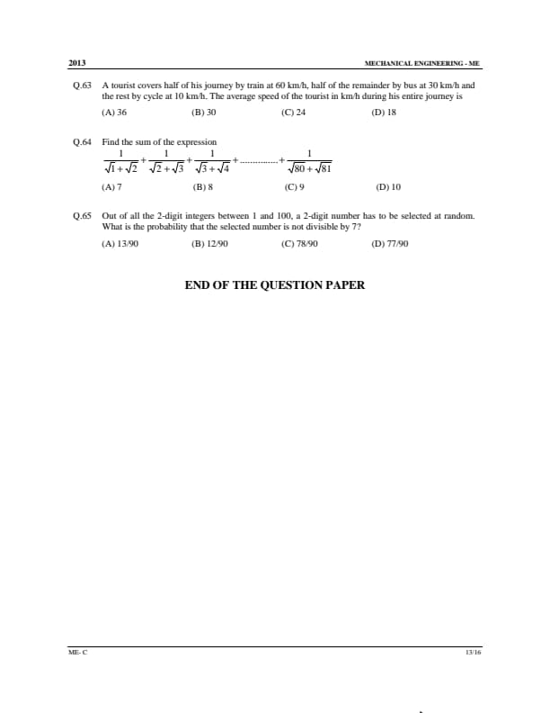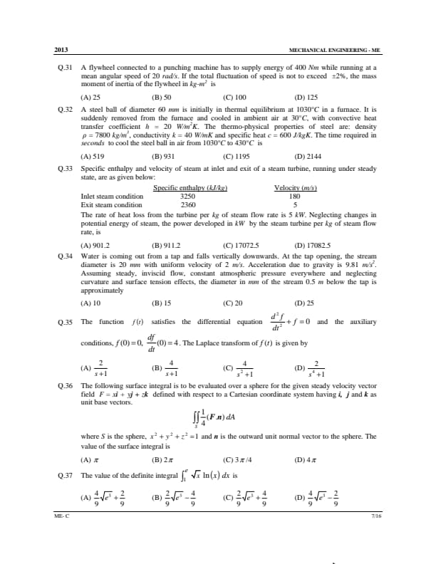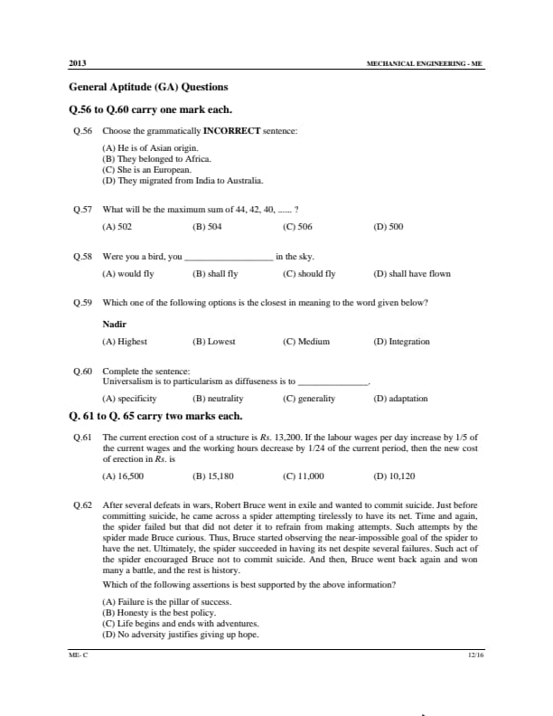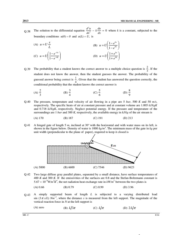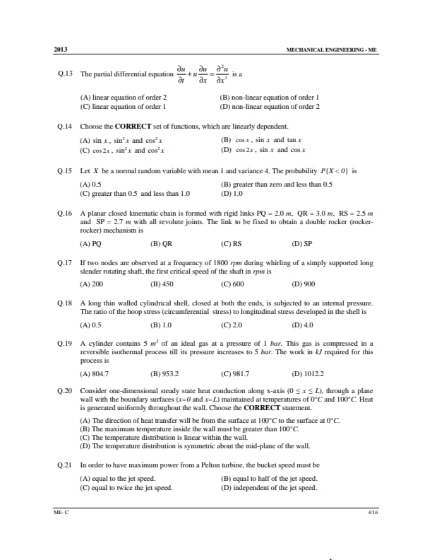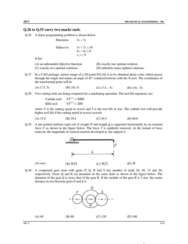 GATE 2013 ME Question Paper with Answer Key PDFs Set C - February 10 (Forenoon Session)