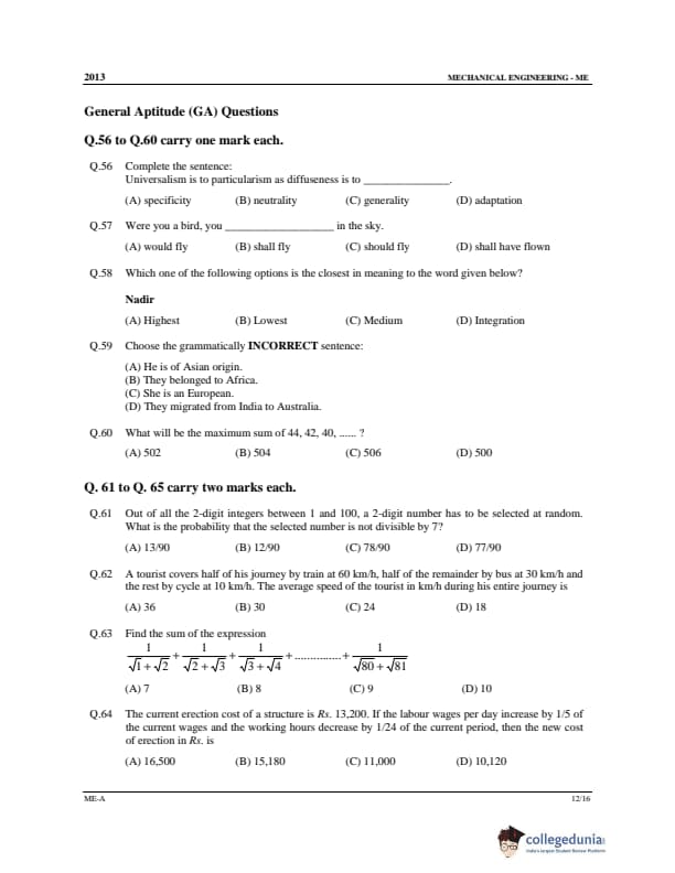 GATE 2013 ME Paper Analysis