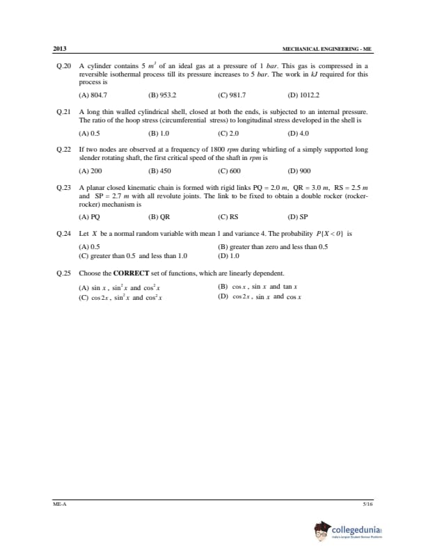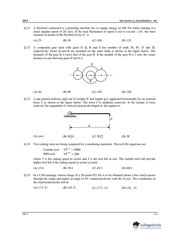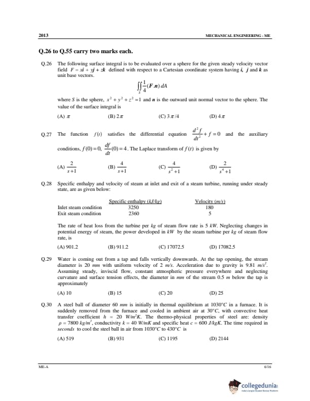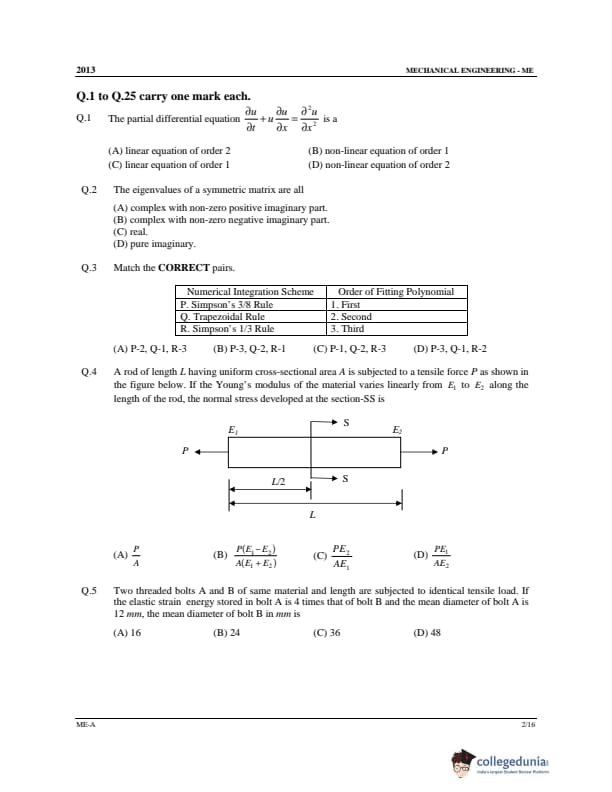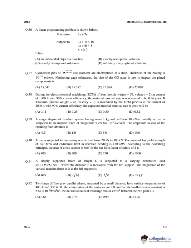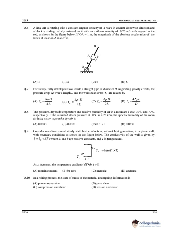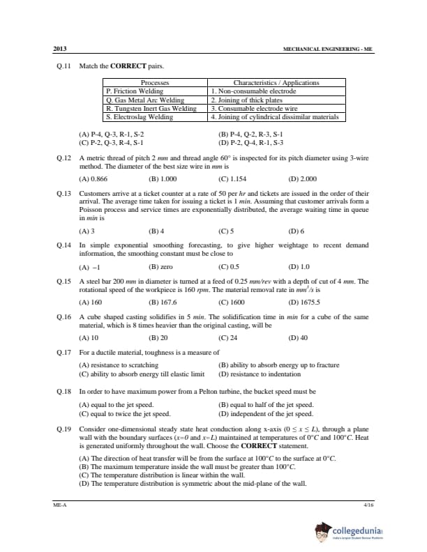GATE 2013 ME Question Papers with Answer Key PDFs Set A - February 10 (Forenoon Session)