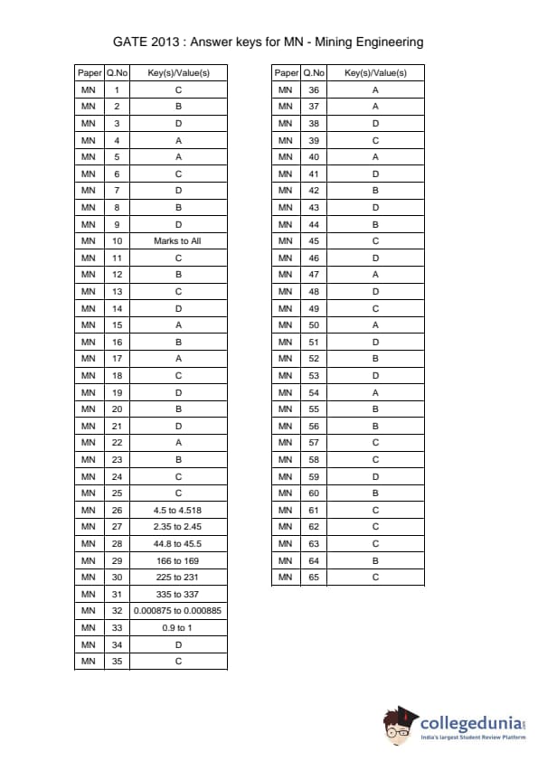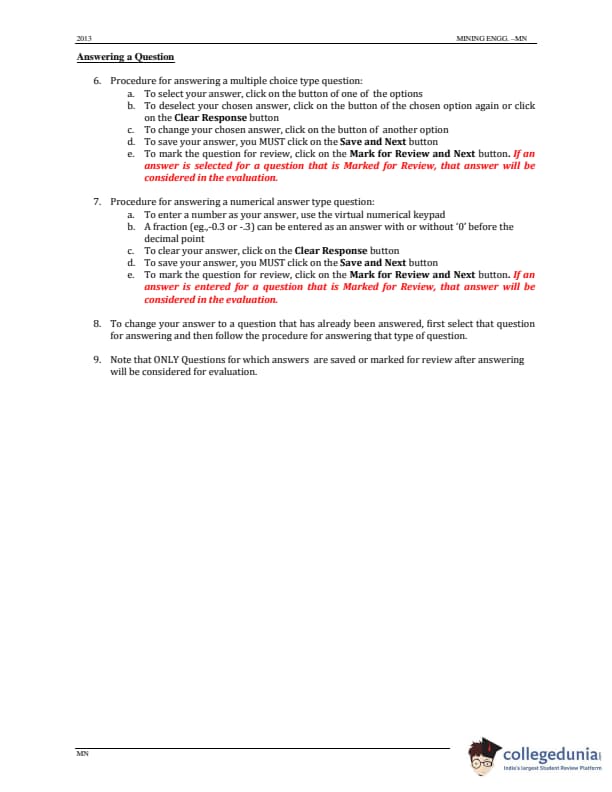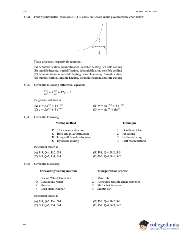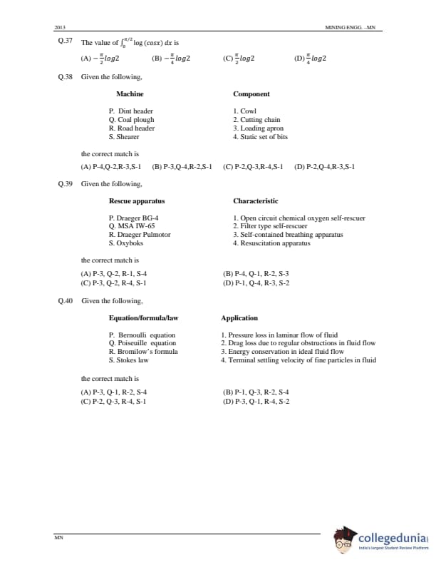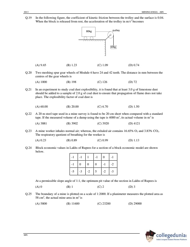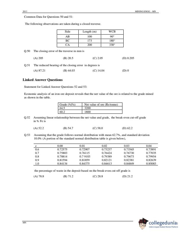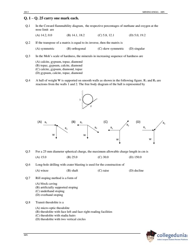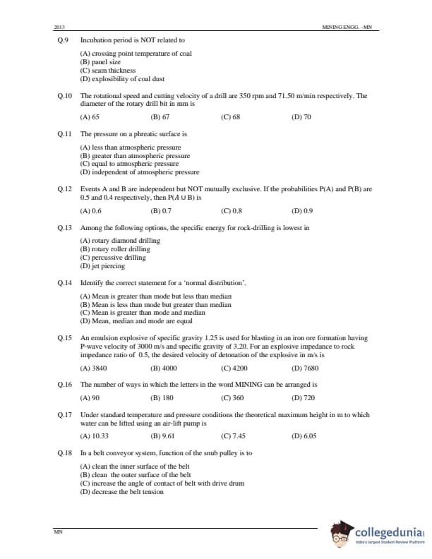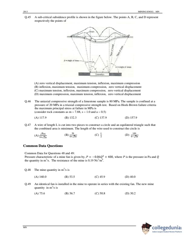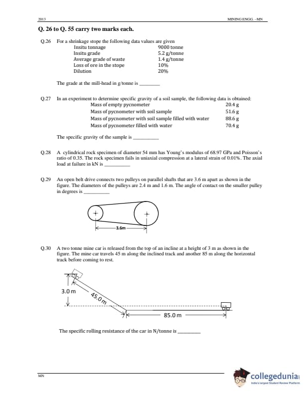 GATE 2013 Mining Engineering (MN) Question Paper with Answer Key PDFs (January 20 - Afternoon Session)