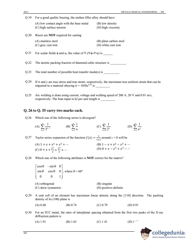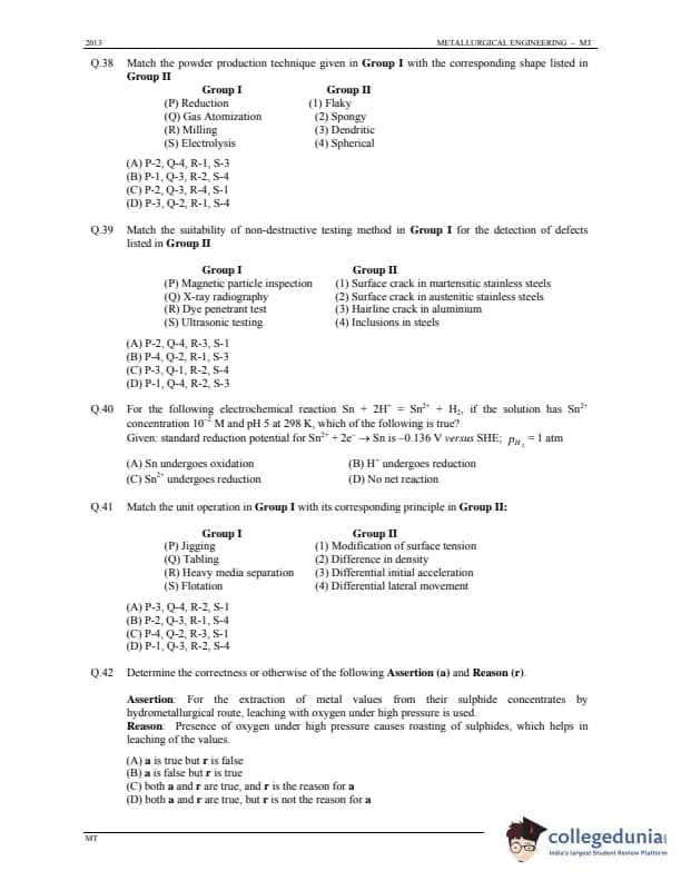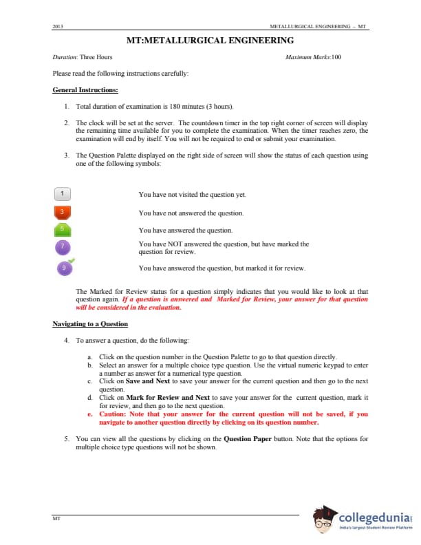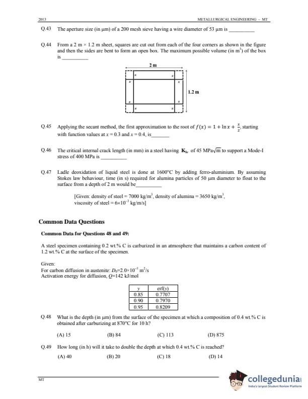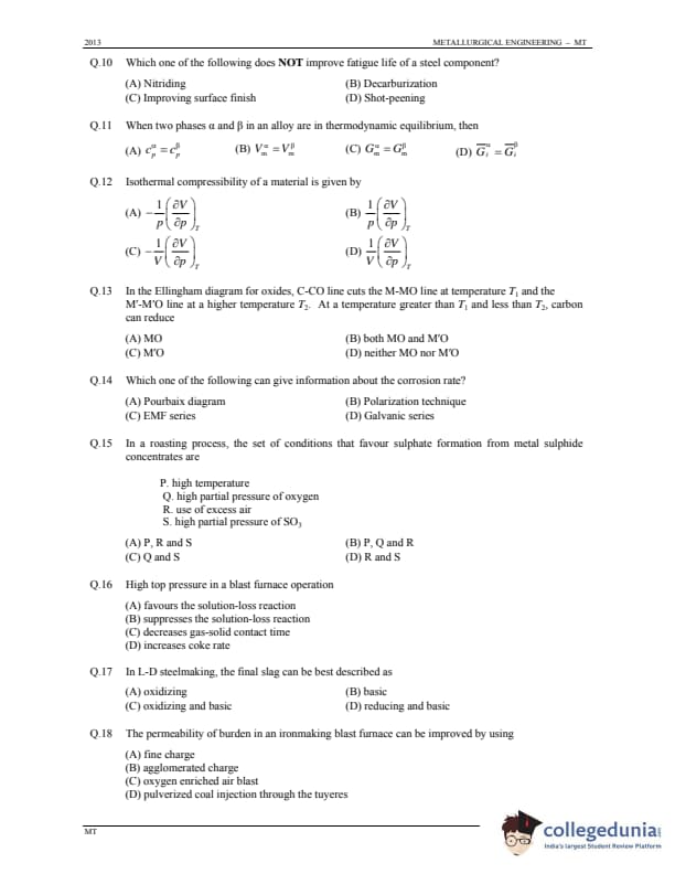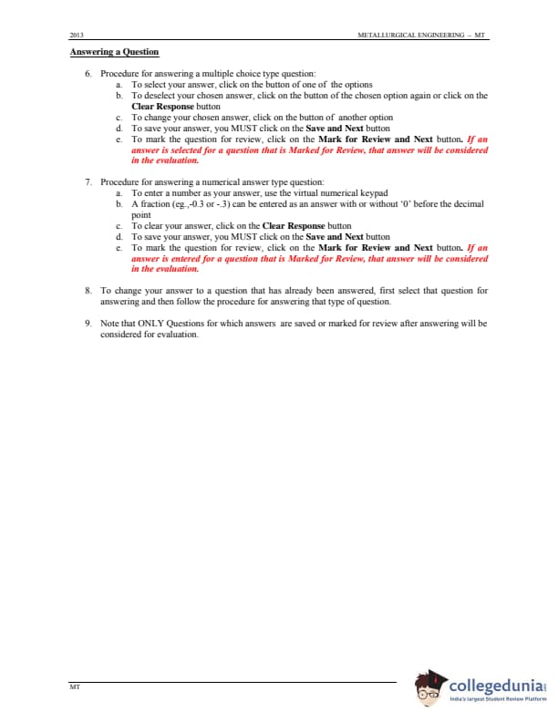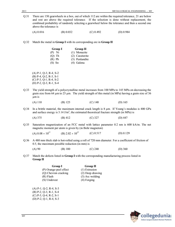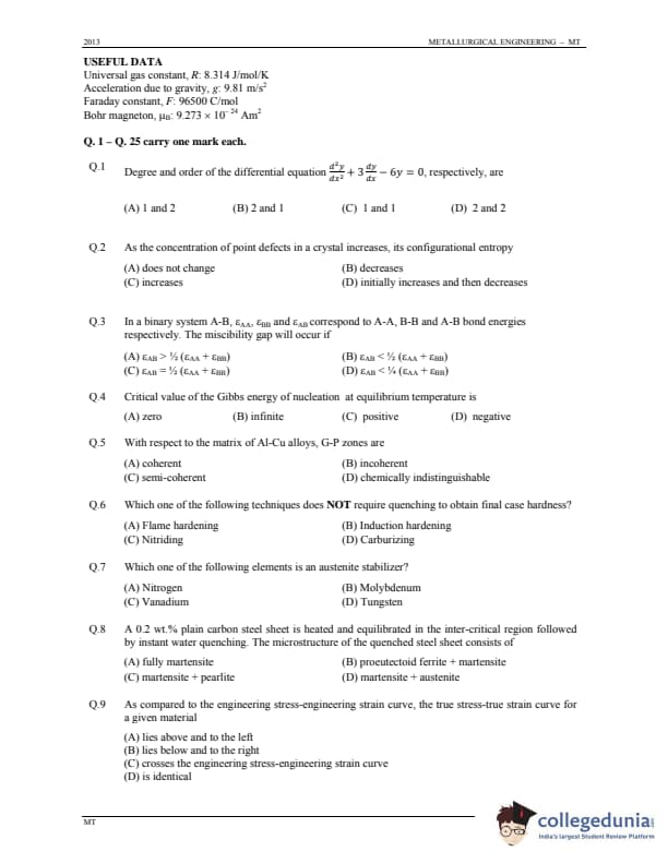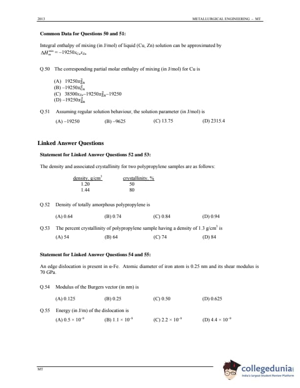 GATE 2013 Metallurgical Engineering (MT) Question Paper with Answer Key PDFs (January 20 - Forenoon Session)