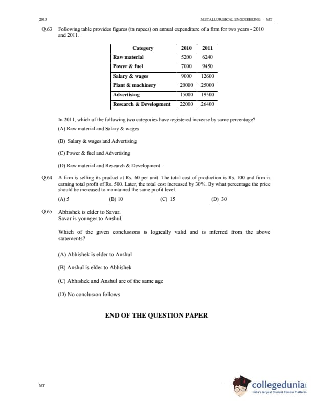 GATE 2013 MT Paper Analysis