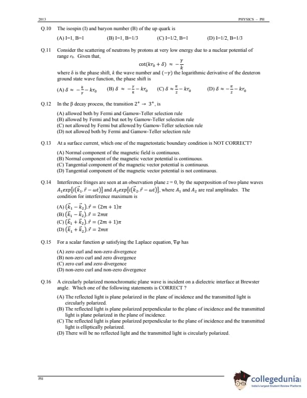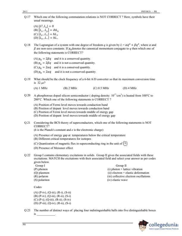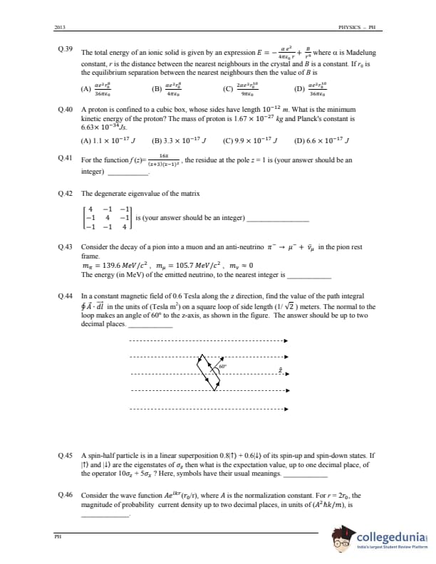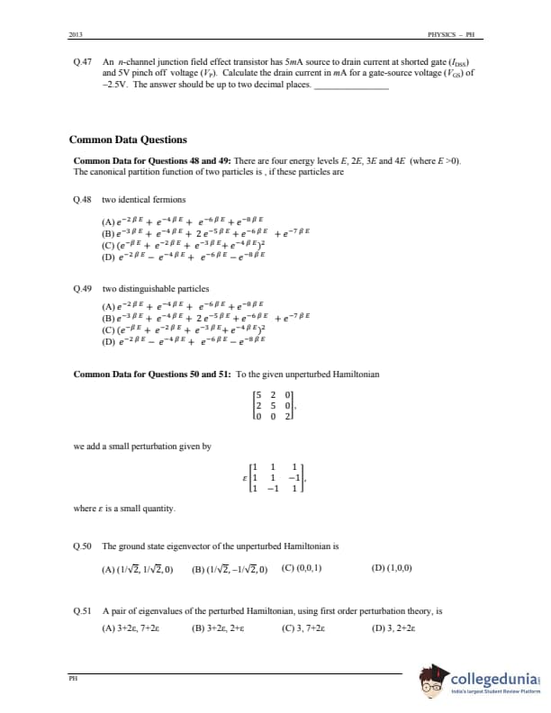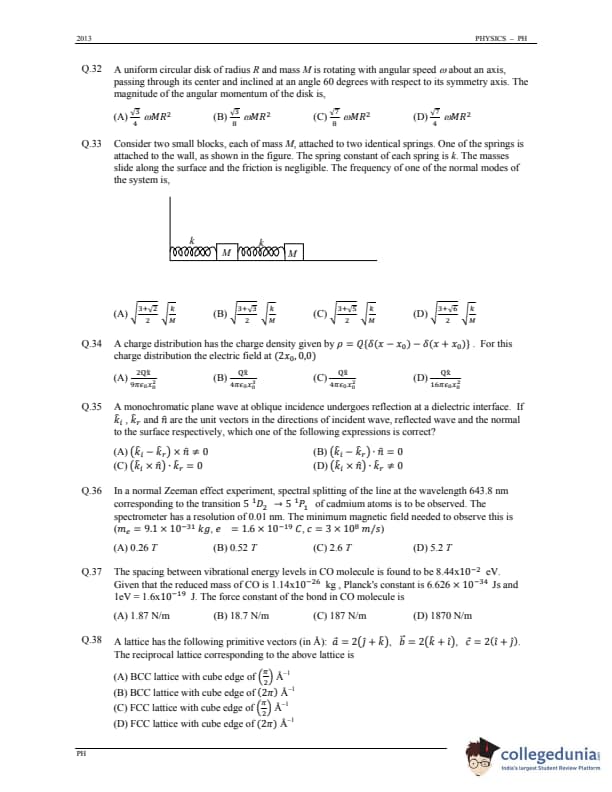 GATE 2013 Physics (PH) Question Paper with Answer Key PDFs - (January 20 - Forenoon Session)
