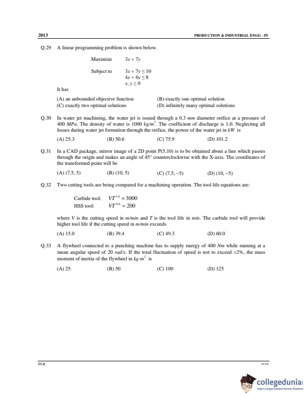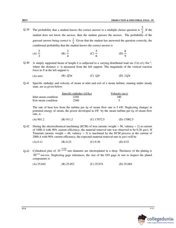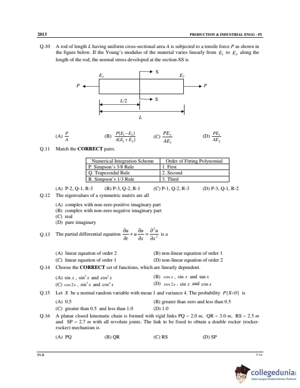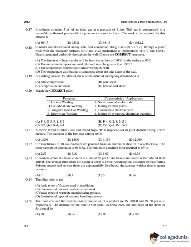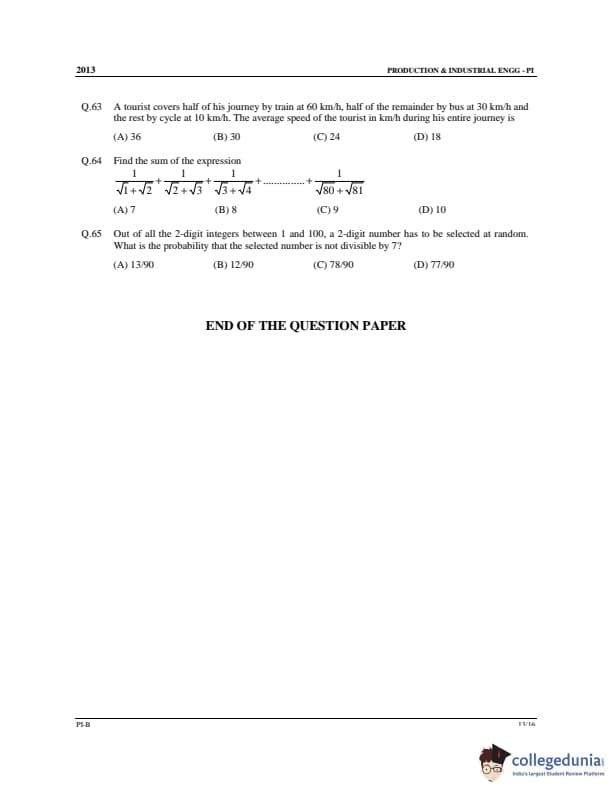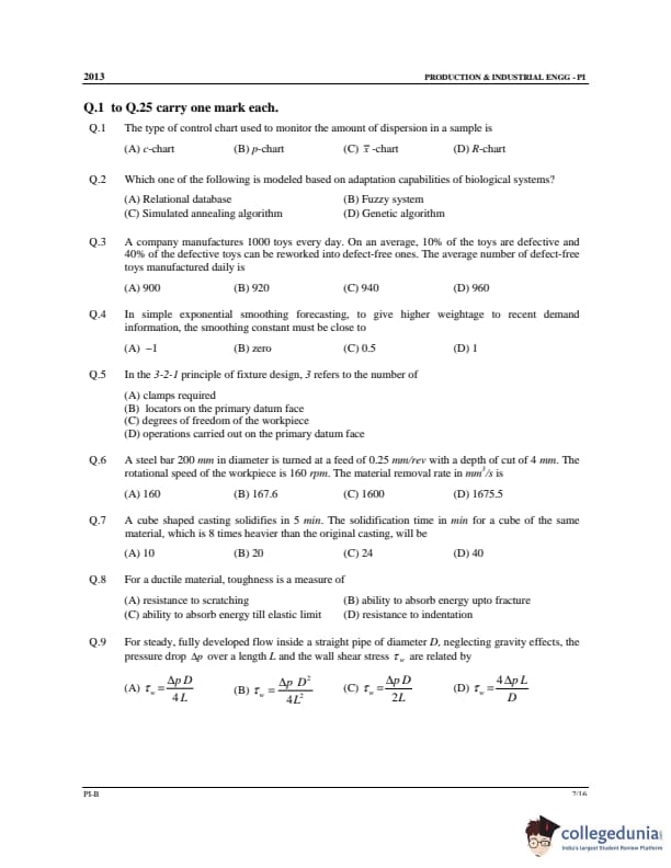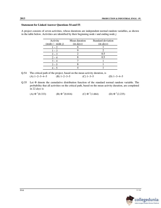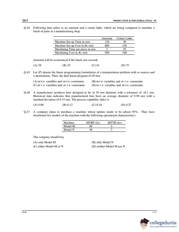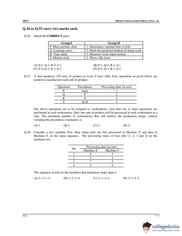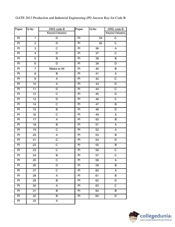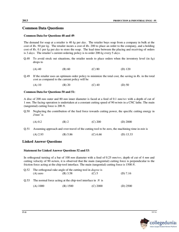 GATE 2013 Production & Industrial Engineering (PI) Question Paper with Answer Key PDFs – Session 2 (February 10 - Forenoon Session)