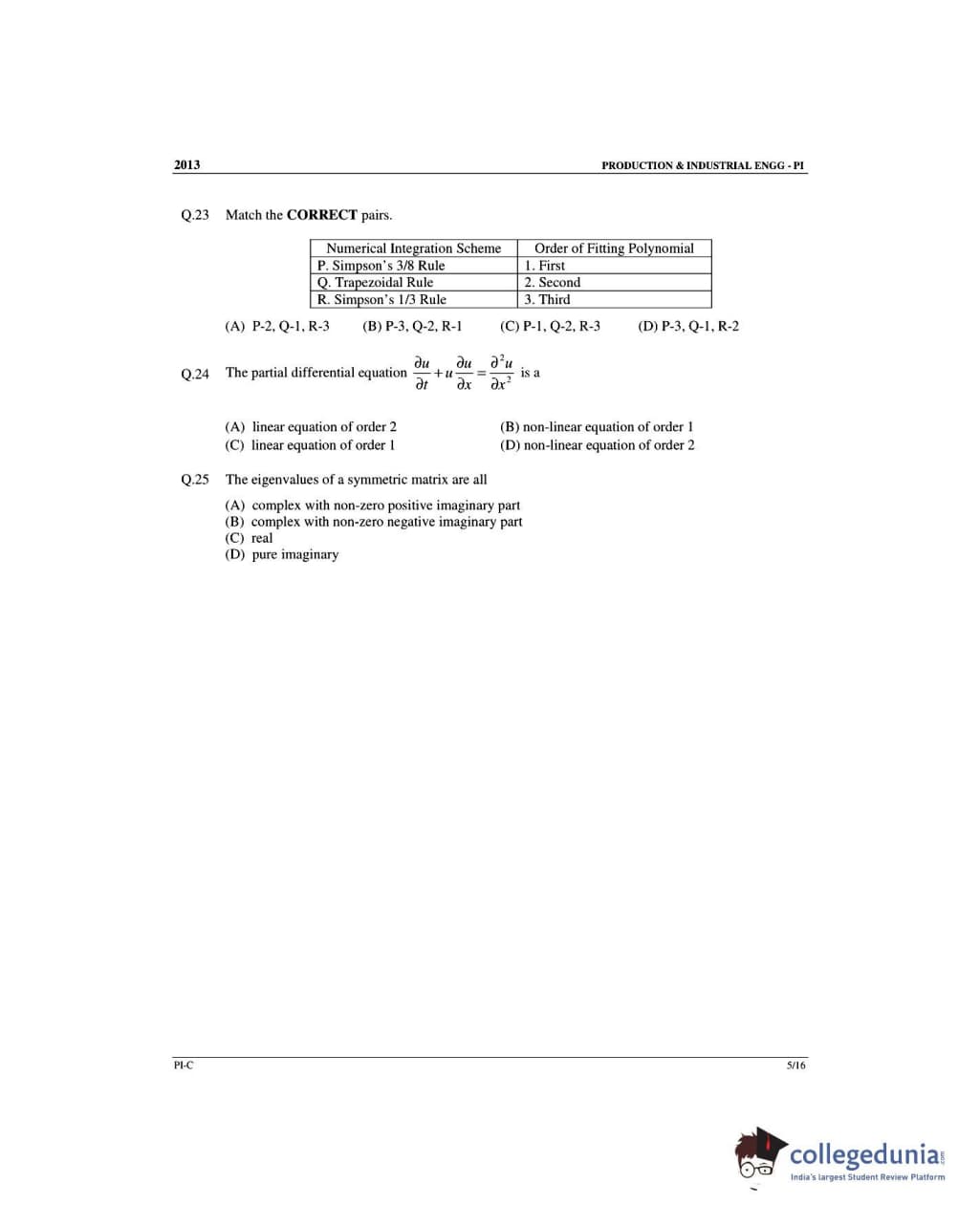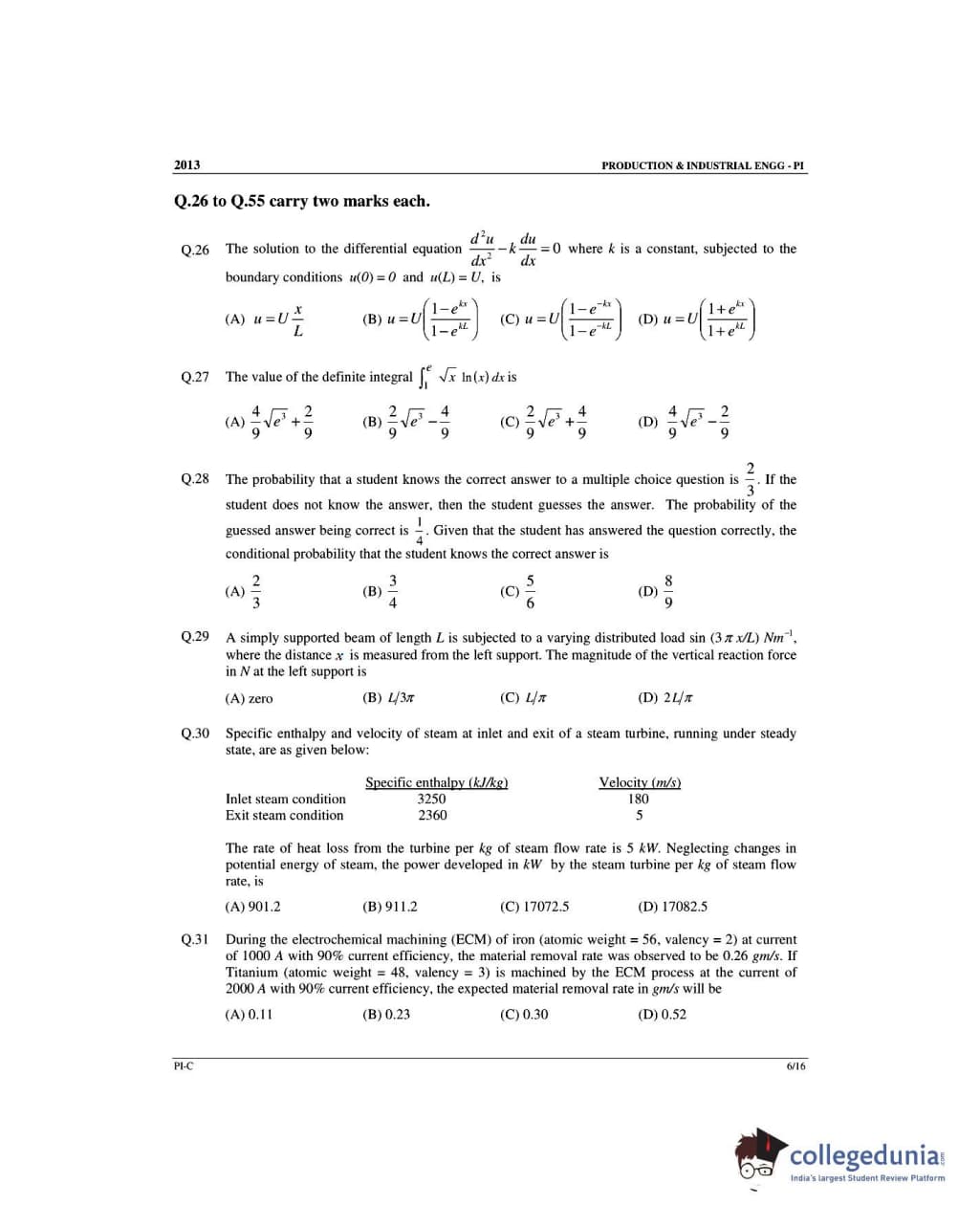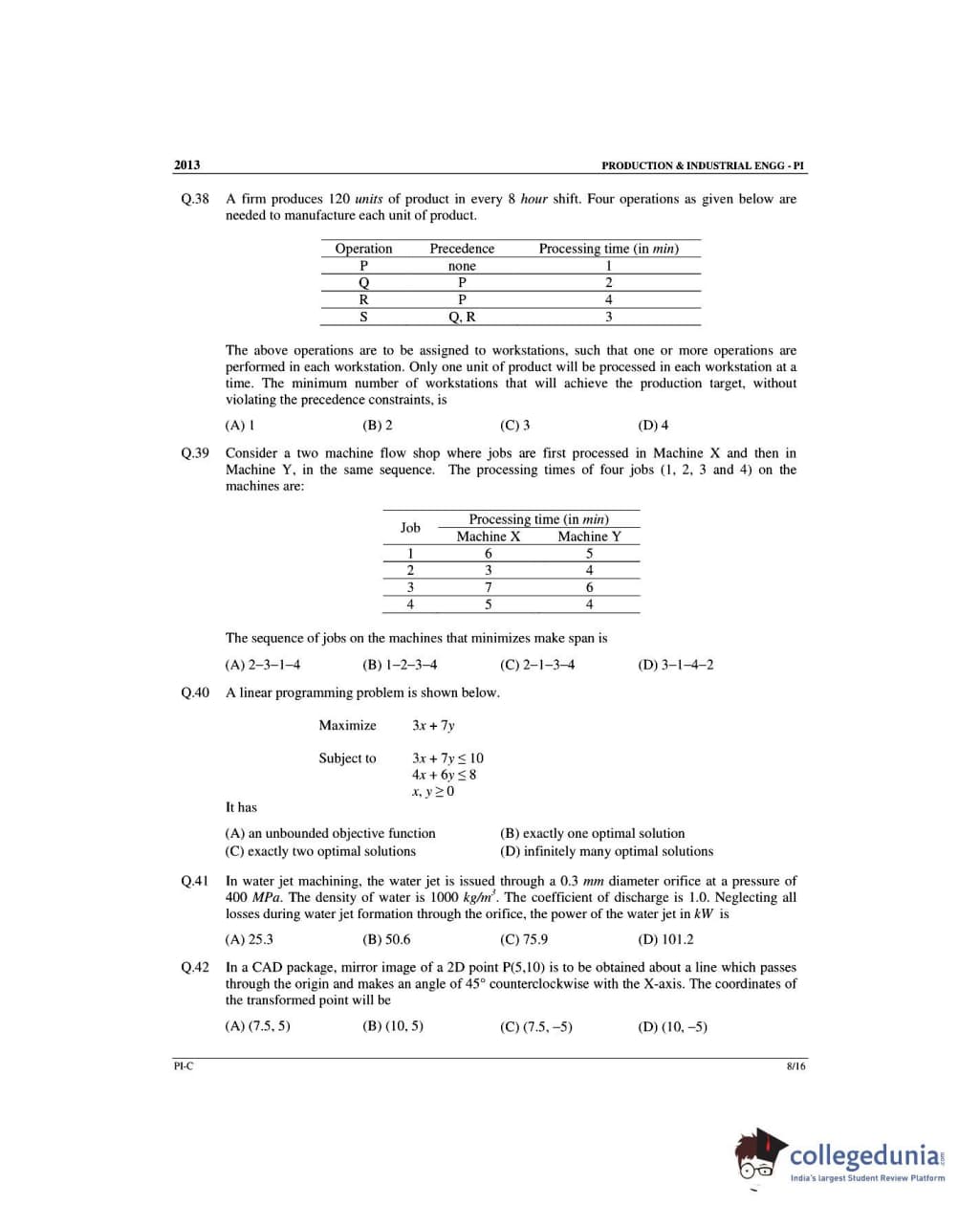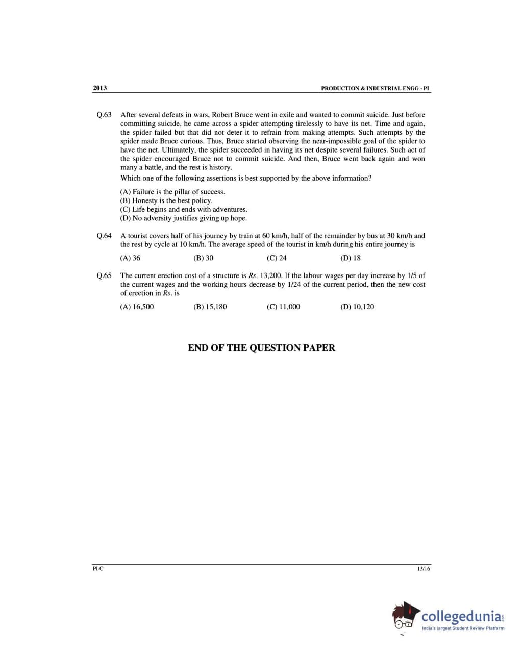 GATE 2013 Production and Industrial Engineering (PI) - Slot 3 Question Paper with Answer Key PDF -Forenoon Session