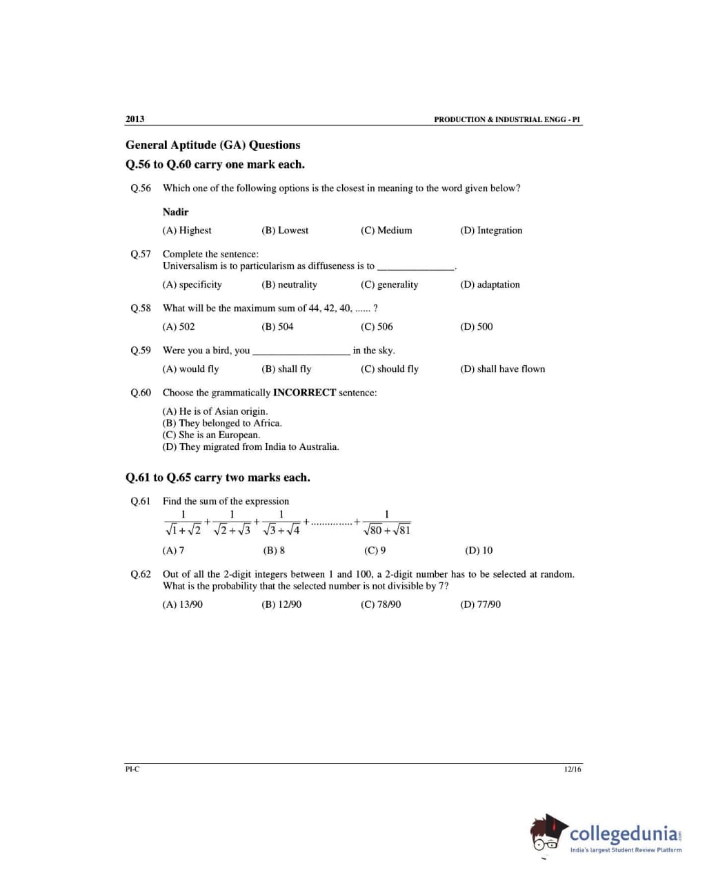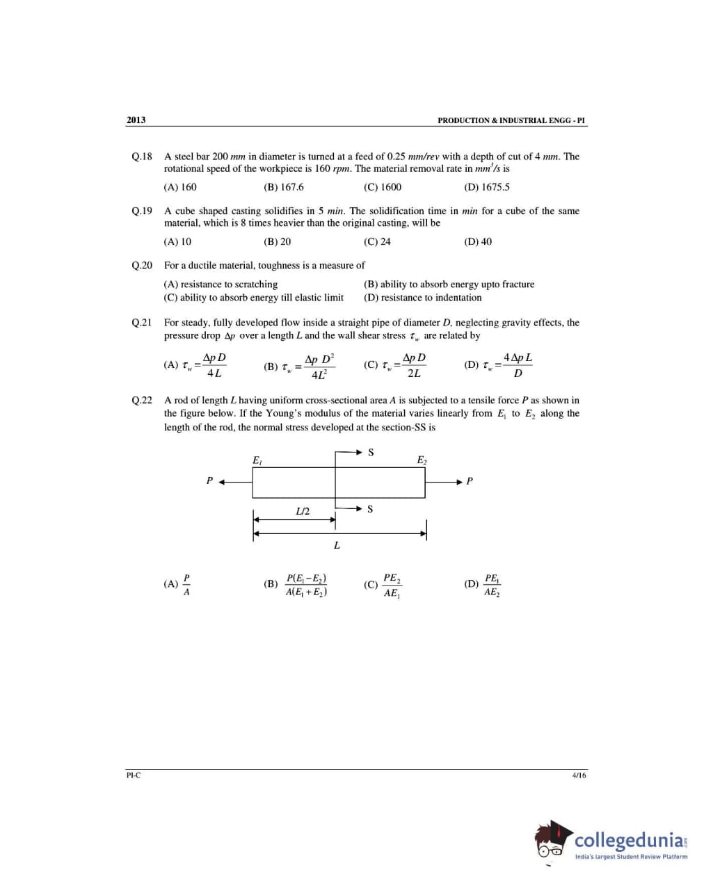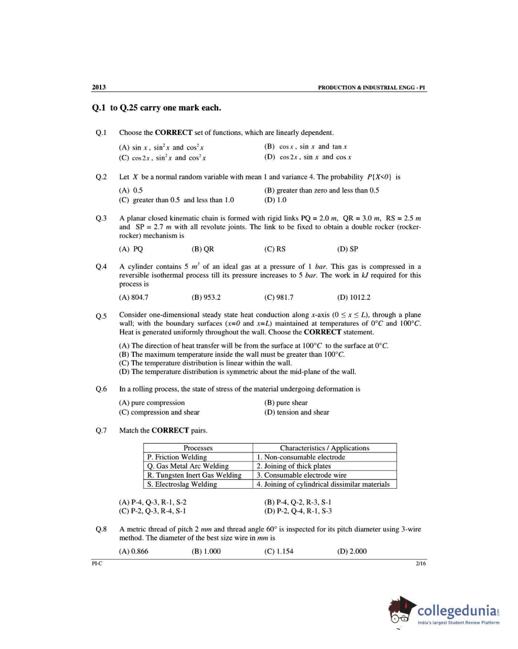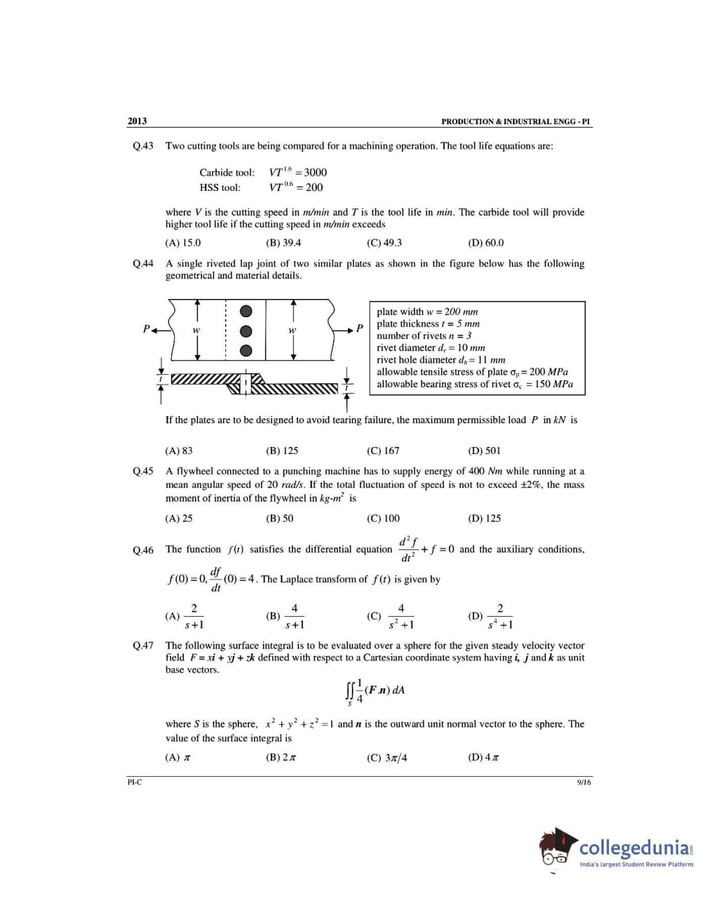 GATE 2013 Production and Industrial Engineering (PI) - Slot 3 Question Paper with Answer Key PDF -Forenoon Session