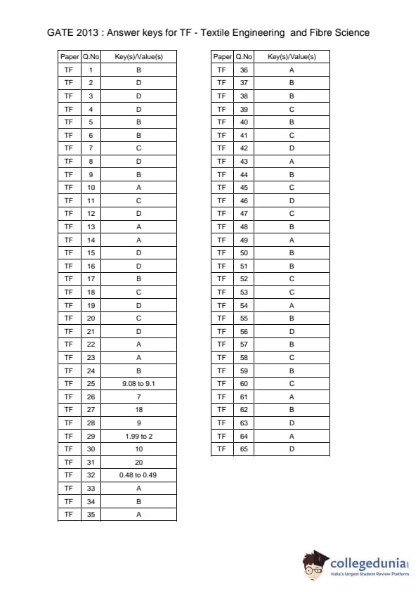 GATE 2013 TF Answer Key Details
