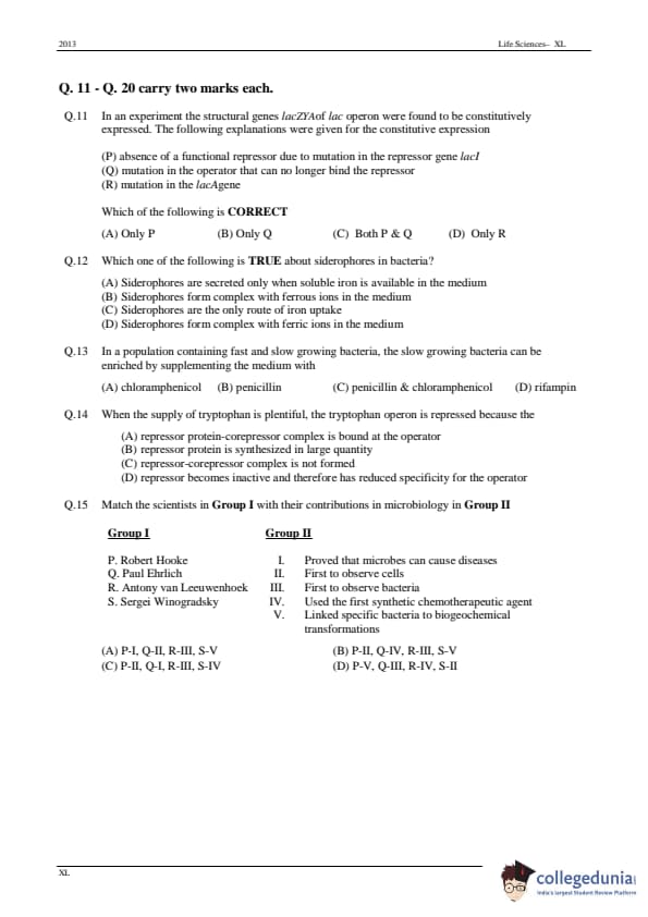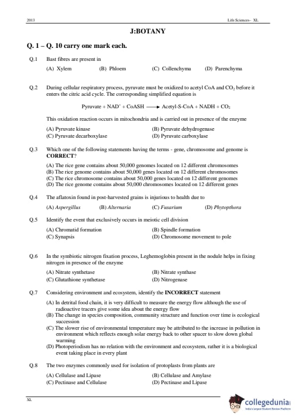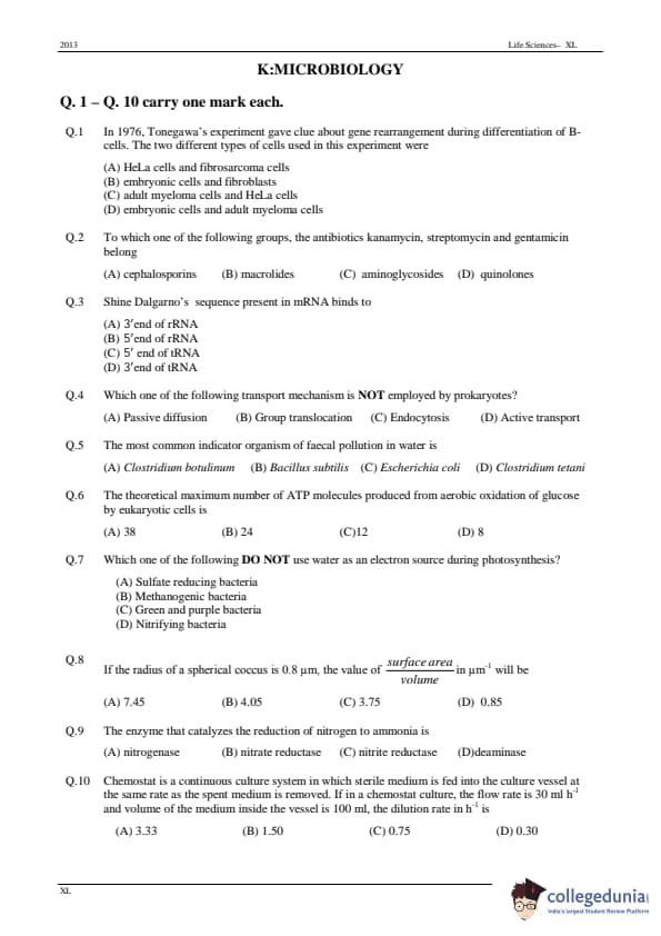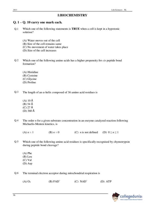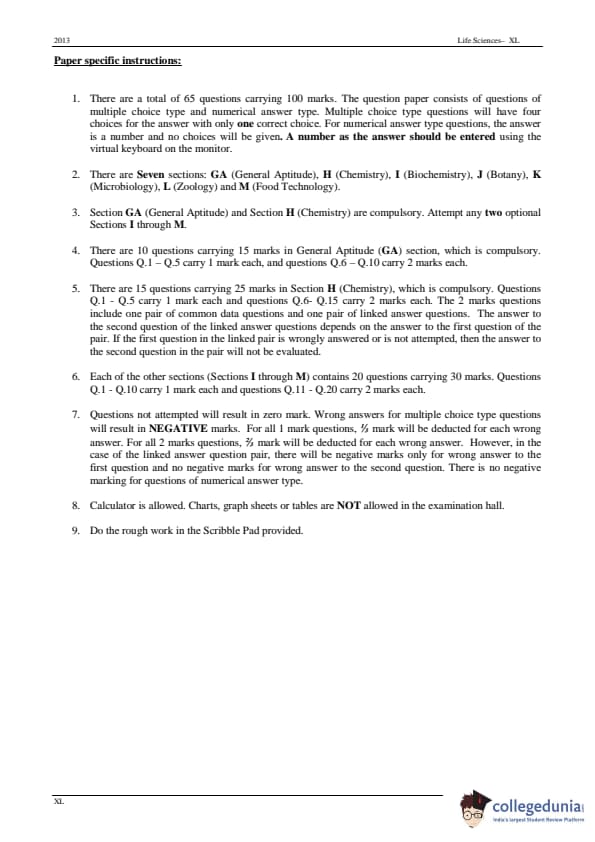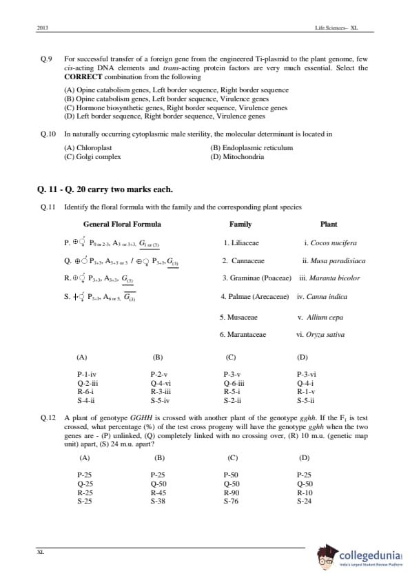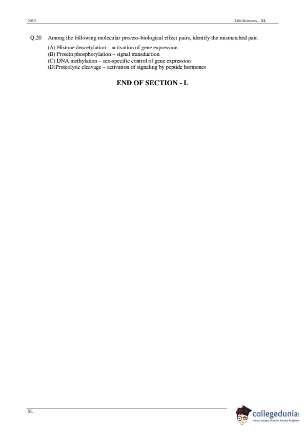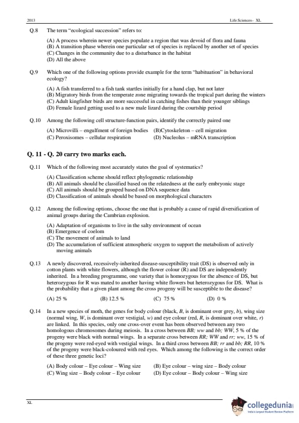GATE 2013 Life Sciences (XL) Question Paper with Answer Key Pdfs (January 20 - Afternoon Session)