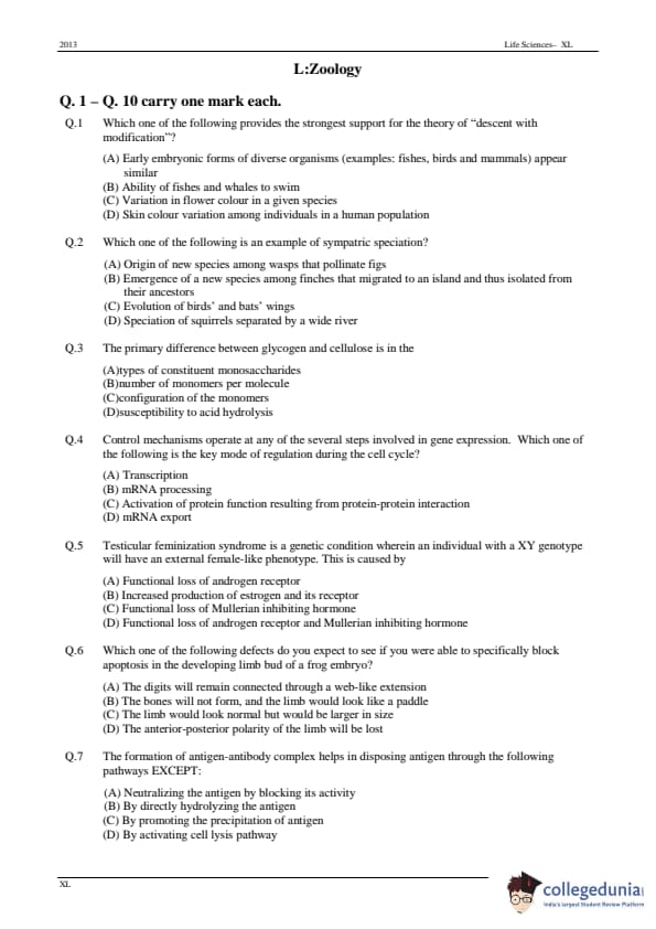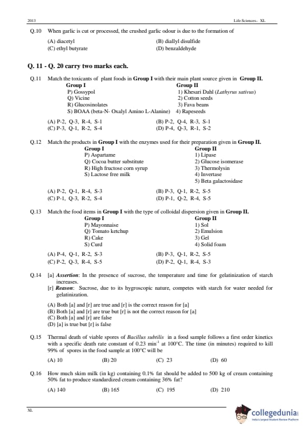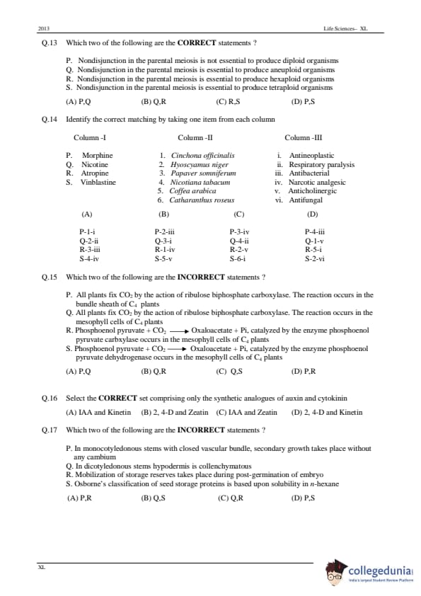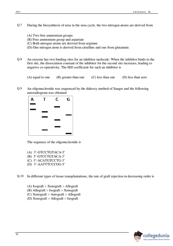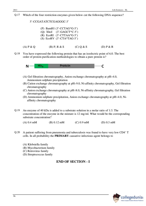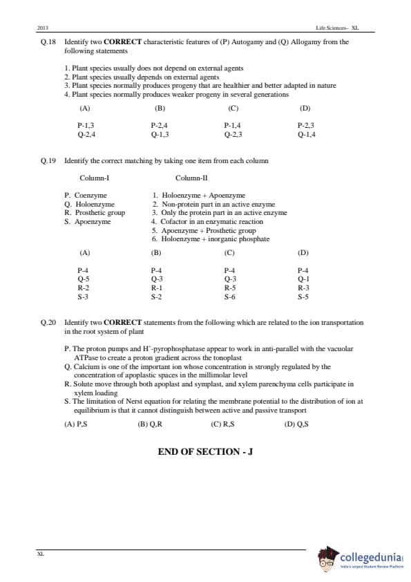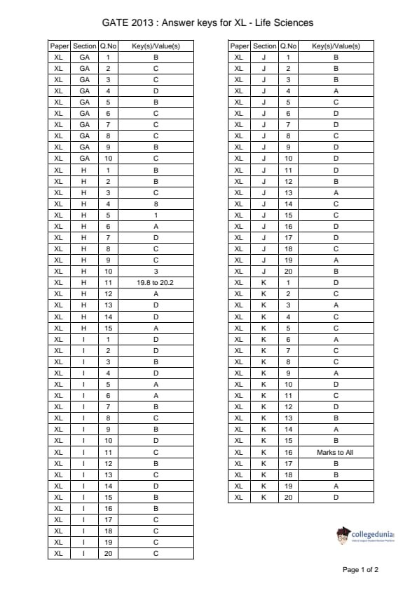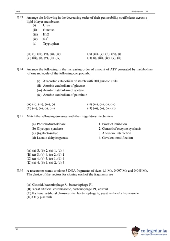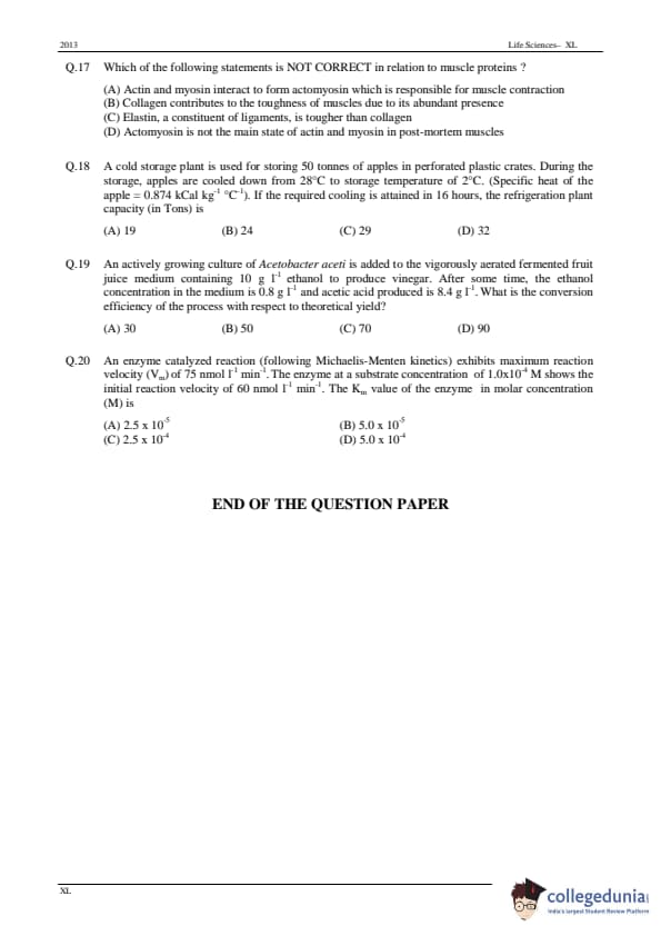 GATE 2013 Life Sciences (XL) Question Paper with Answer Key Pdfs (January 20 - Afternoon Session)