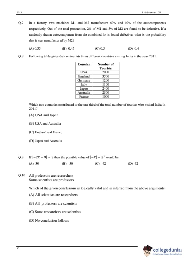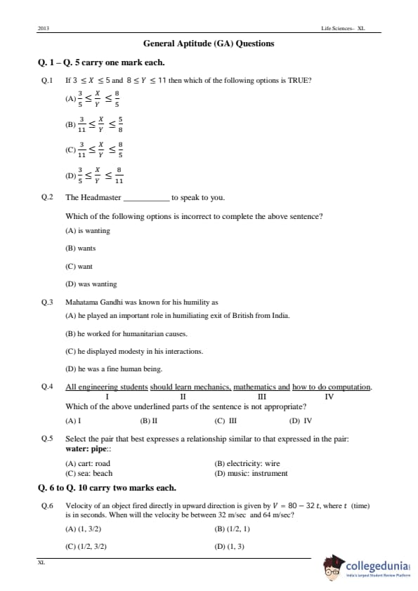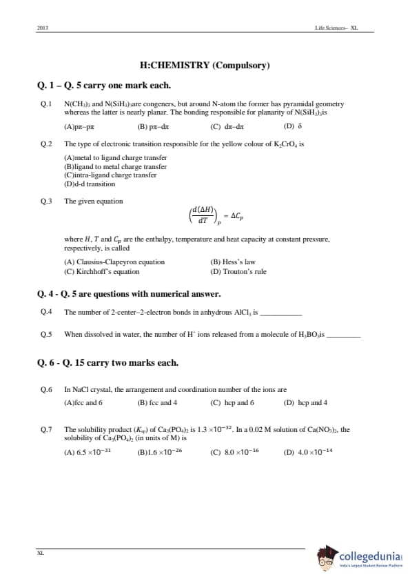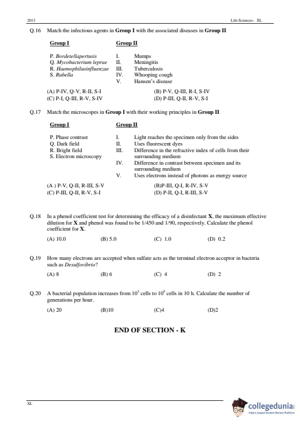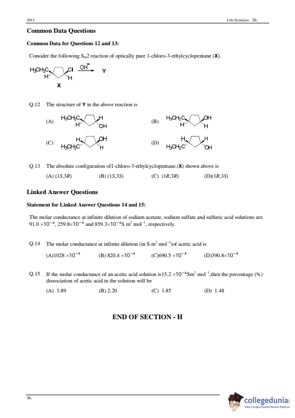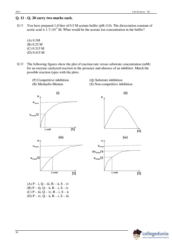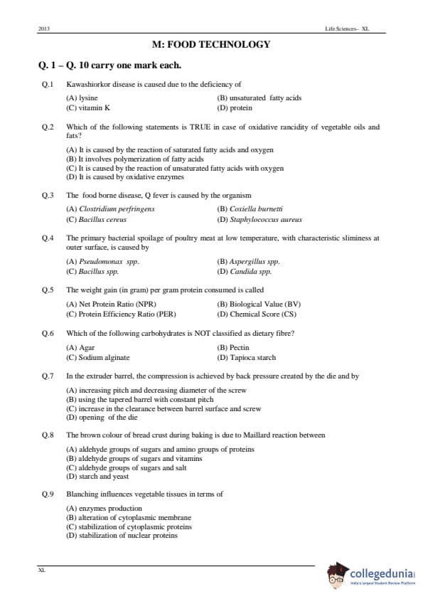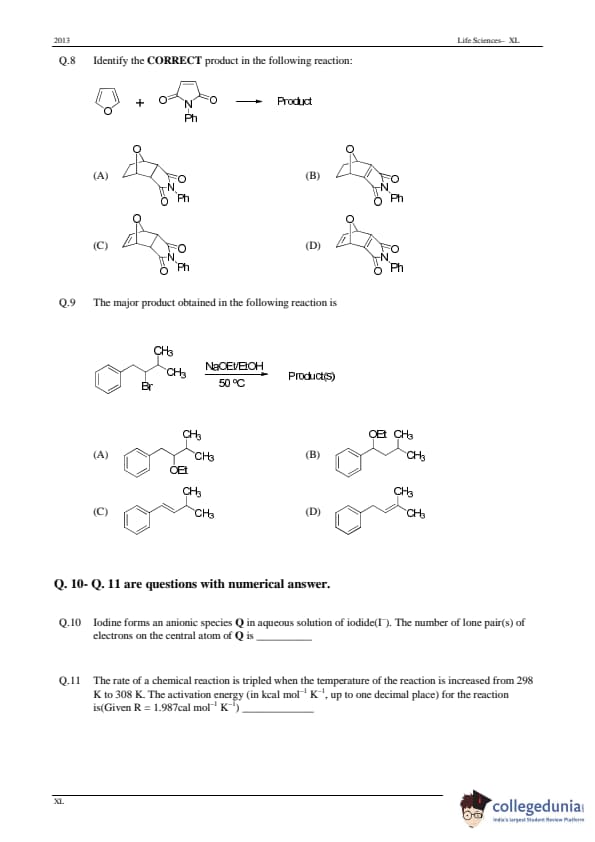 GATE 2013 Life Sciences (XL) Question Paper with Answer Key Pdfs (January 20 - Afternoon Session)