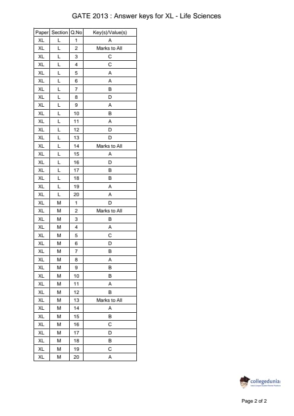 GATE 2013 Life Sciences (XL) Question paper with answer key PDFs is now available for download. The exam was conducted by IIT Bombay on January 20, 2013 in the afternoon session. Students have registered the difficulty level as moderate to difficult. A total of 65 questions were asked out of which 10 belonged to the section on General Aptitude and 55 questions were subject-specific.