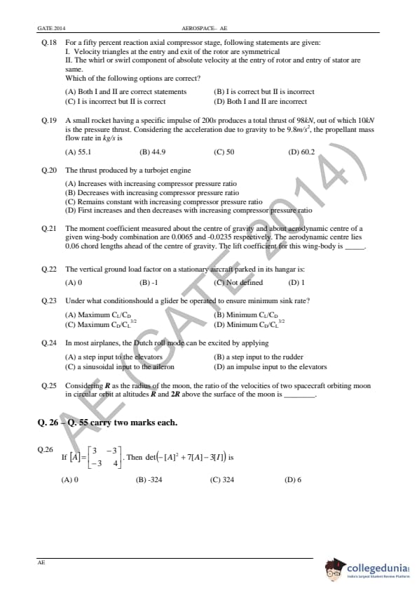 GATE 2014 Aerospace Engineering (AE) Question Paper with Answer Key PDFs (February 2- Forenoon Session)