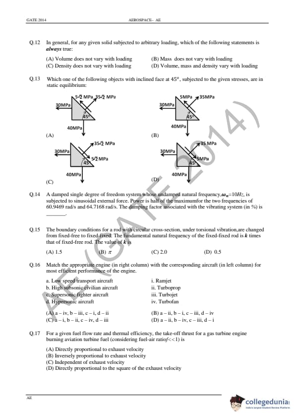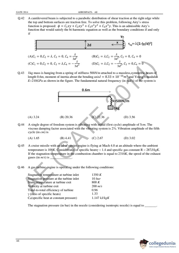GATE 2014 Aerospace Engineering (AE) Detailed Paper Analysis