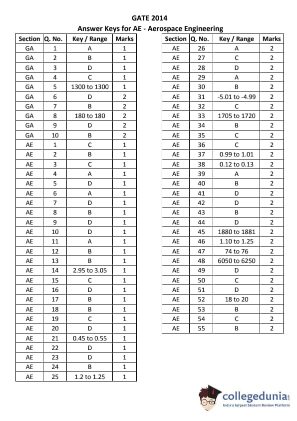 | GATE 2014 Aerospace Engineering(AE) Question Paper | GATE 2014 Aerospace Engineering (AE) Answer Key |