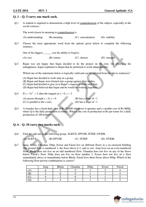 - GATE 2014 AE Question Paper, had 10 General Aptitude questions.