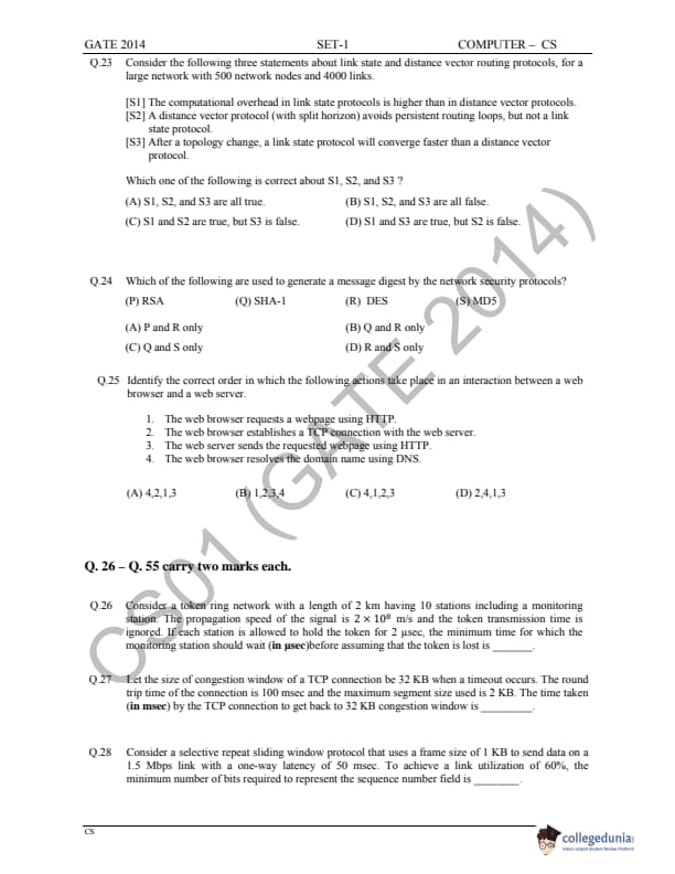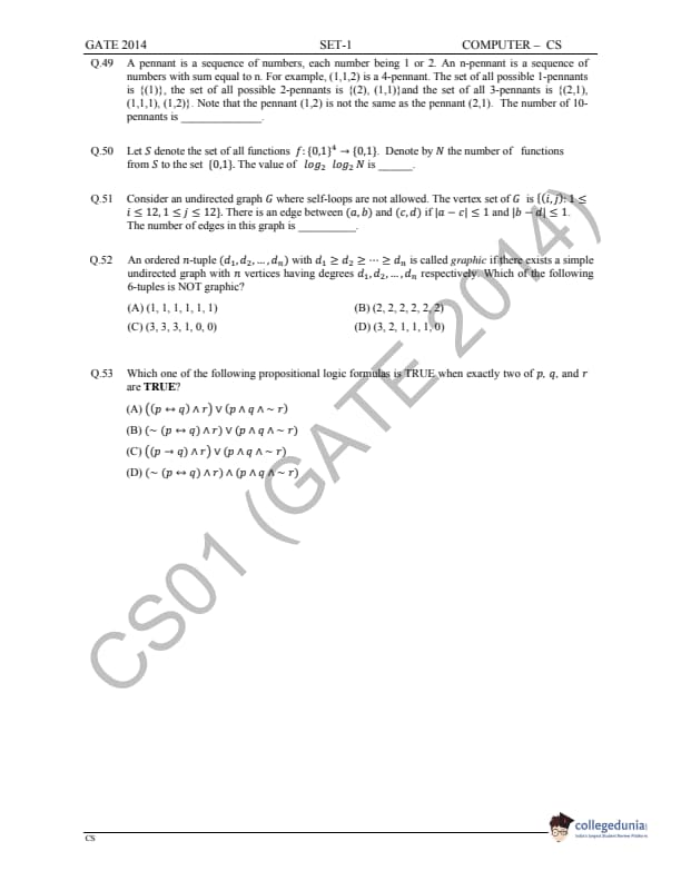 GATE 2014 Computer Science and Information Technology (CS) Question Paper with Answer Key Pdfs - March 1 (Afternoon Session)