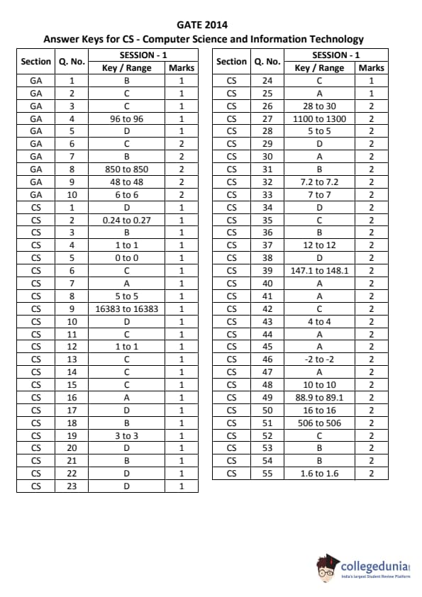 GATE 2014 CS Answer Key Details