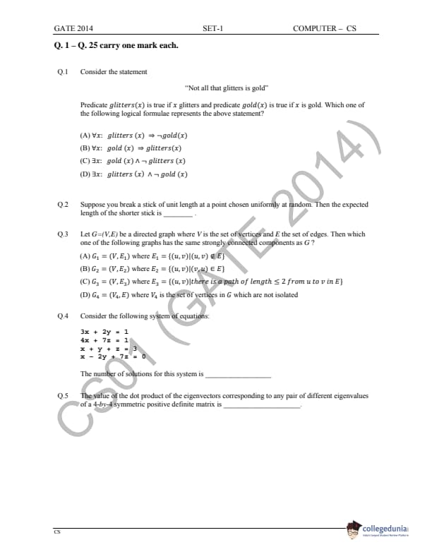 - GATE 2014 Computer Science and Information Technology (CS) Question Paper had two sections- General Aptitude and Core Discipline- Computer Science and Information Technology.
